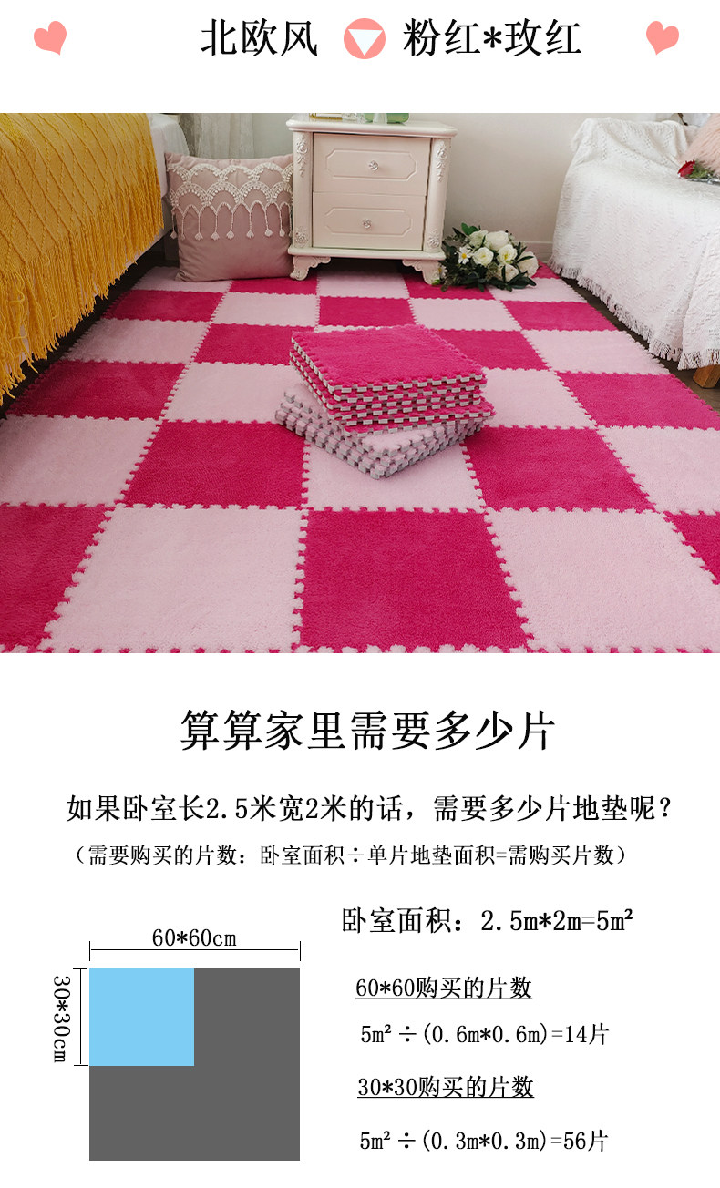 地毯卧室ins风耐脏整铺少女房间韩式拼接地垫榻榻米泡沫垫子家用