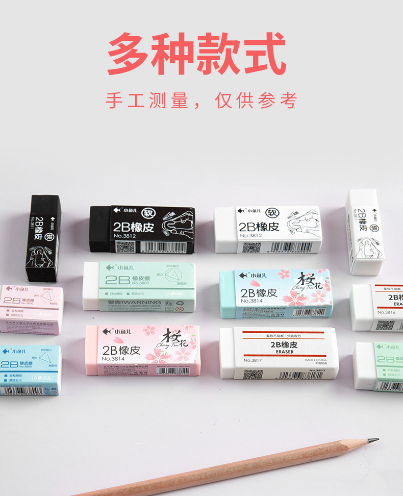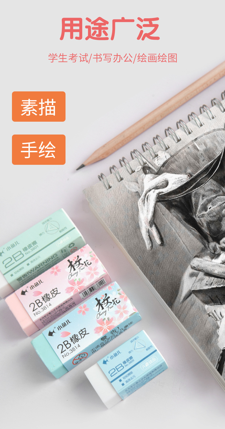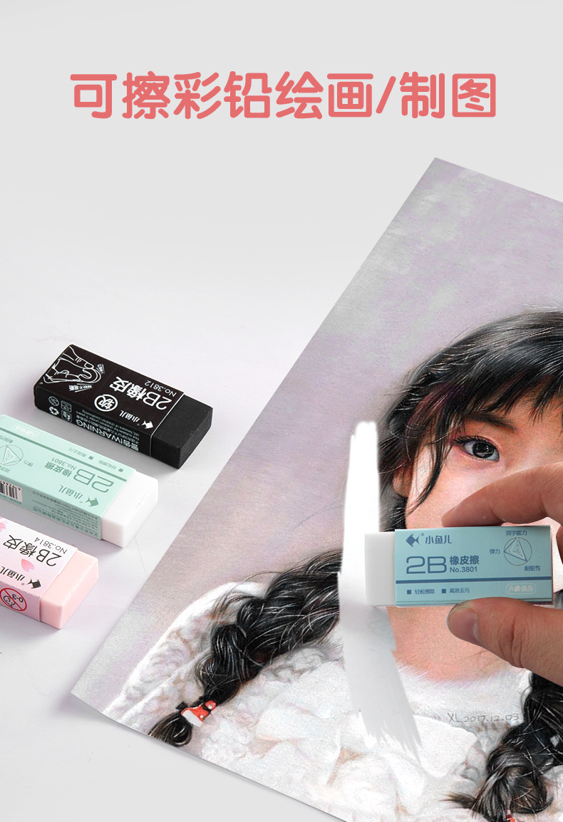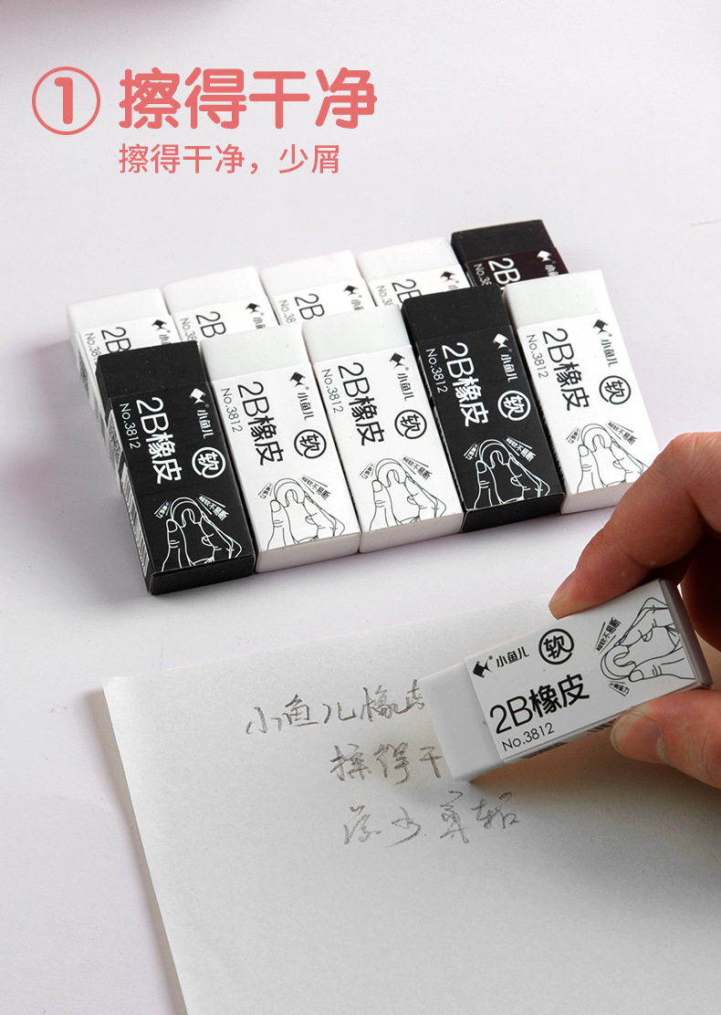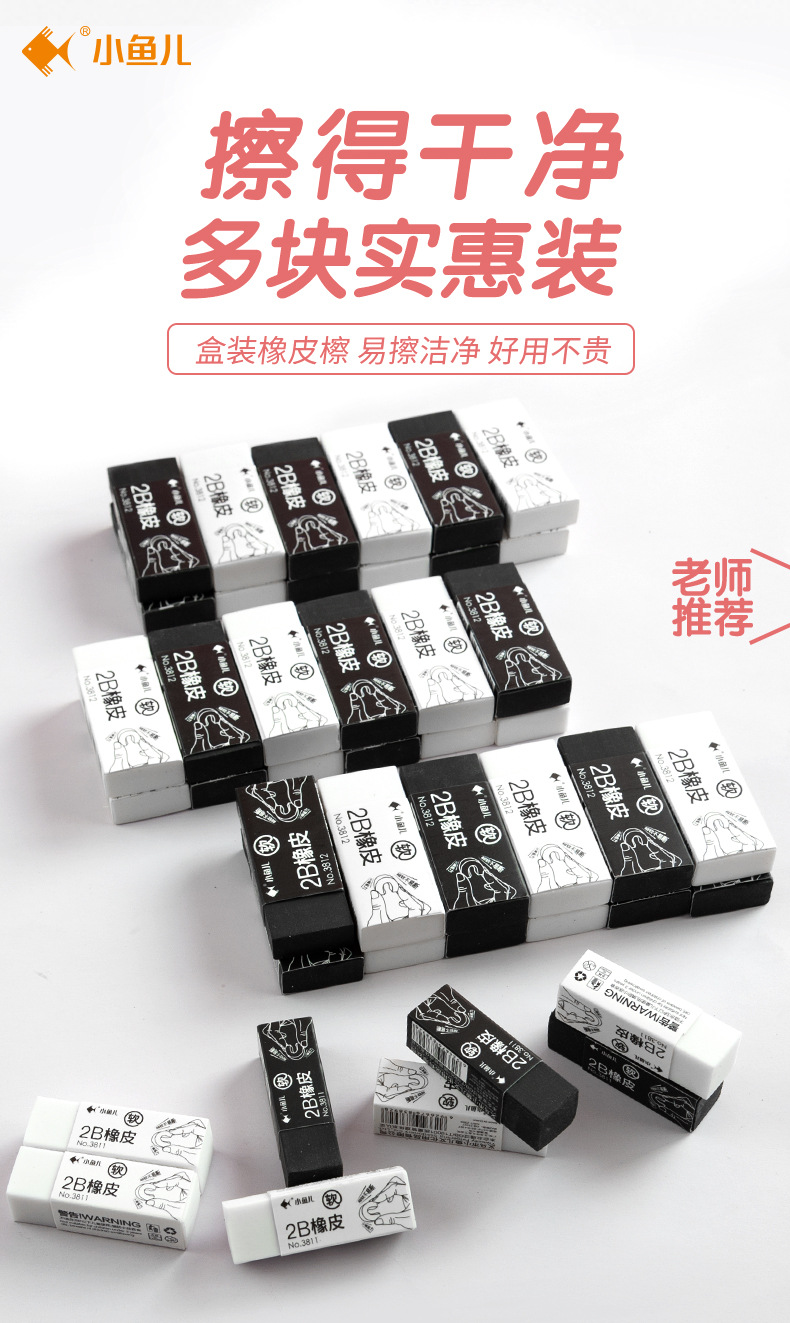 小鱼儿橡皮小学生擦得干净2B儿童像皮橡皮檫不留痕文具用品4B橡皮