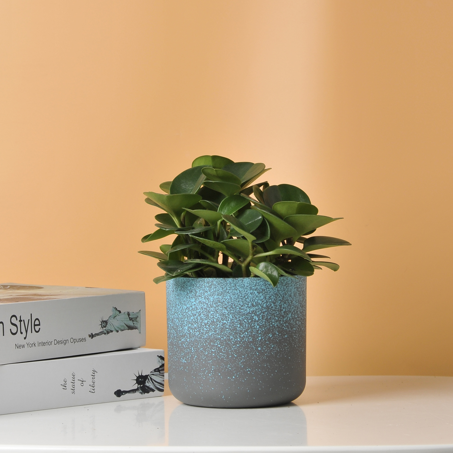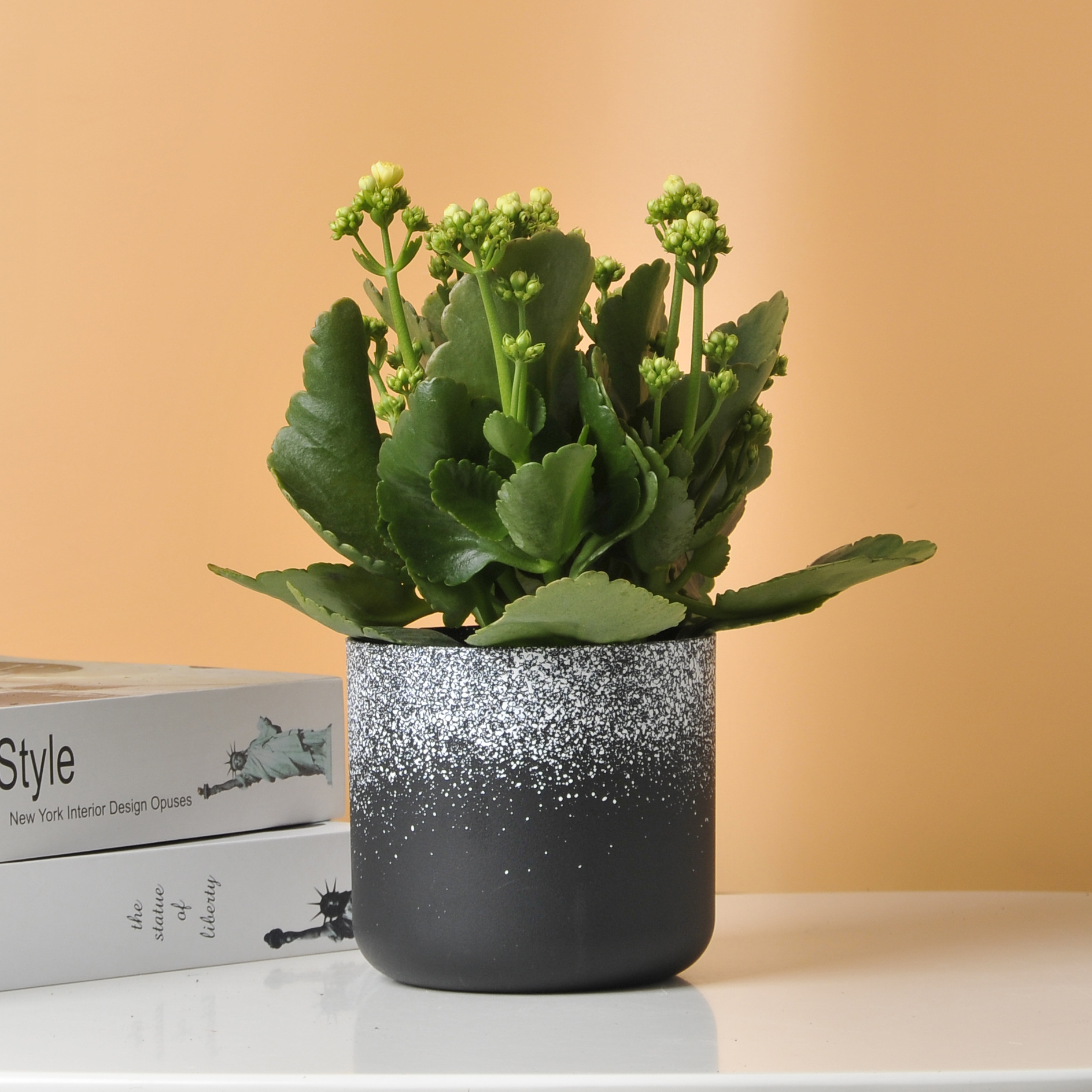 北欧风双色喷点仿石纹直筒盆 圆口加厚塑料小花盆 桌面收纳多肉盆