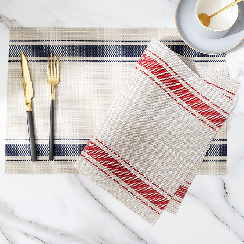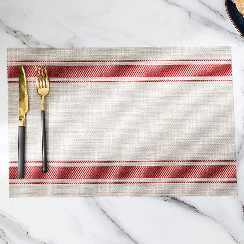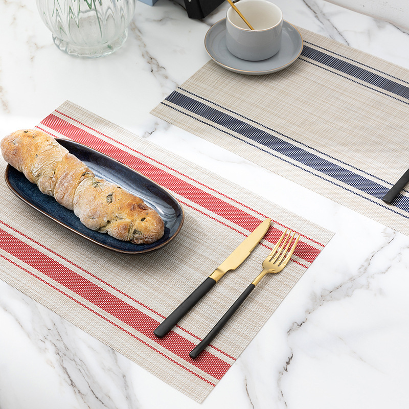 PVC餐垫特斯林餐垫隔热餐桌垫杯垫酒店餐厅日式仿麻条纹西餐垫