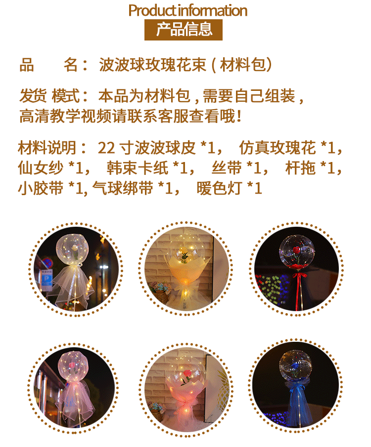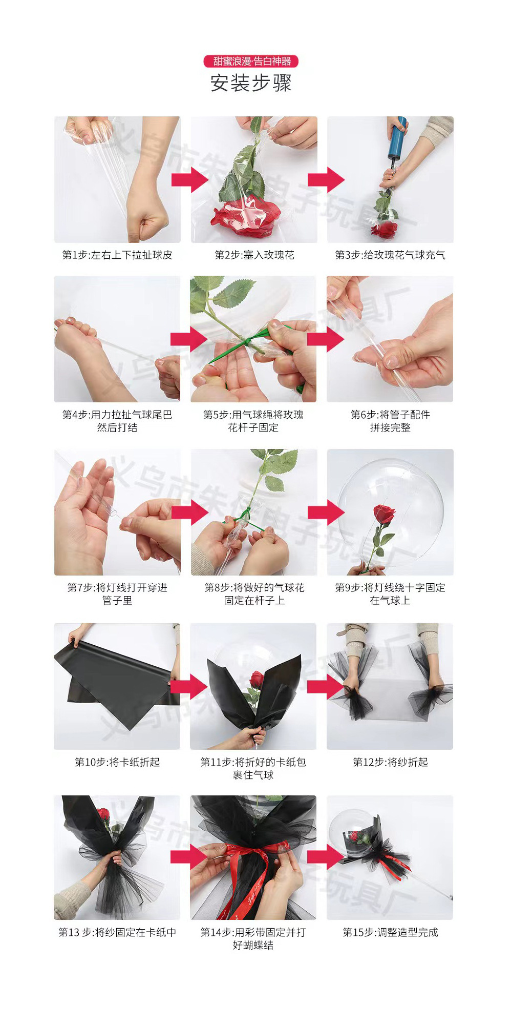 网红透明520发光波波球玫瑰花波波球地摊情人节波波球气球全套