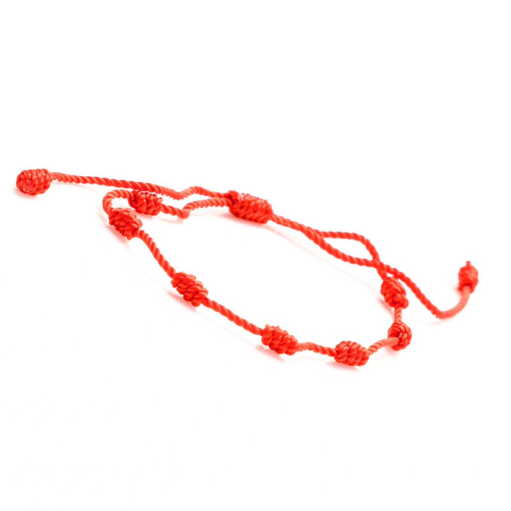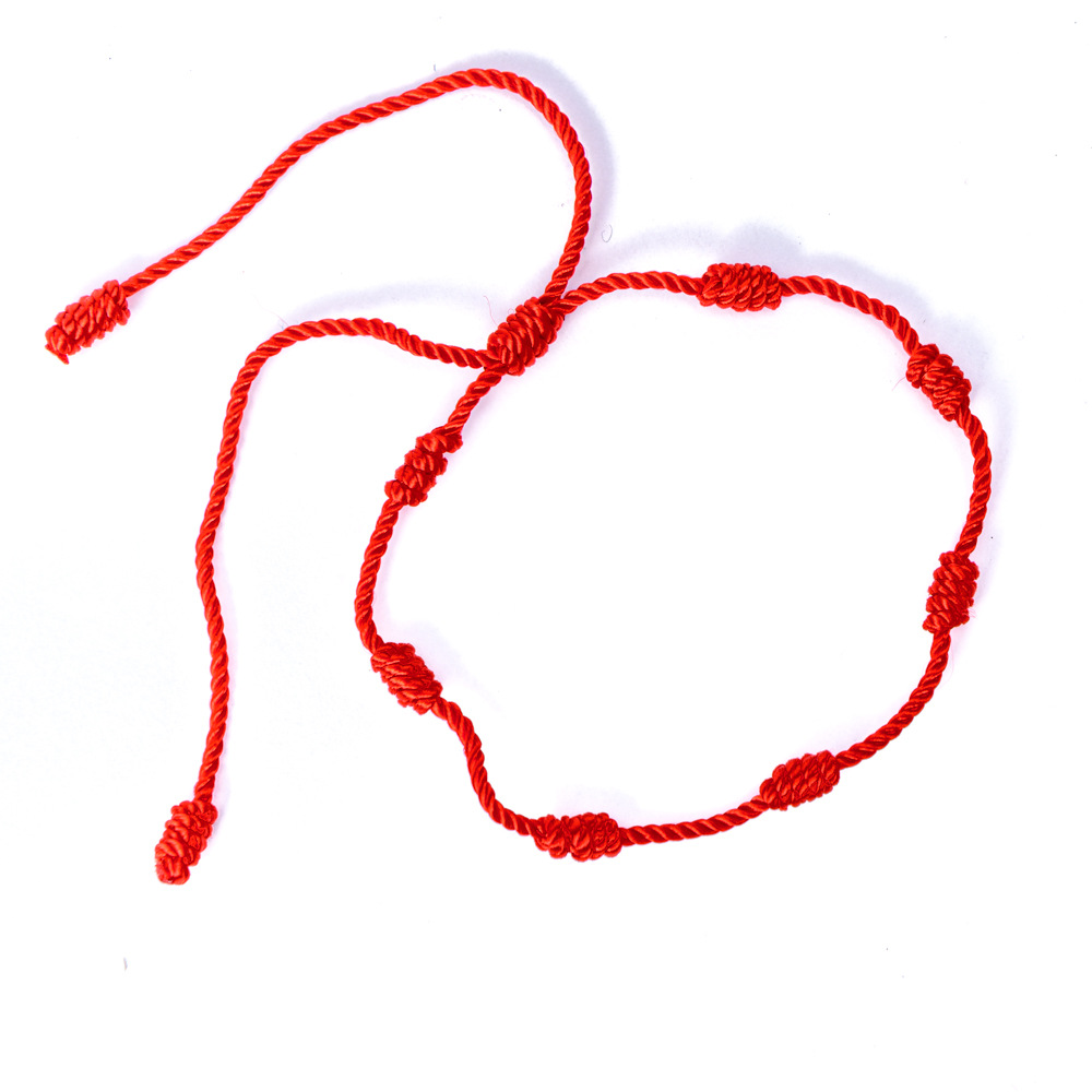 现货跨境热款不易褪色红黑两色手工秘鲁结编织七节红绳手链