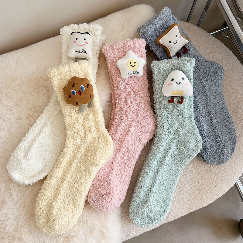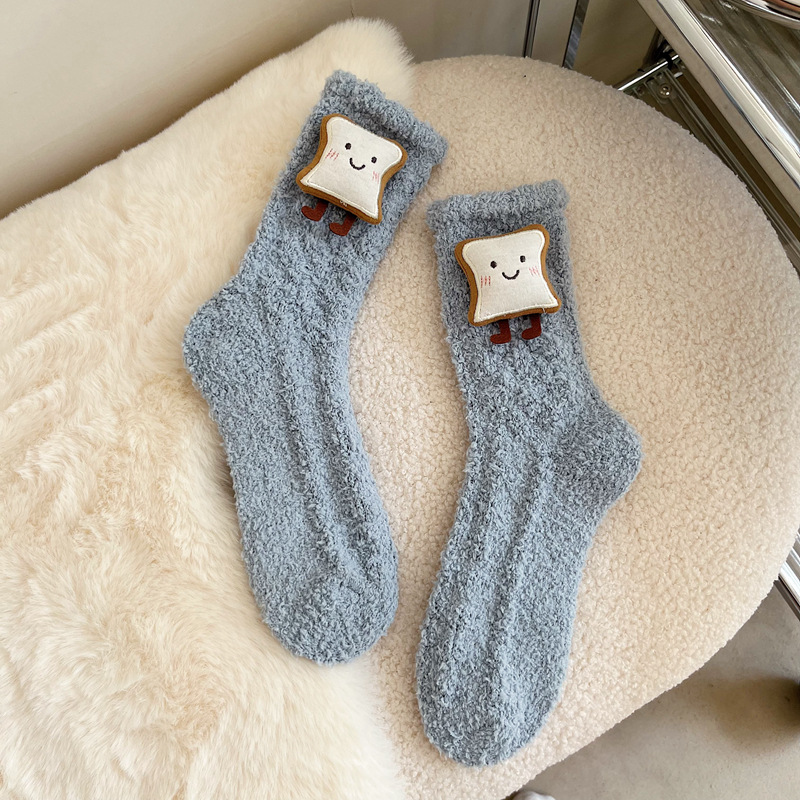 可爱珊瑚绒袜子女冬季加厚保暖中筒袜立体玩偶ins网红居家睡眠袜