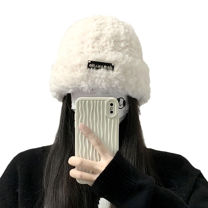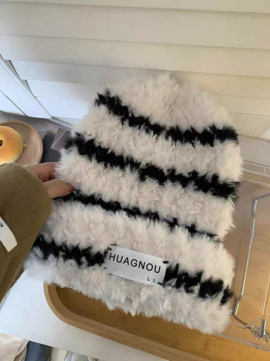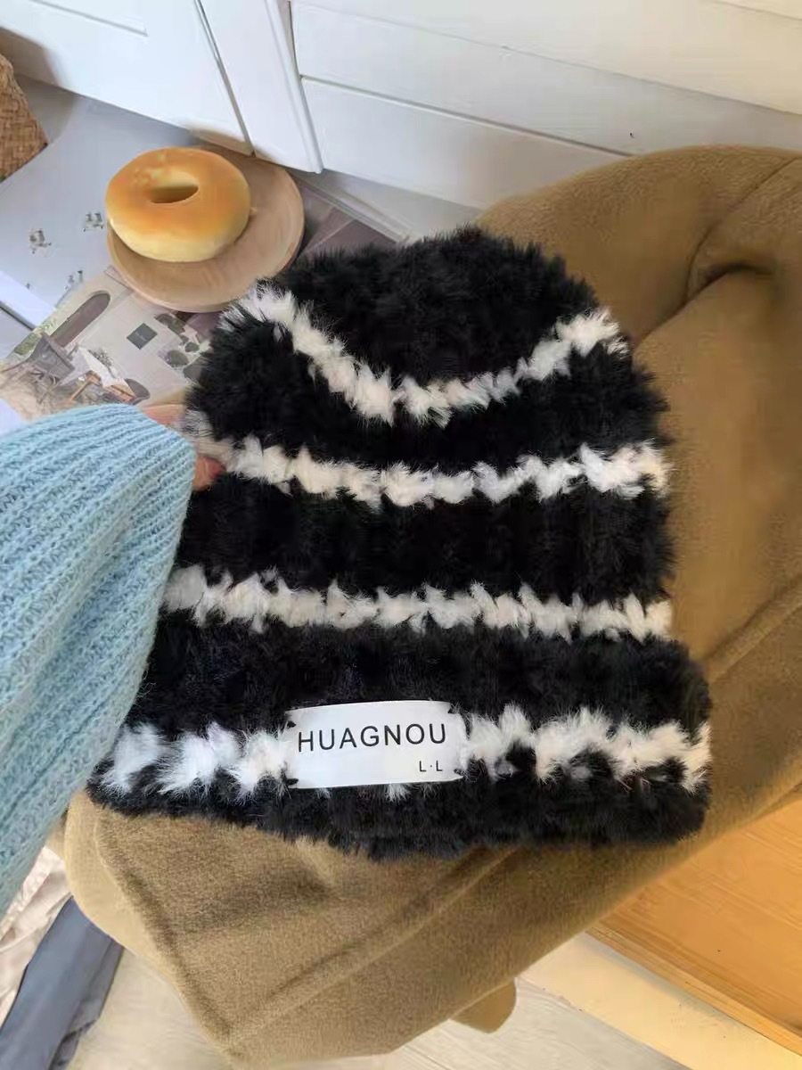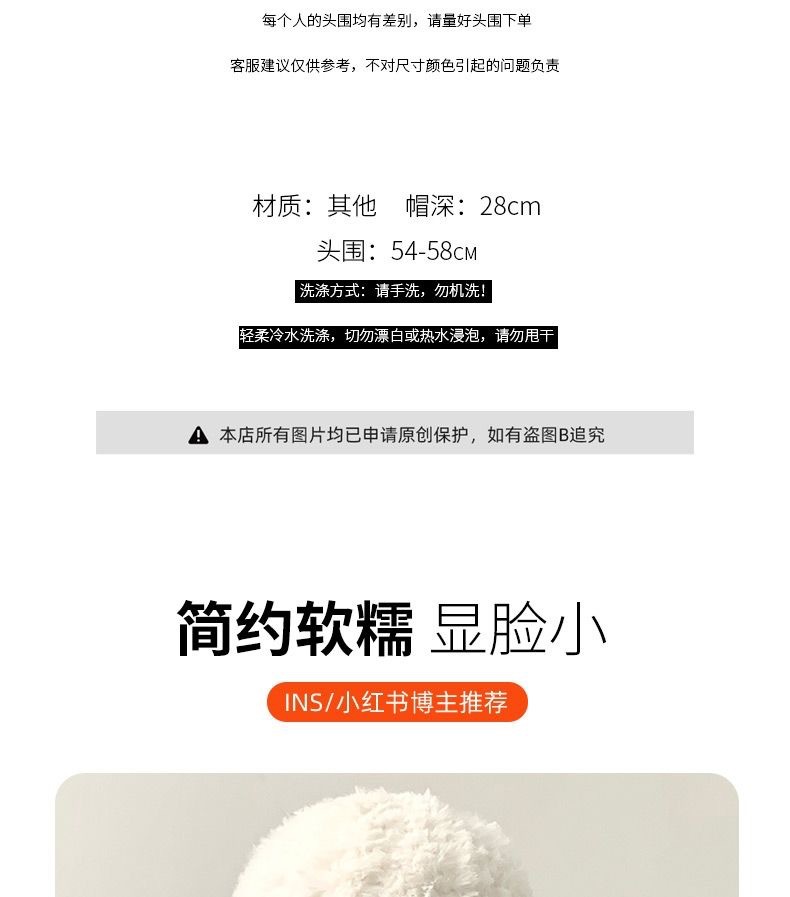 毛线帽子秋冬季女款百搭针织包头显脸小保暖白色毛绒针织帽大头围