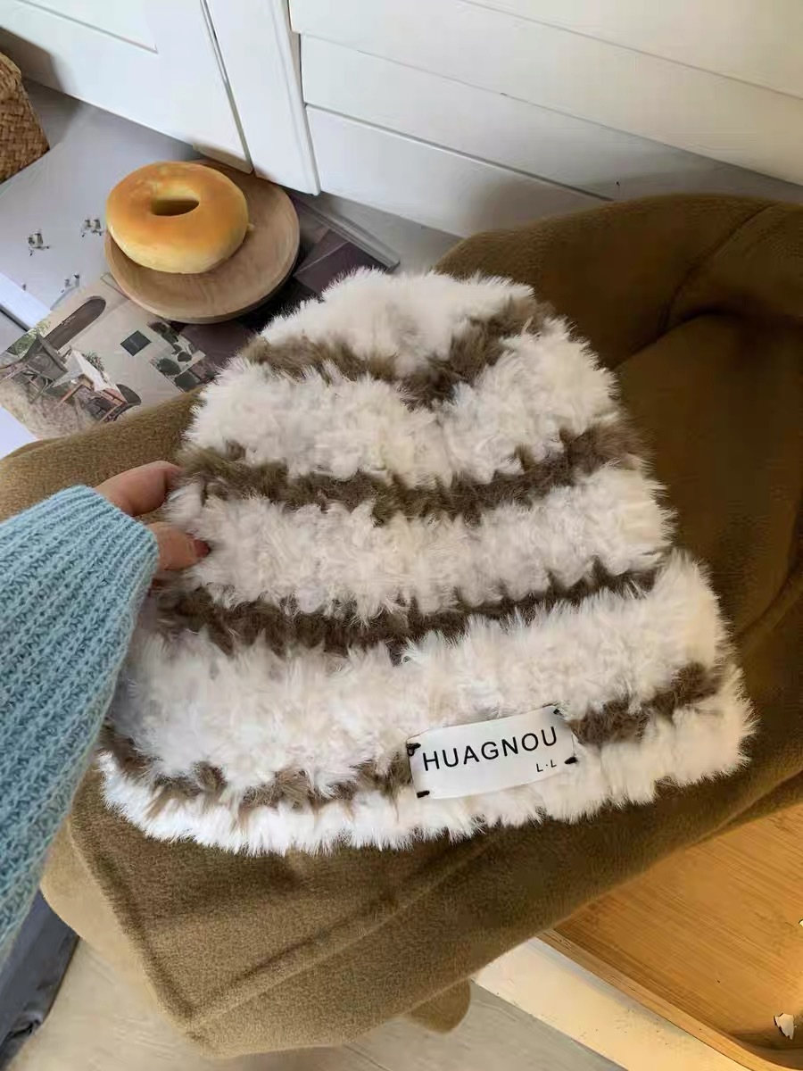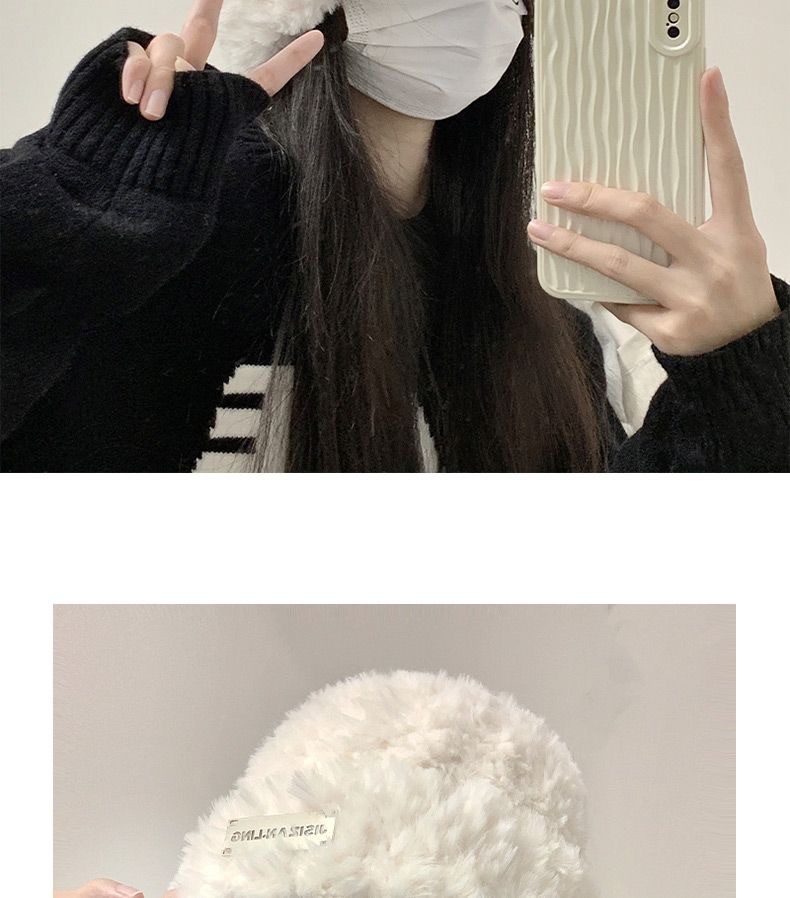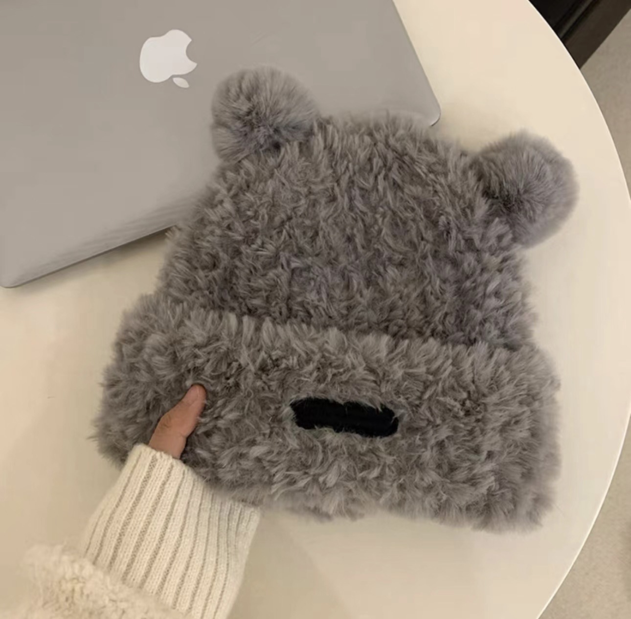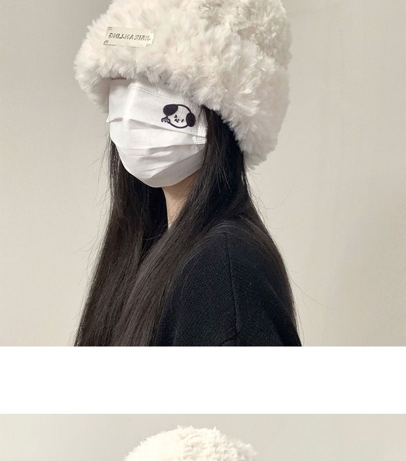 毛线帽子秋冬季女款百搭针织包头显脸小保暖白色毛绒针织帽大头围
