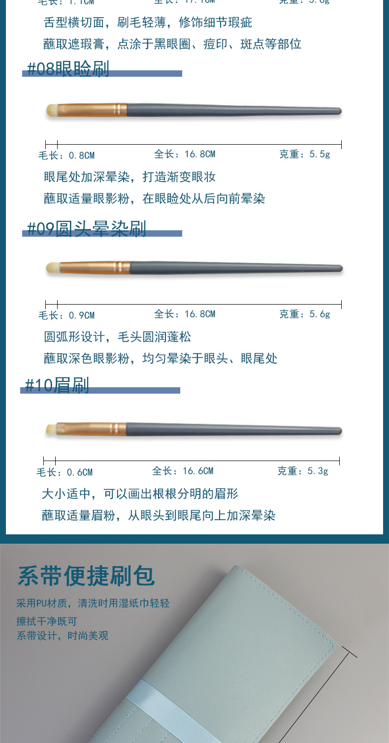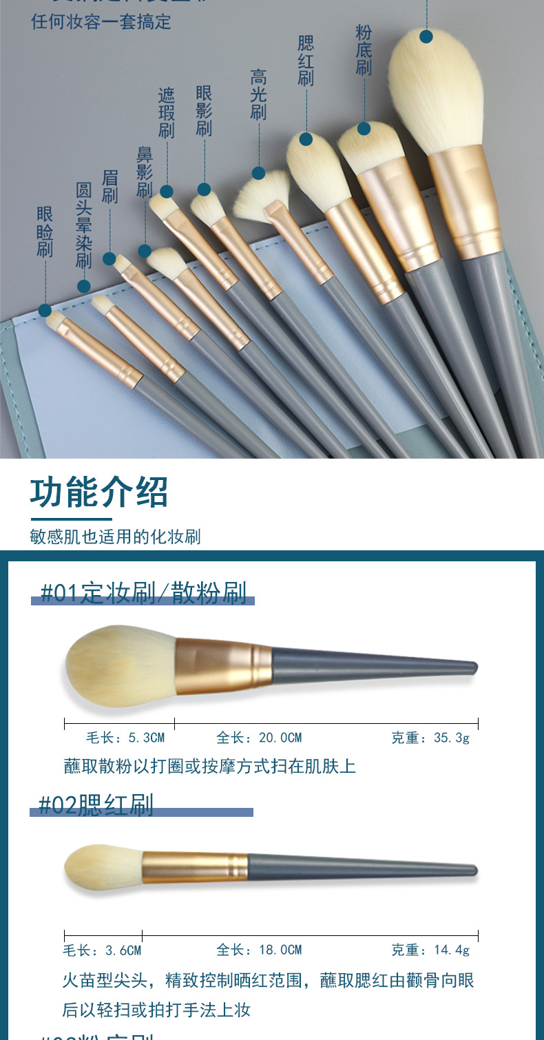 厂家10支化妆刷套装纤维毛化妆工具全套眼影刷唇刷散粉刷