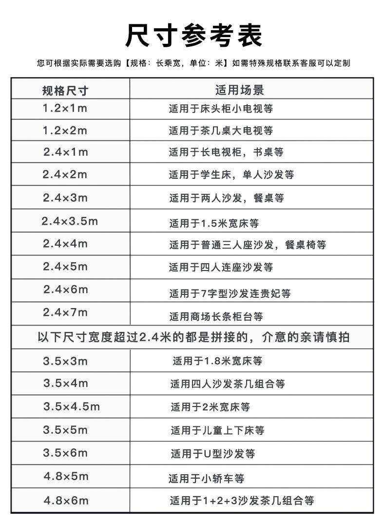 | 3.5*4m (suitable for four people, sofa and tea table combinations, etc.) with splicing(3.5*4m(适用于四人沙发茶几组合等)有拼接) | USD $8.91 | 6666 piece available |