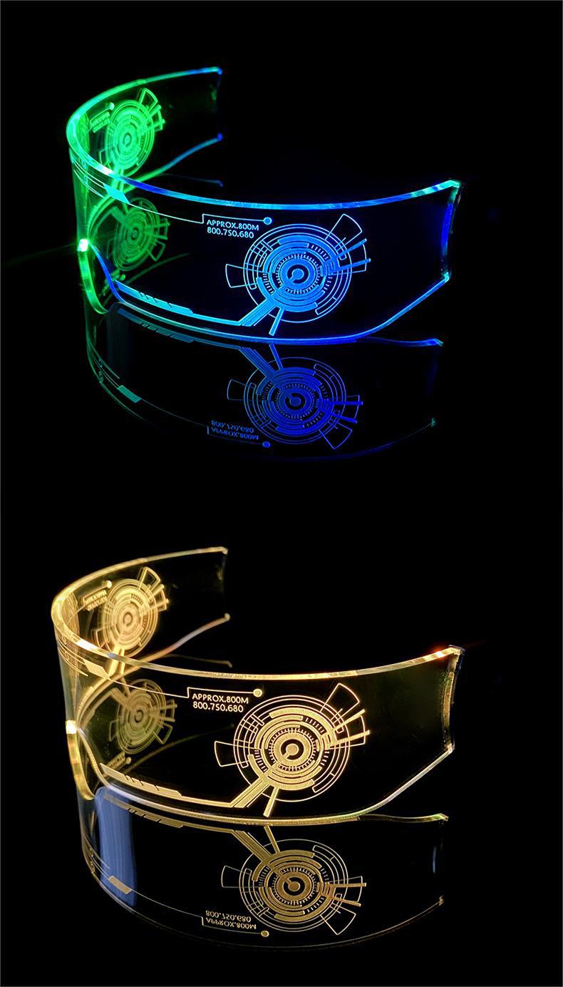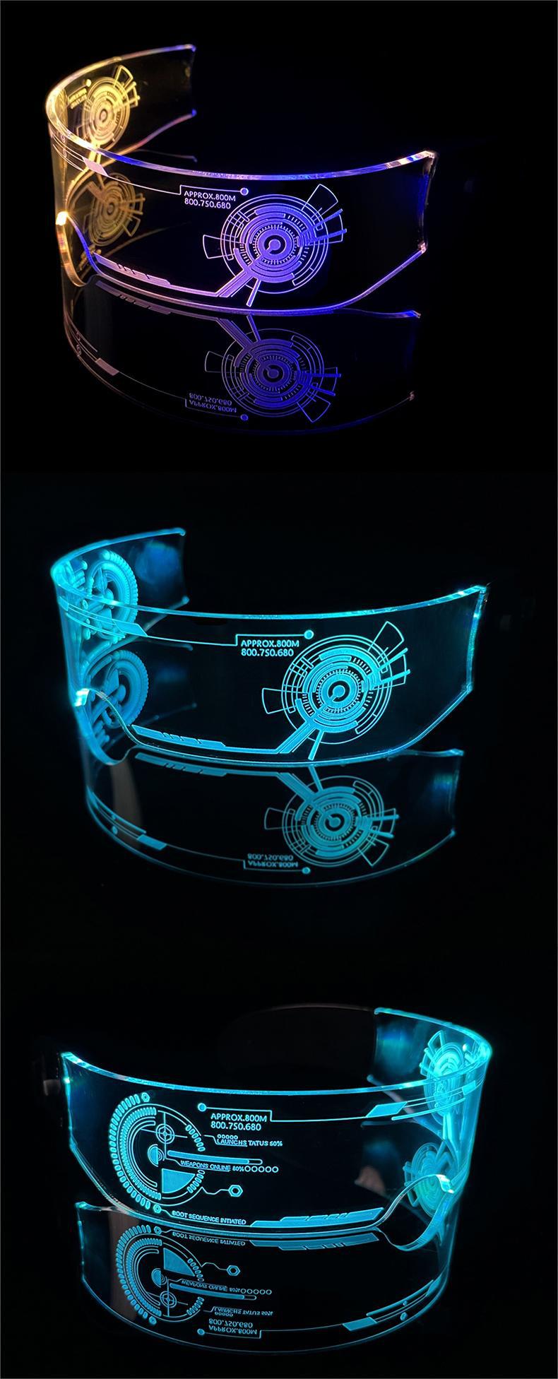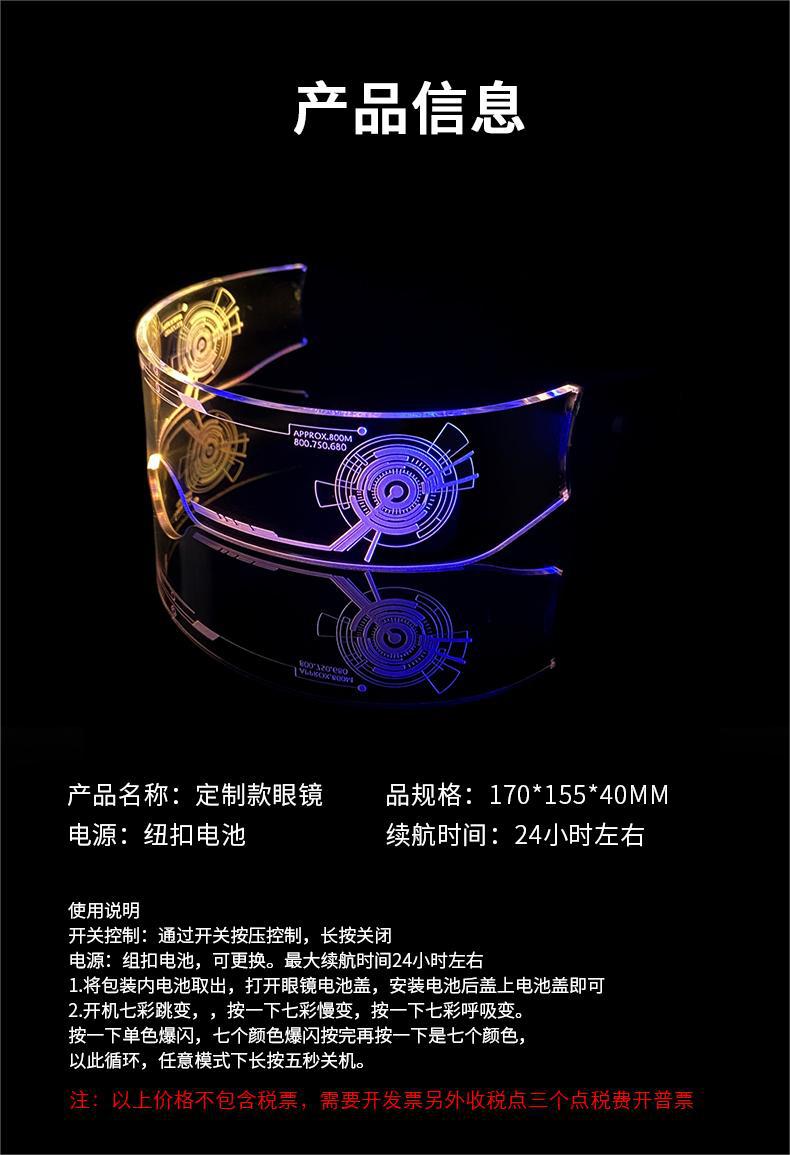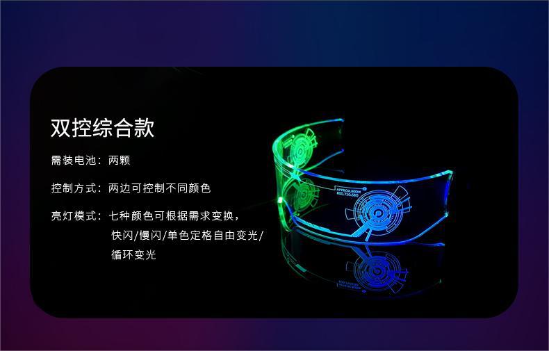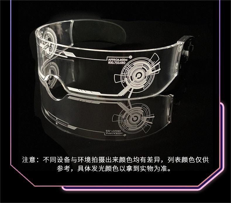 LED七彩发光眼镜ins网红连体赛博朋克墨镜科幻酒吧蹦迪闪光太阳镜