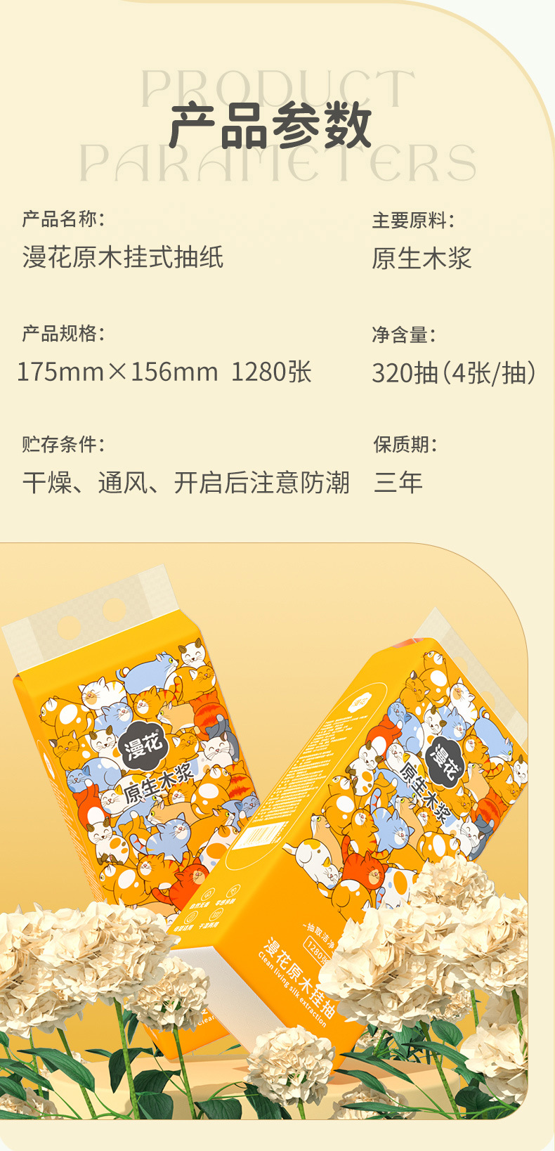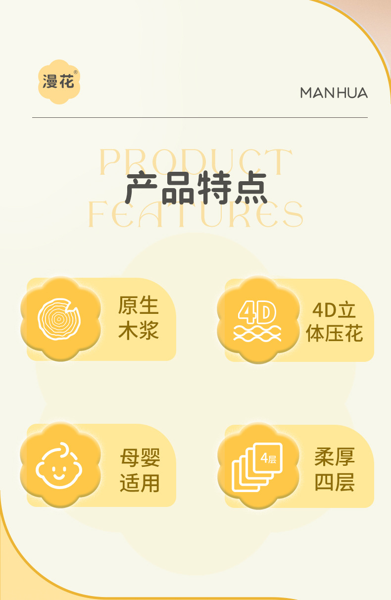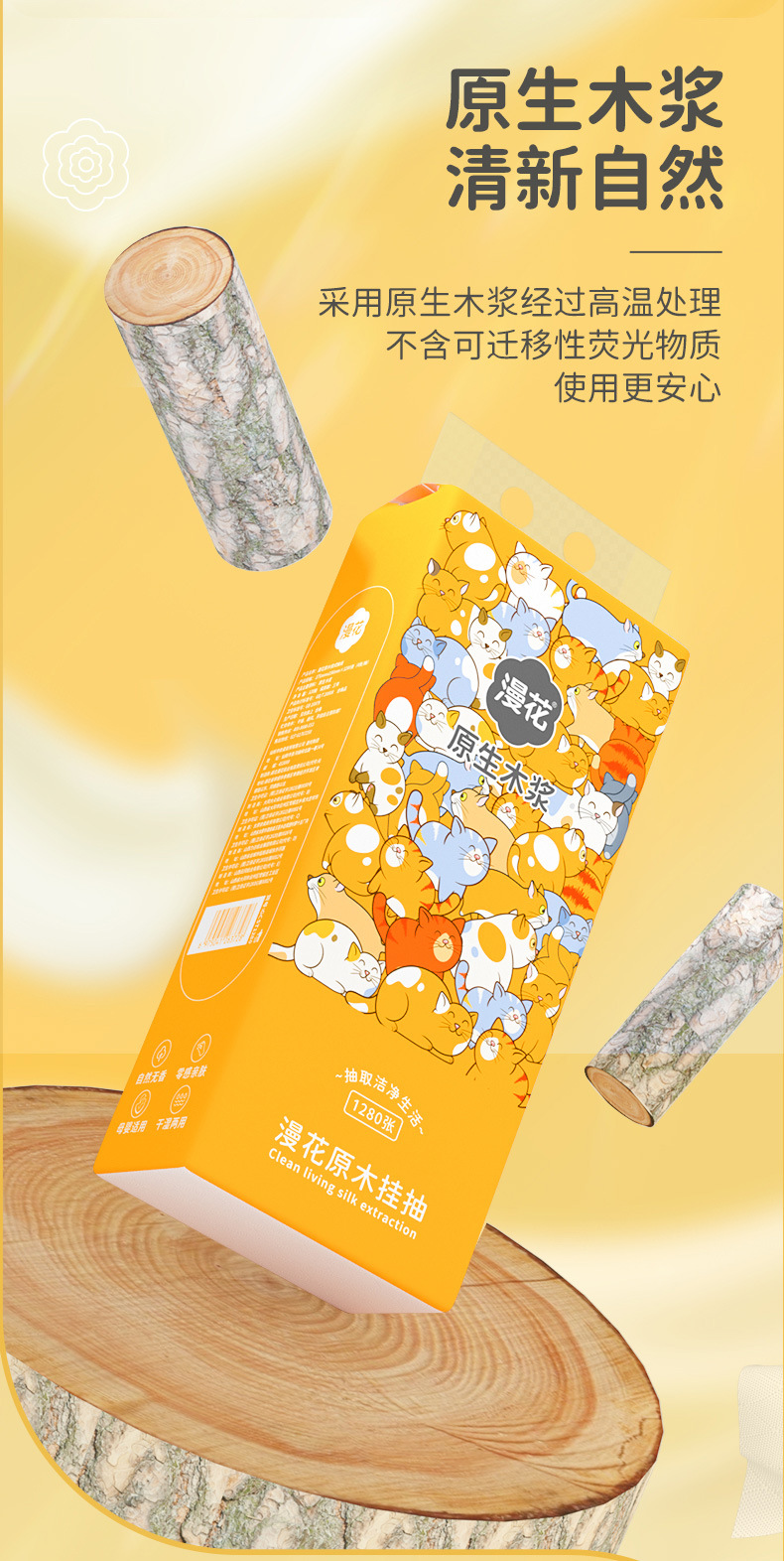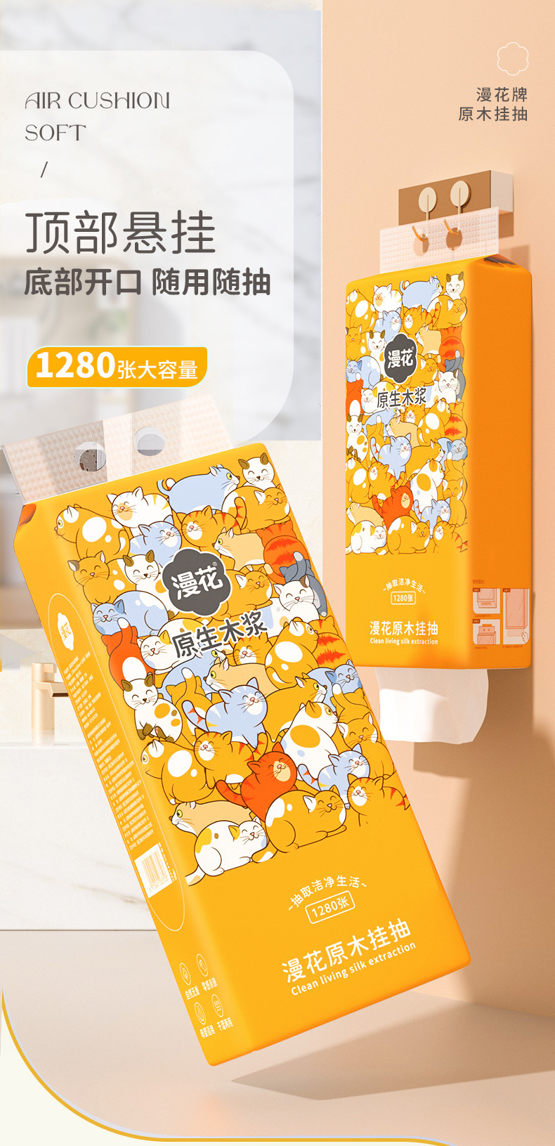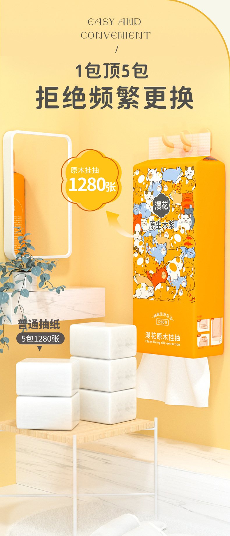 漫花大包餐巾纸家用整箱6提实惠装纸巾原木悬挂式抽纸厕用卫生纸