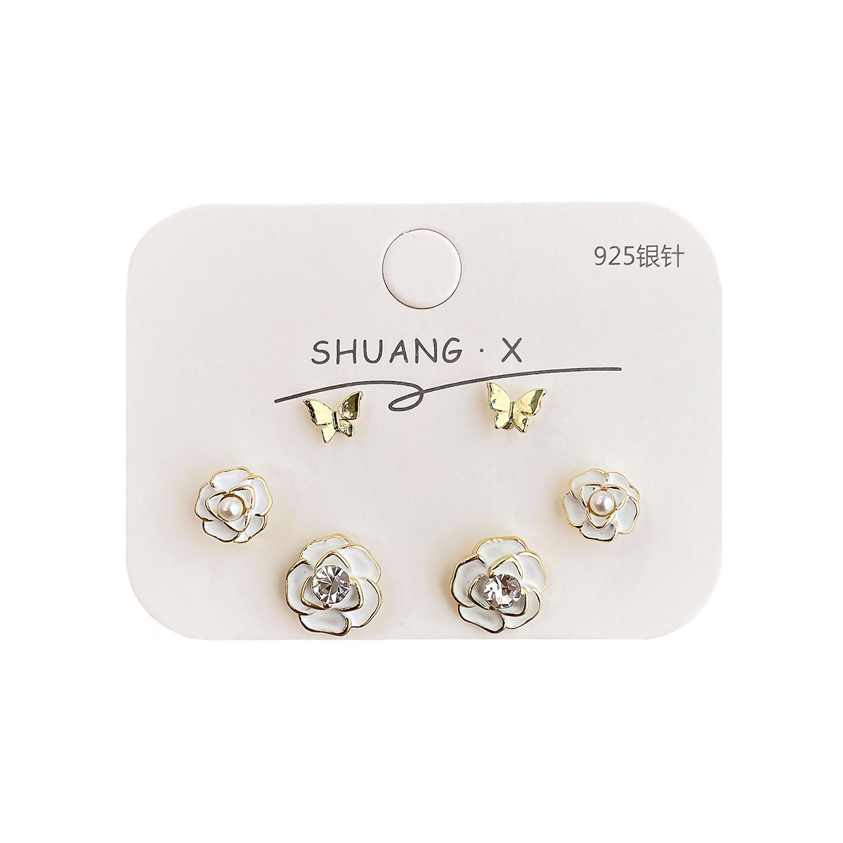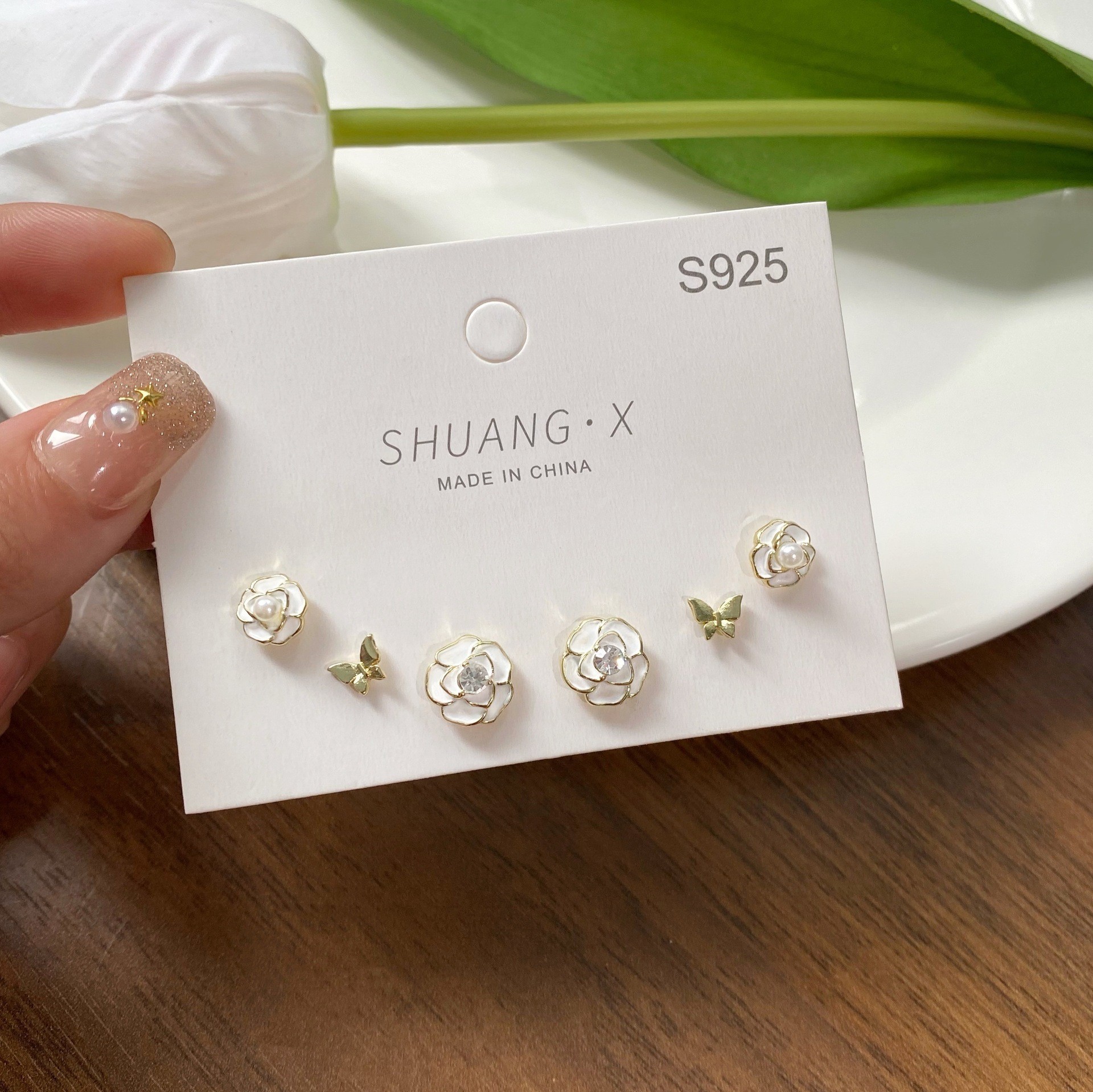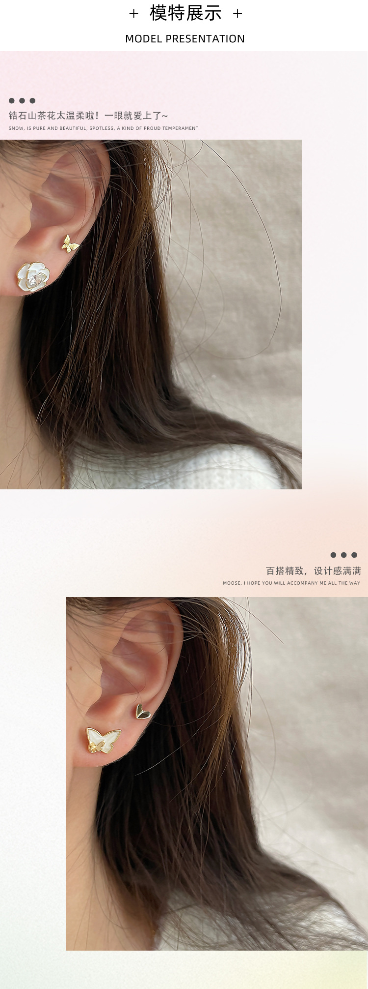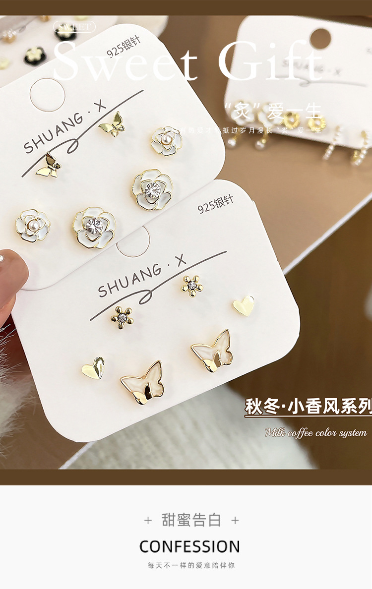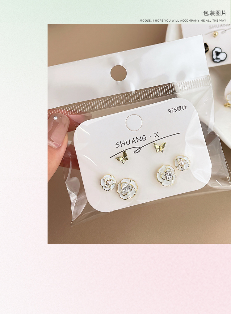 山茶花小香风耳钉套装银针高级感花朵耳钉女精致蝴蝶义乌耳饰批发