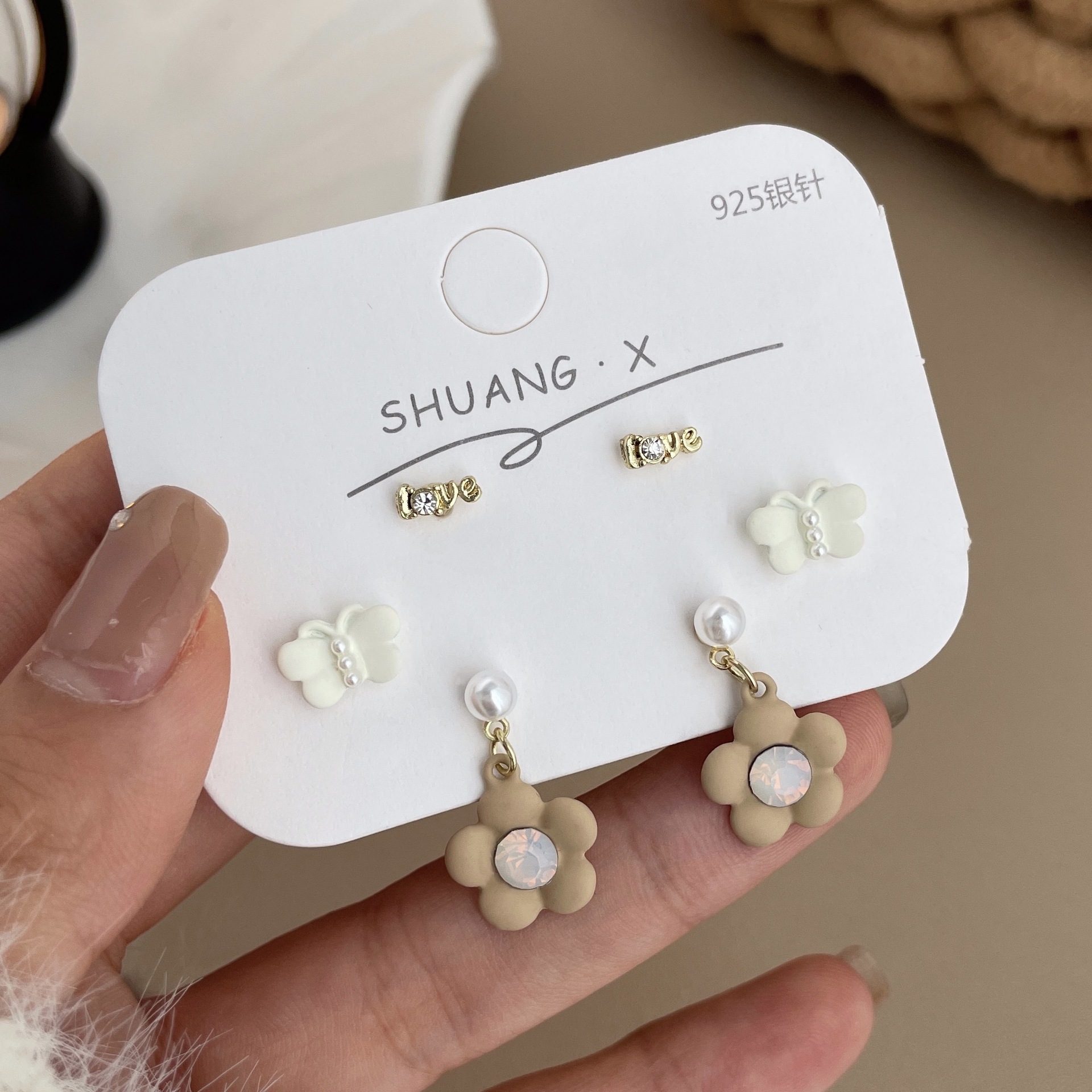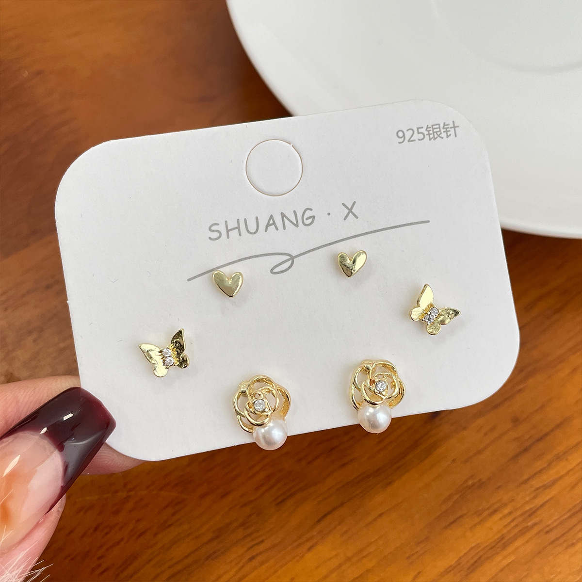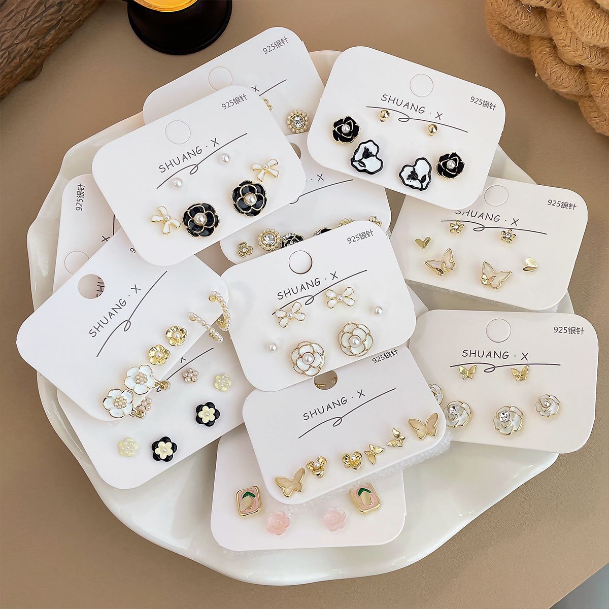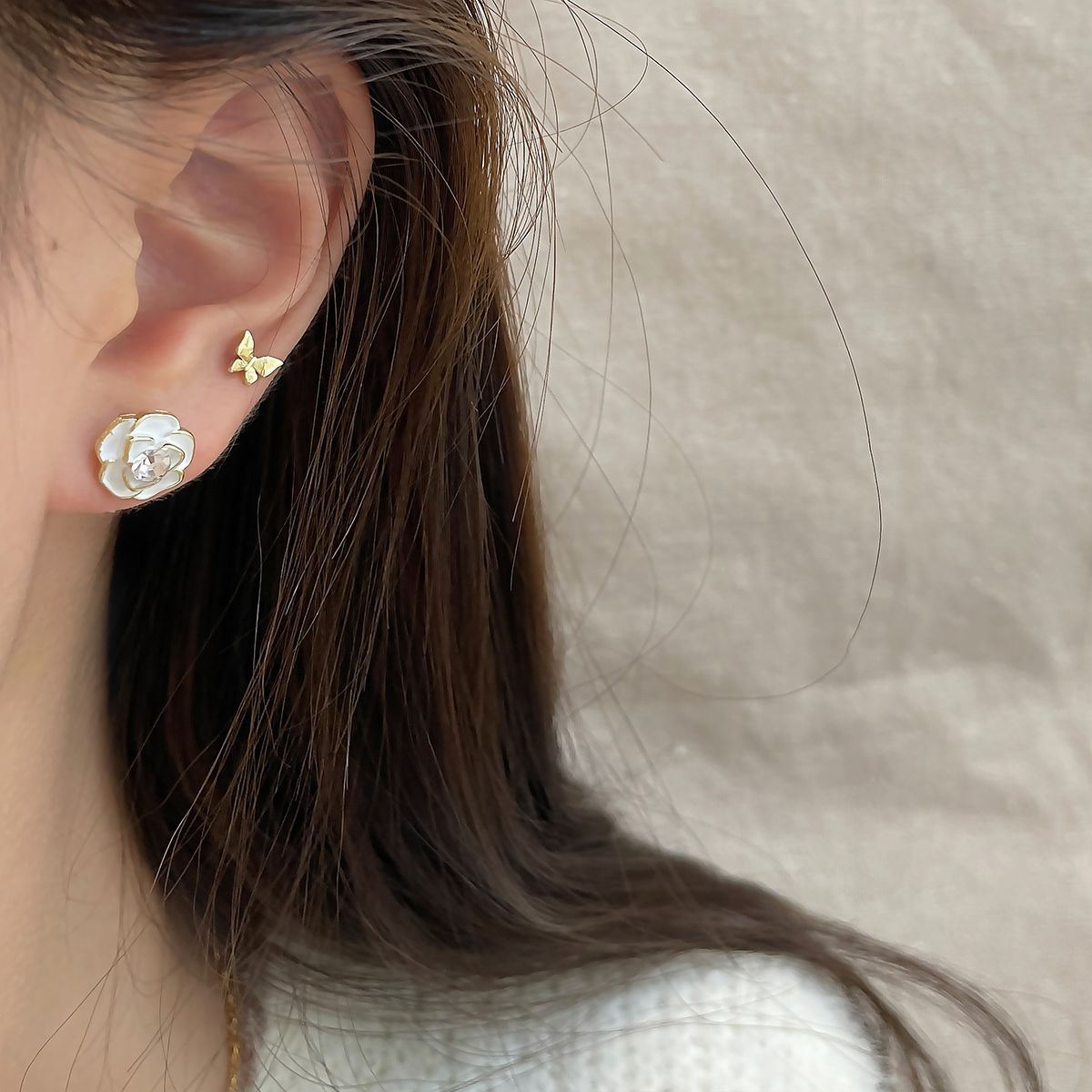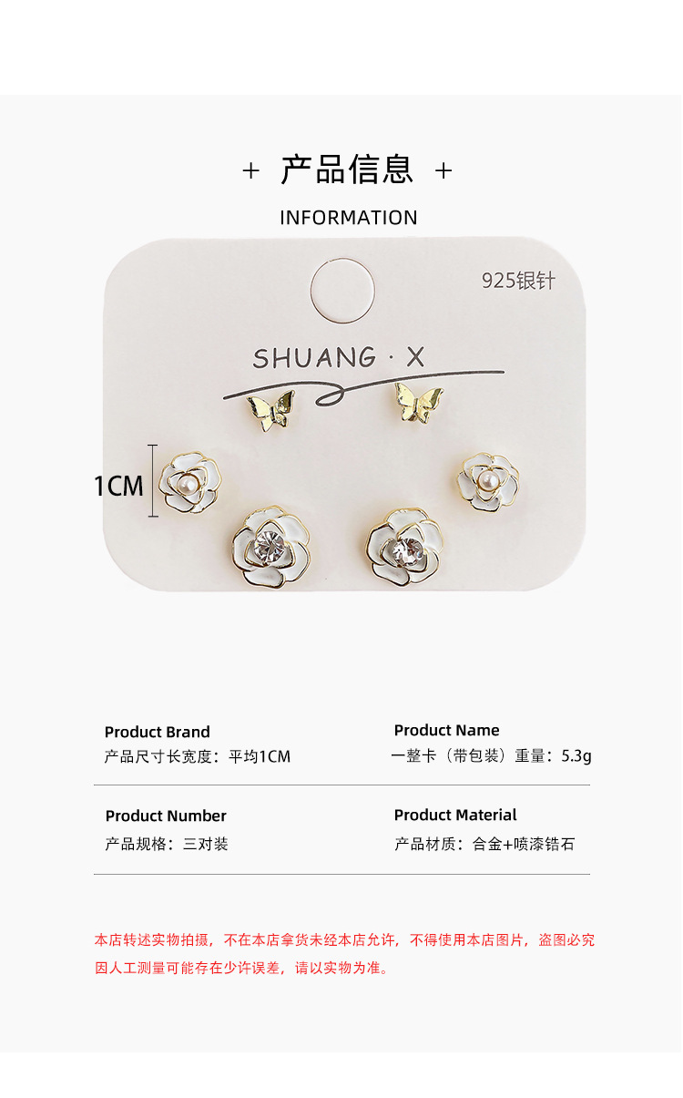 山茶花小香风耳钉套装银针高级感花朵耳钉女精致蝴蝶义乌耳饰批发