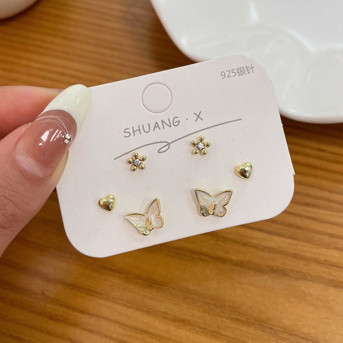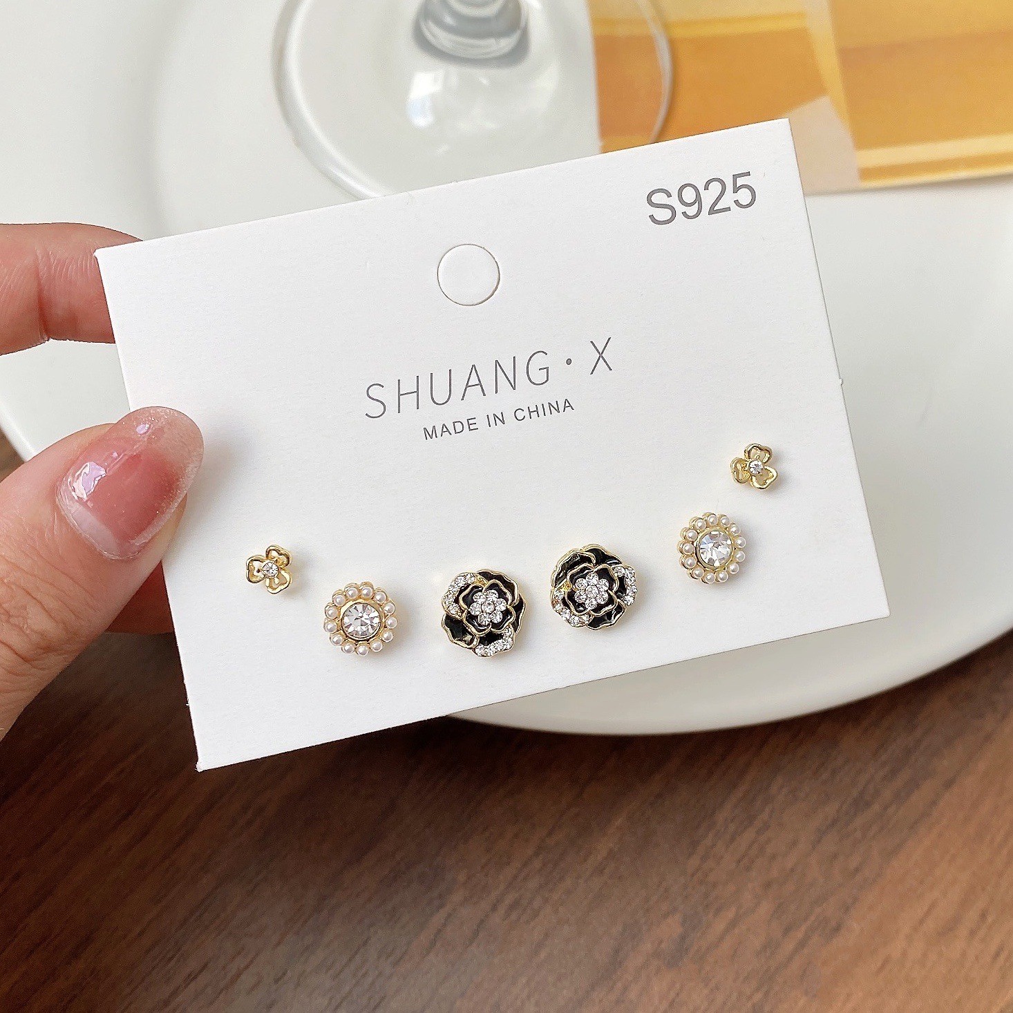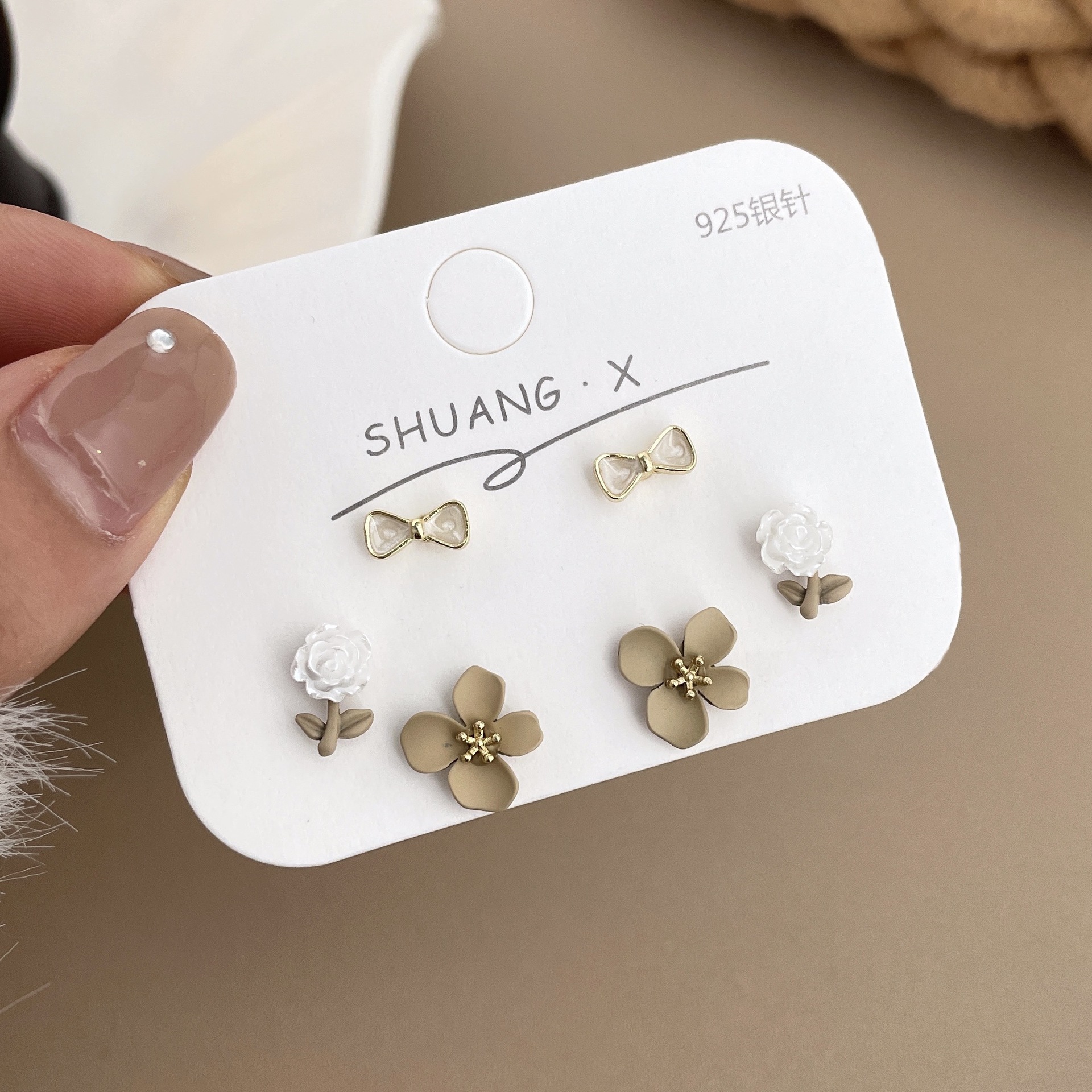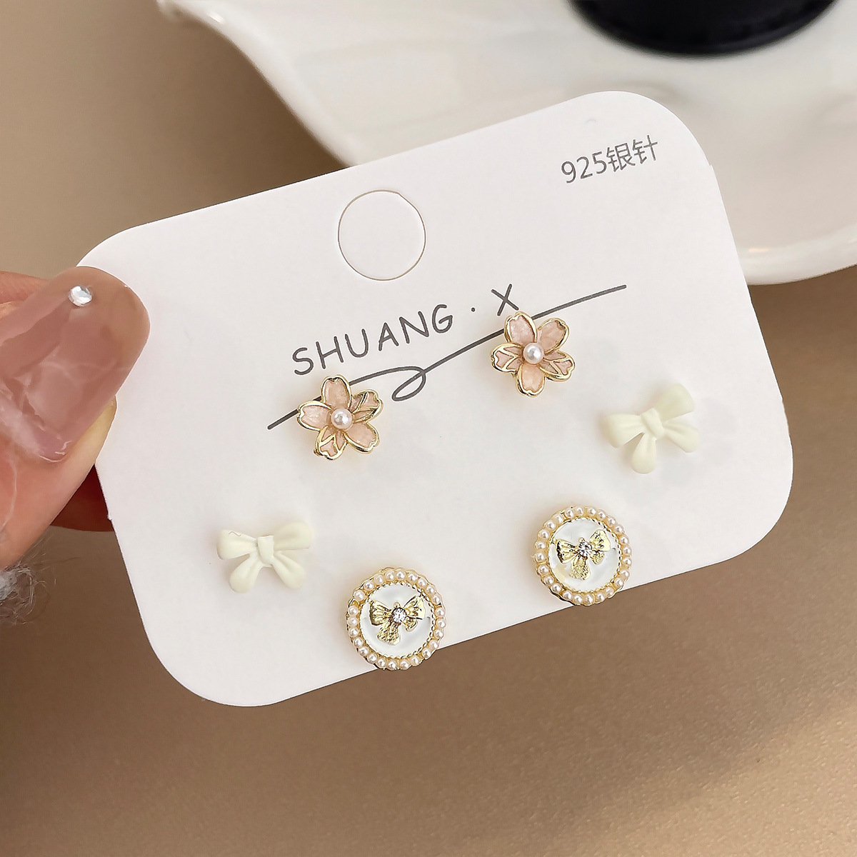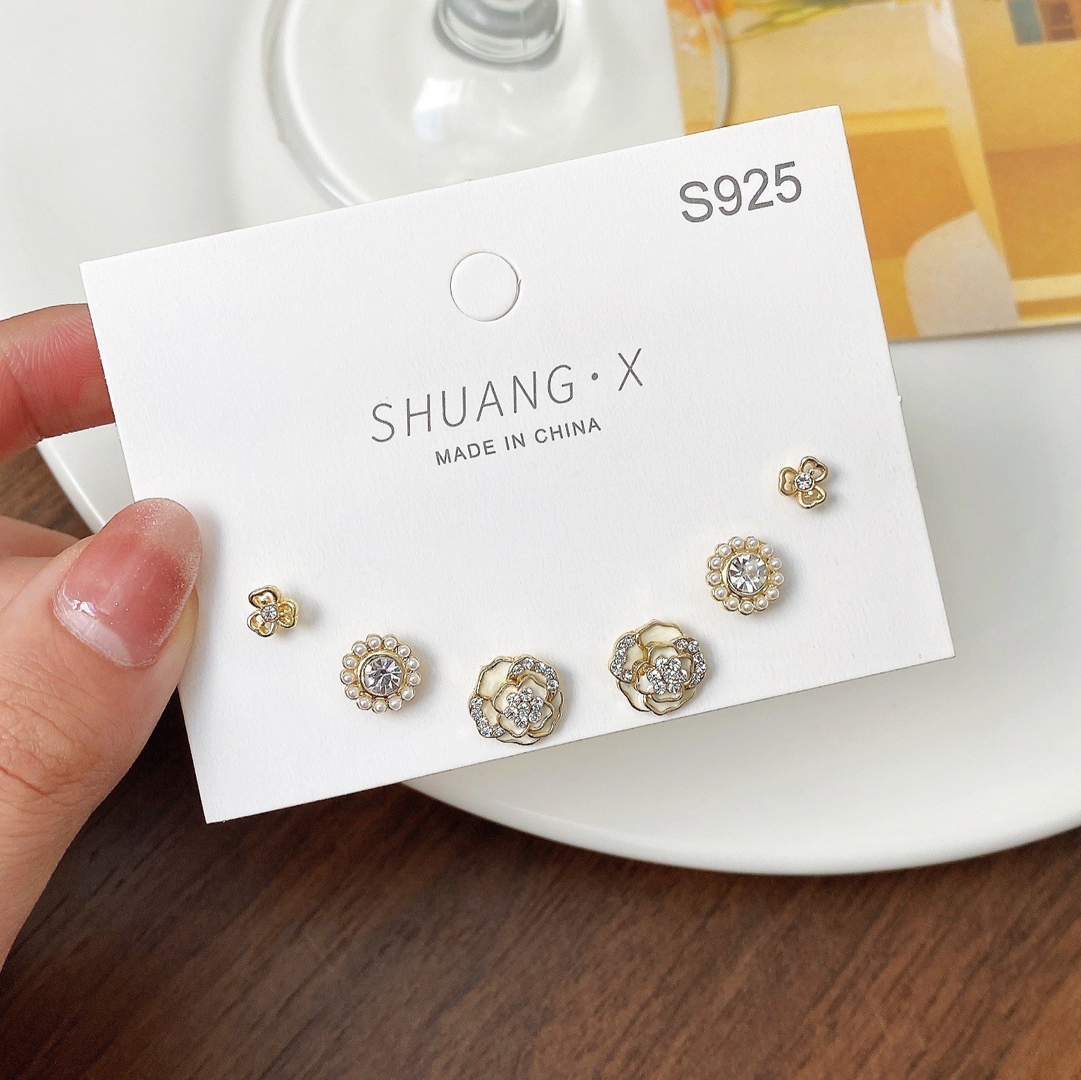 山茶花小香风耳钉套装银针高级感花朵耳钉女精致蝴蝶义乌耳饰批发