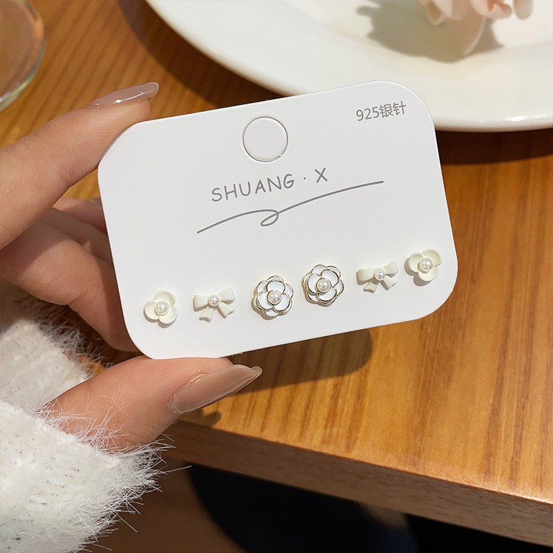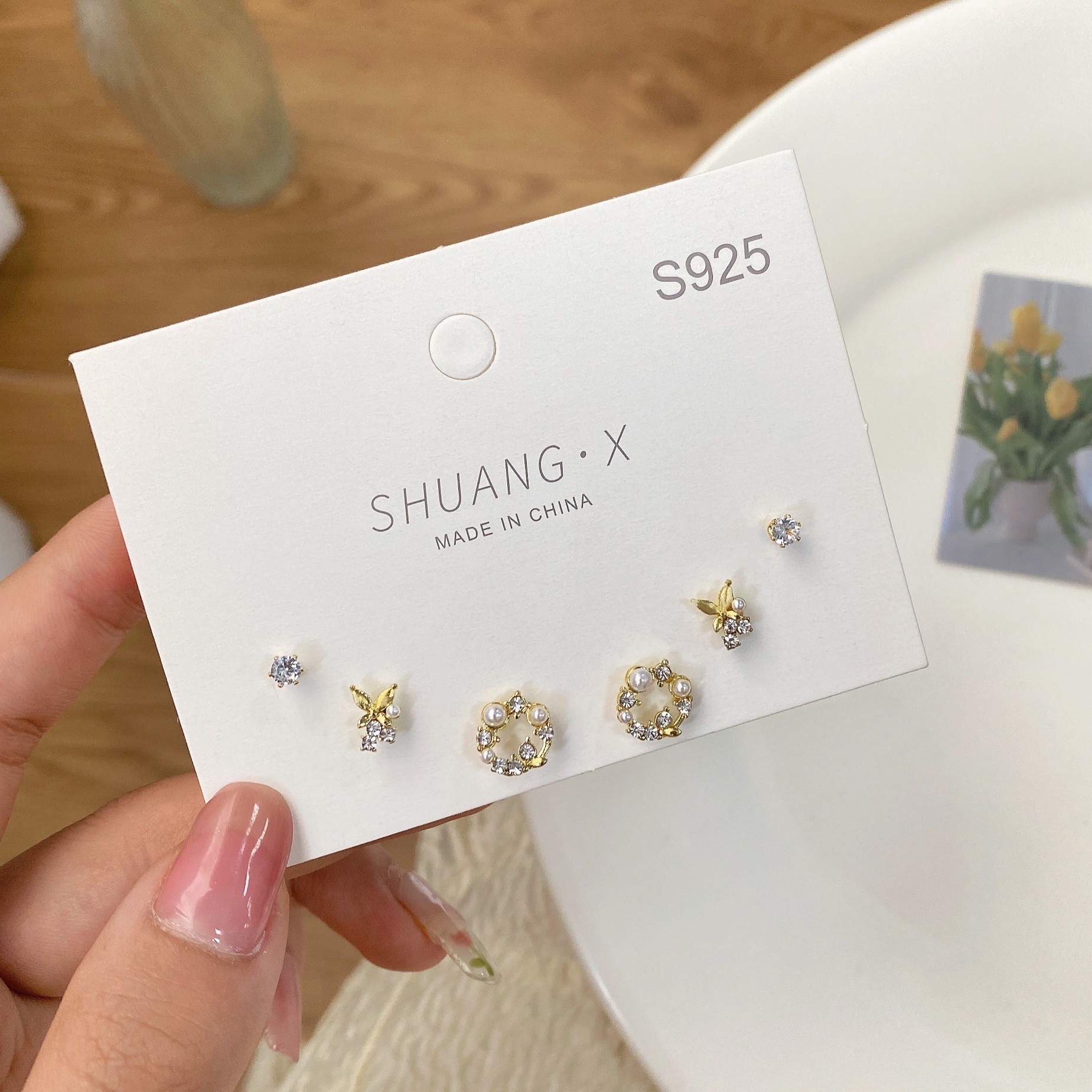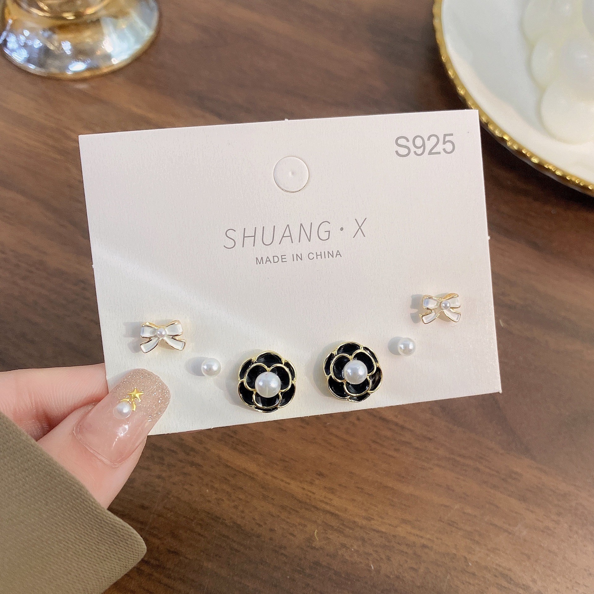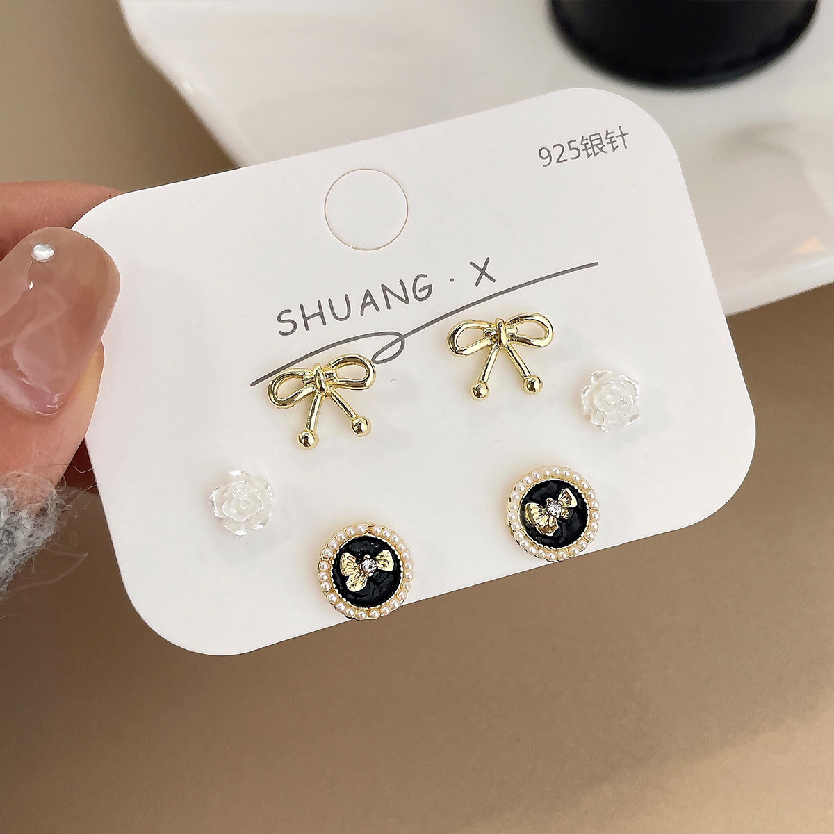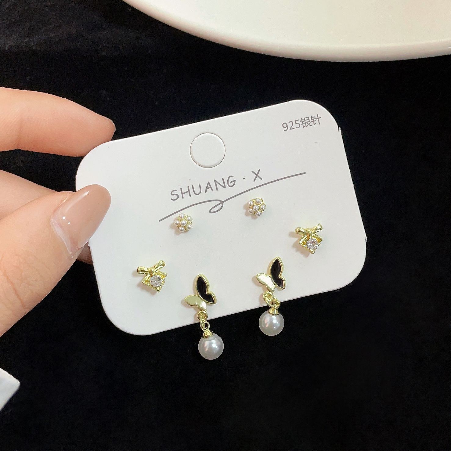 山茶花小香风耳钉套装银针高级感花朵耳钉女精致蝴蝶义乌耳饰批发
