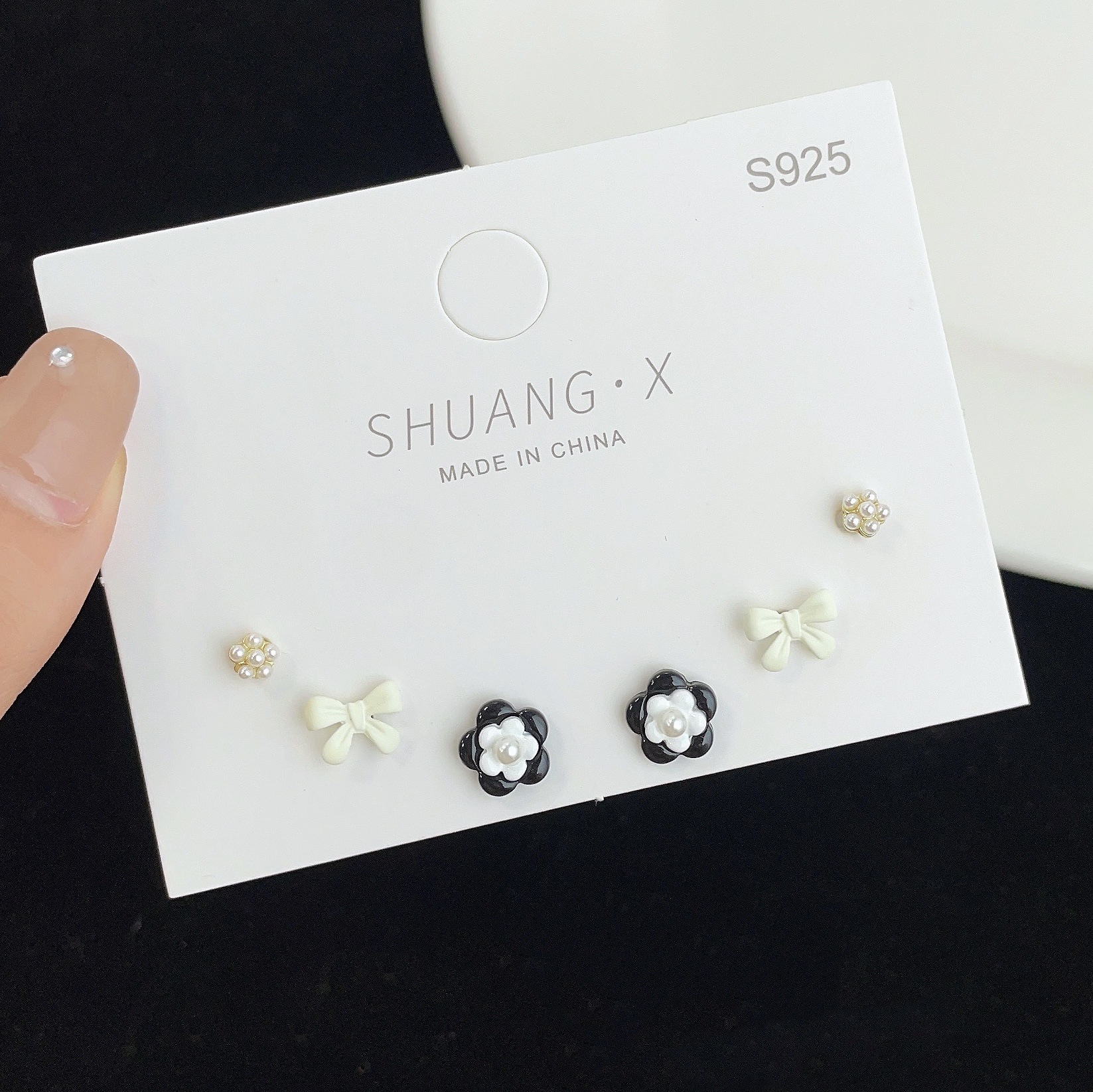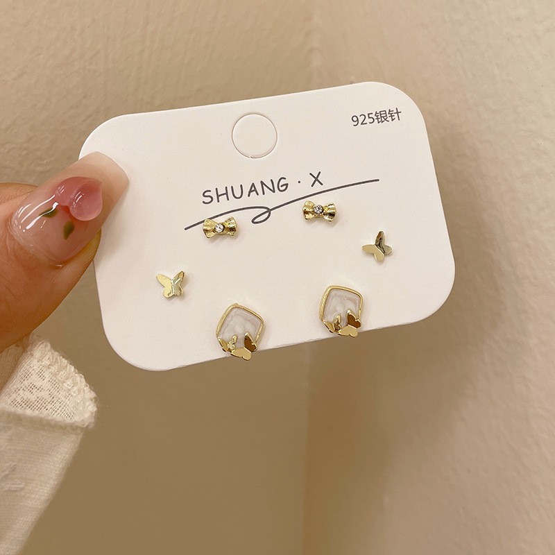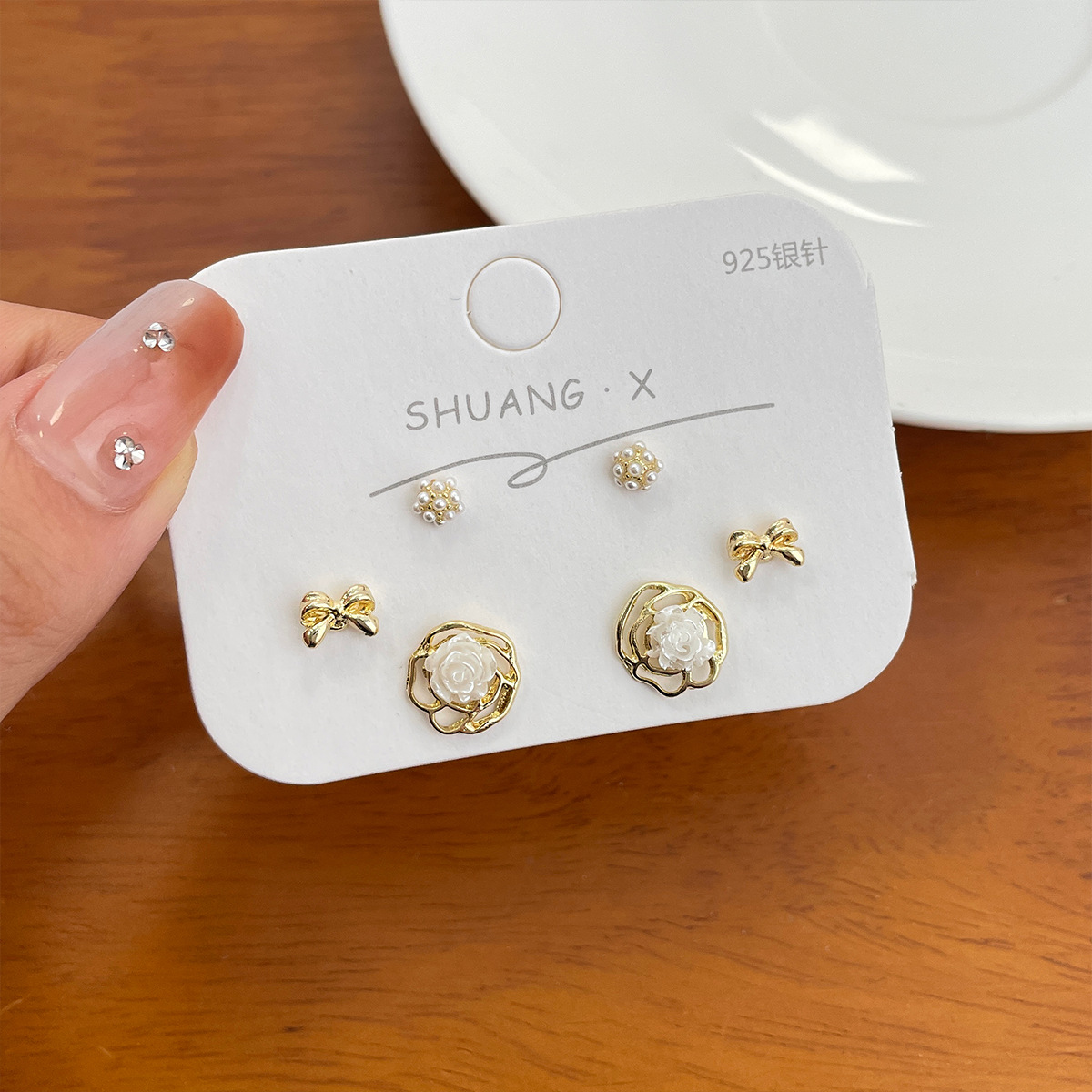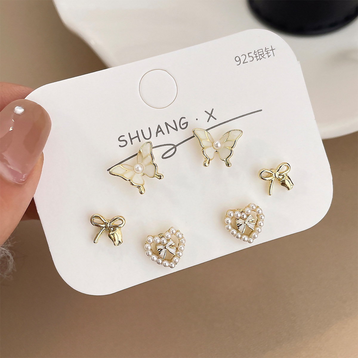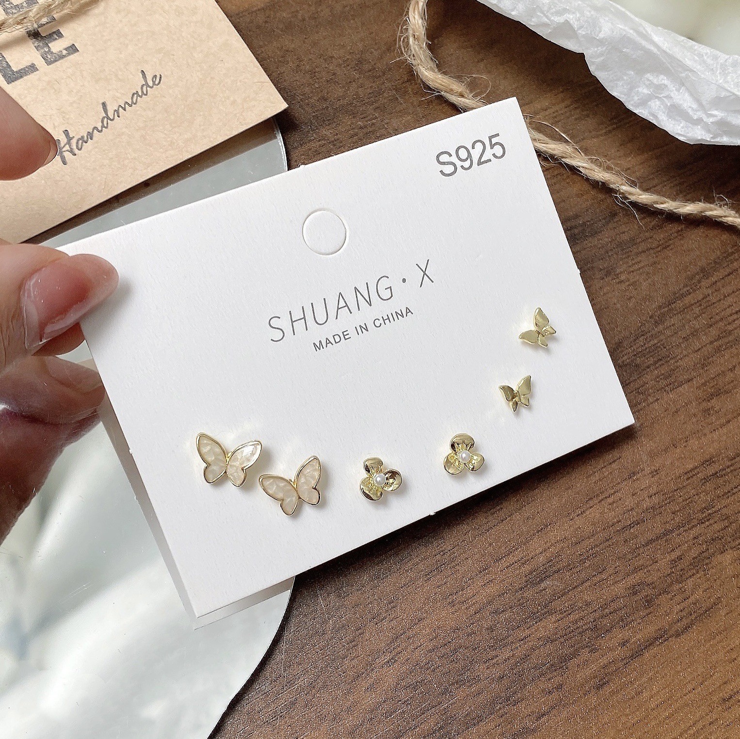 山茶花小香风耳钉套装银针高级感花朵耳钉女精致蝴蝶义乌耳饰批发