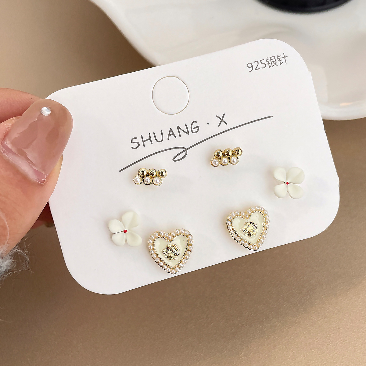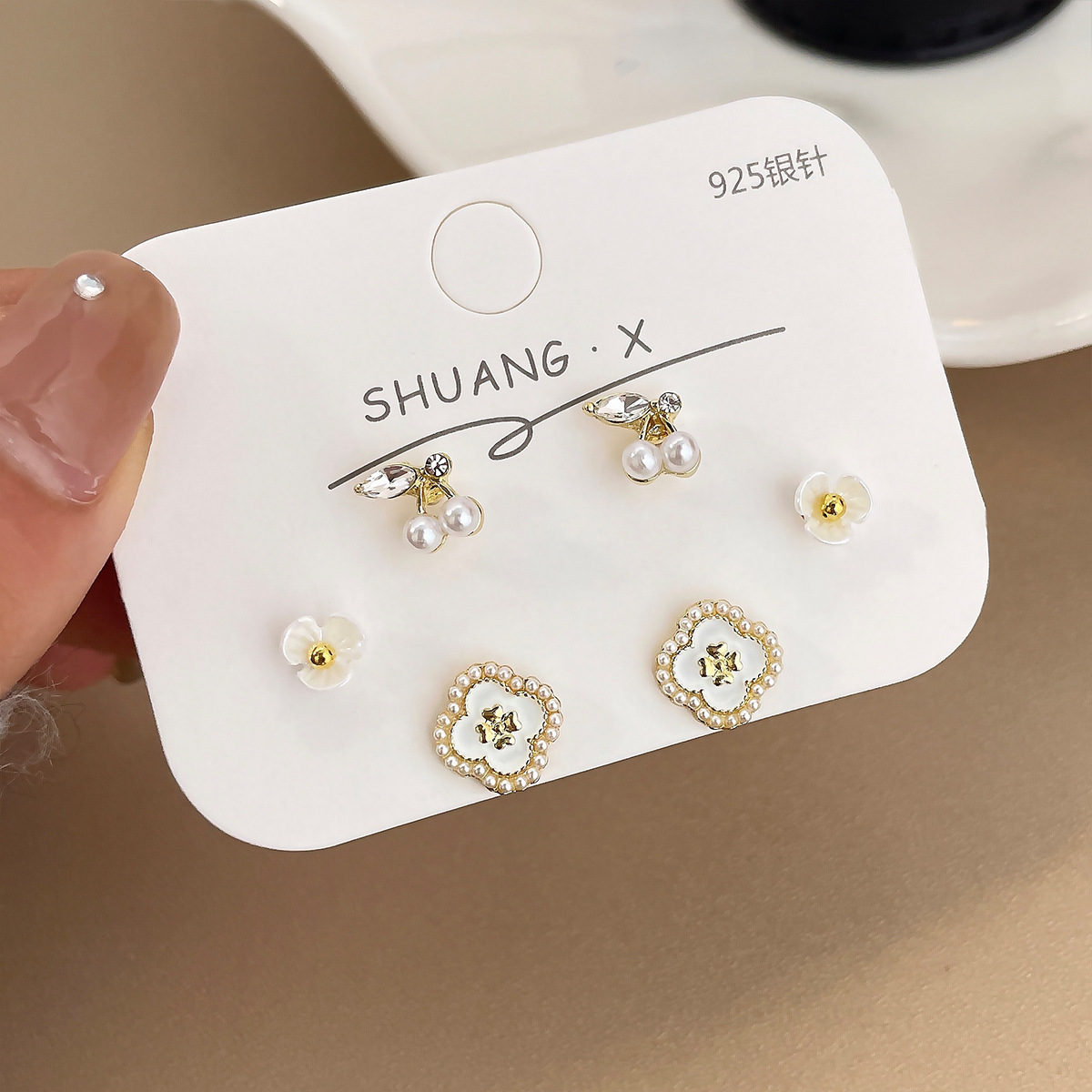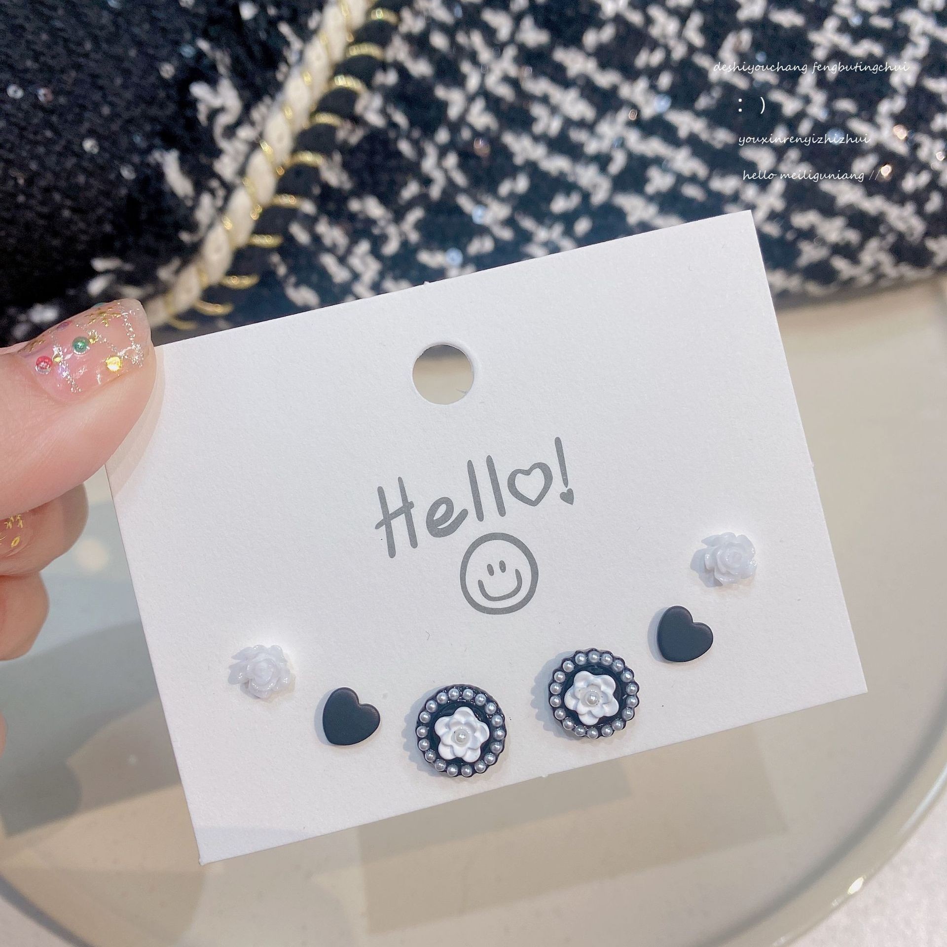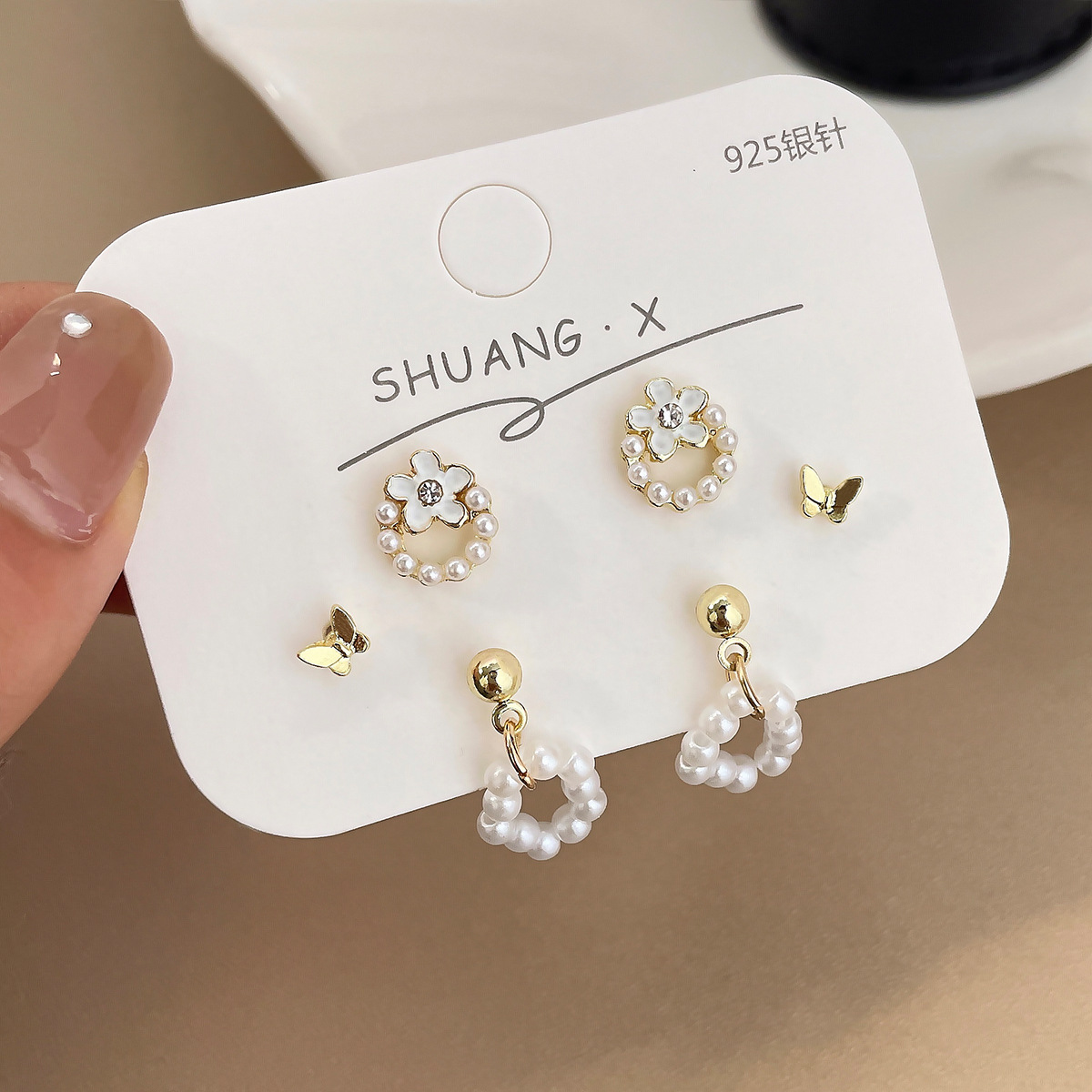 山茶花小香风耳钉套装银针高级感花朵耳钉女精致蝴蝶义乌耳饰批发