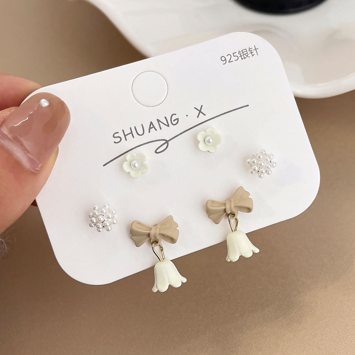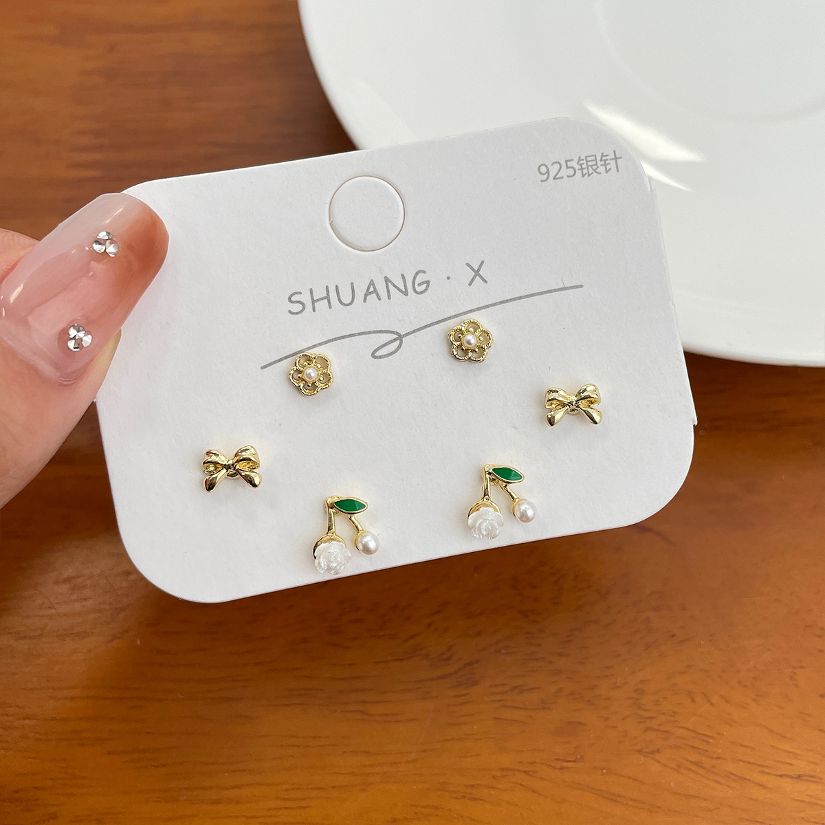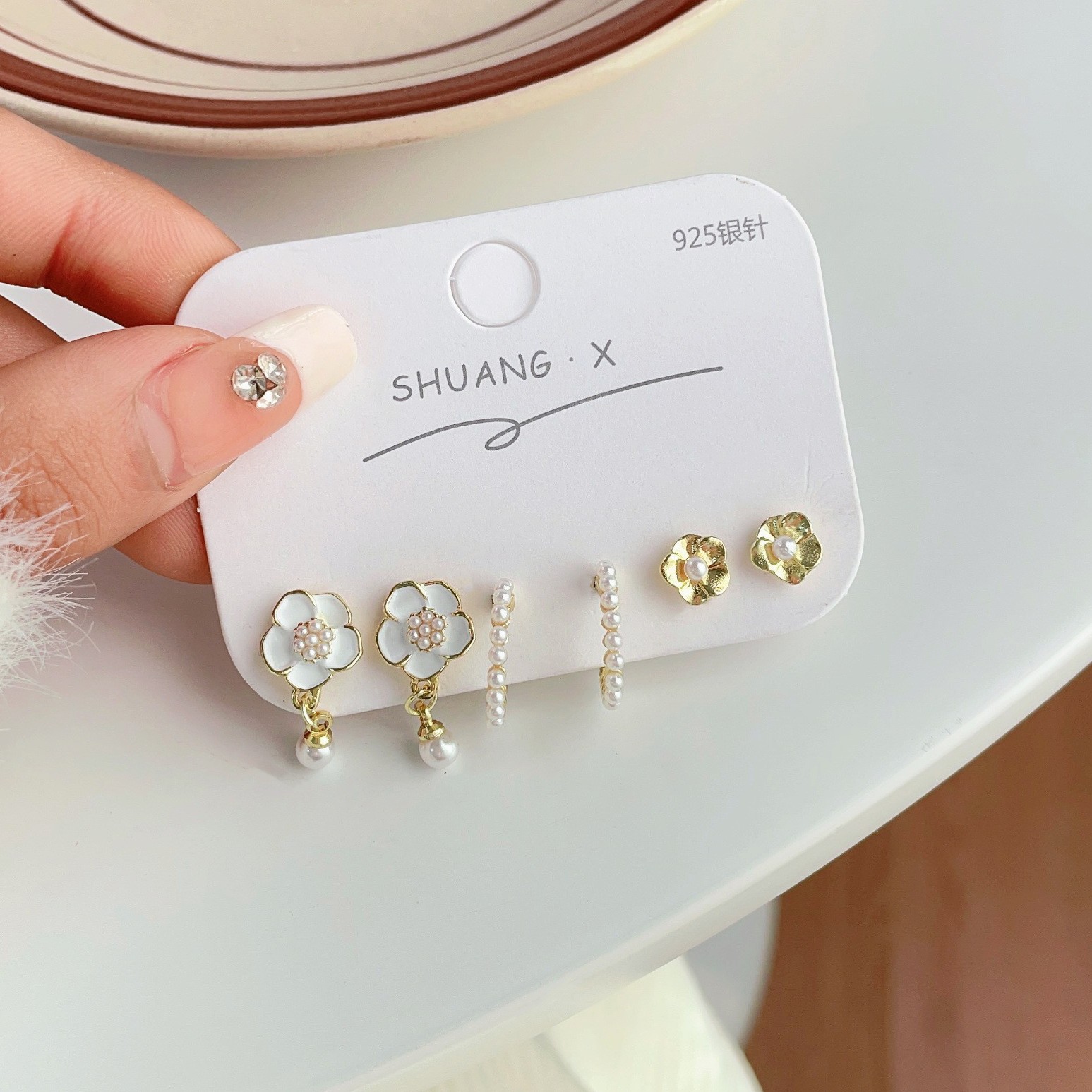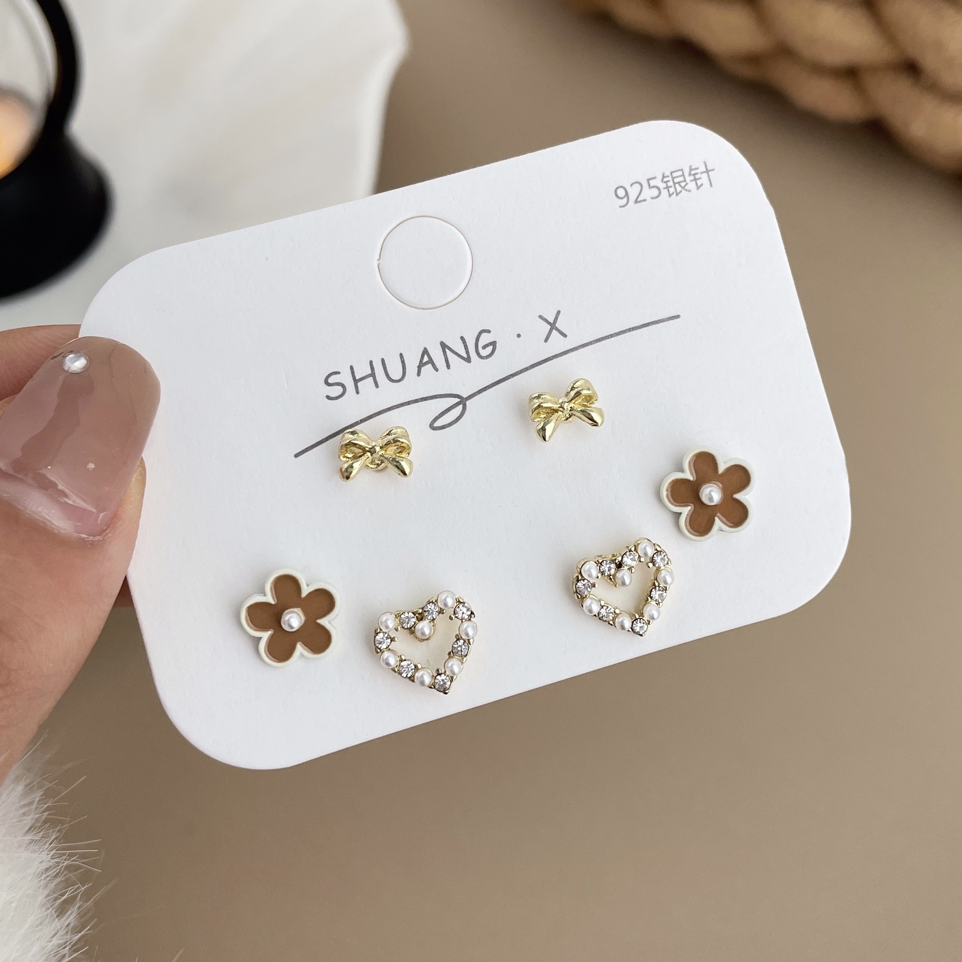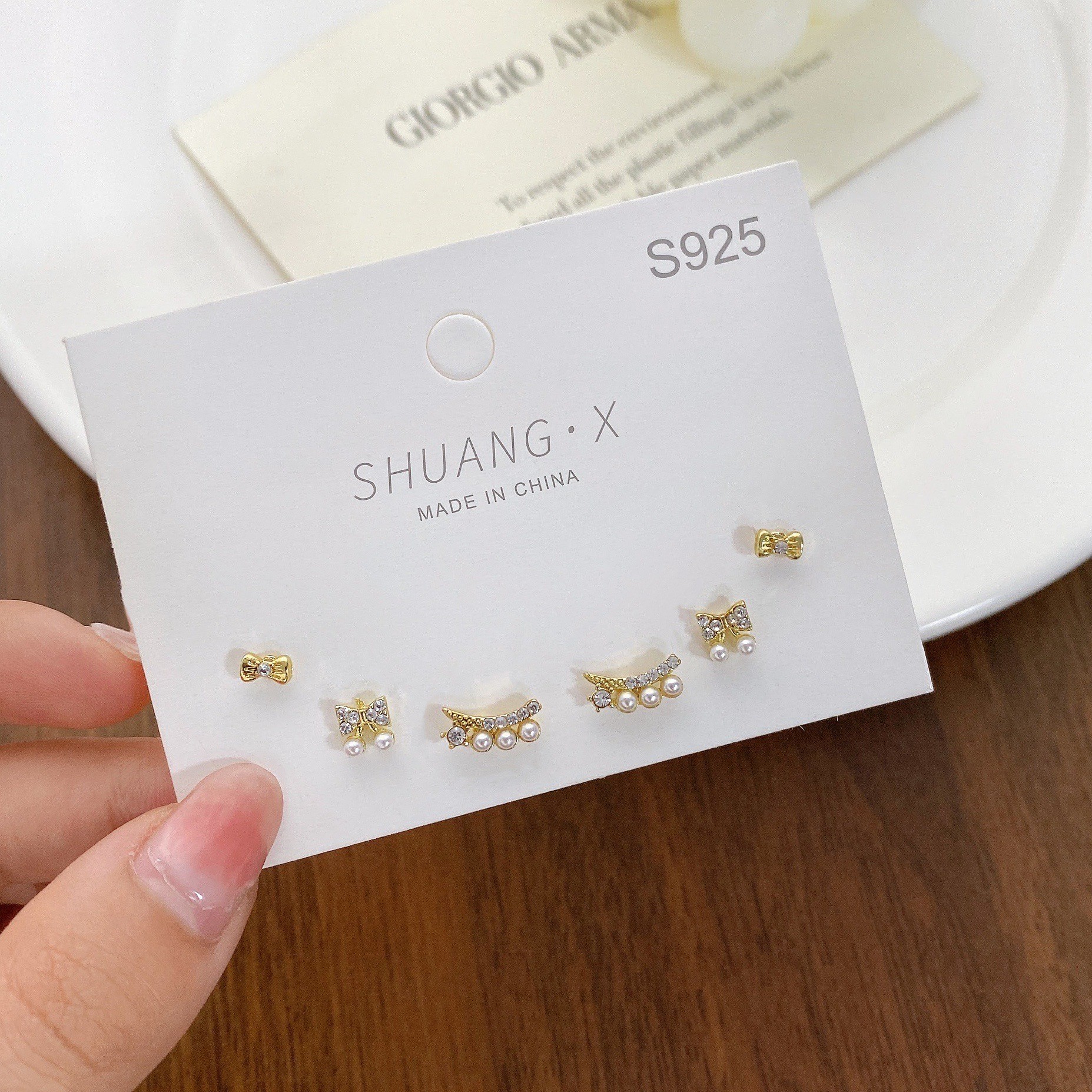 山茶花小香风耳钉套装银针高级感花朵耳钉女精致蝴蝶义乌耳饰批发