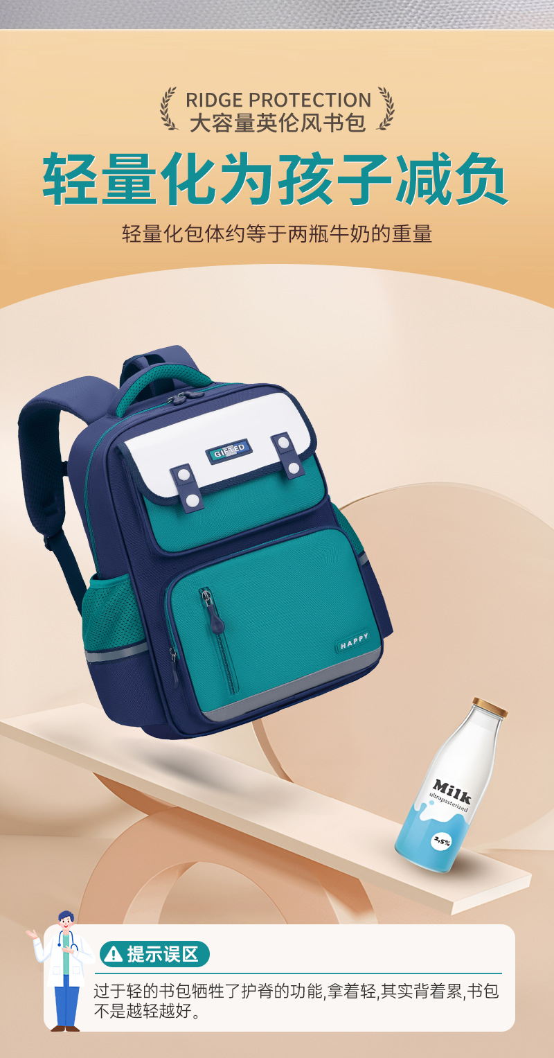 新款英伦书包减负小学生儿童补习培训logo捐赠防泼水双肩减负书包