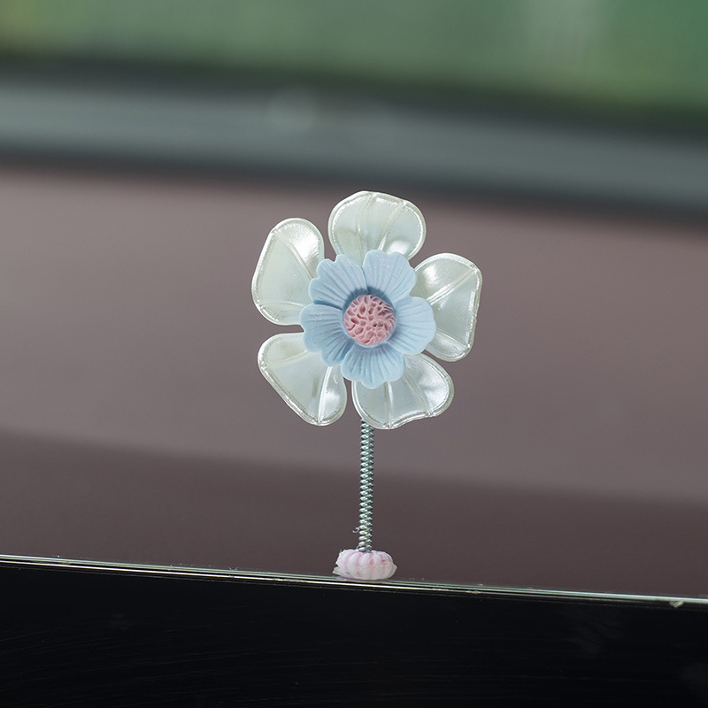 汽车摆件2023新款贝壳花车载中控台清新摇头可爱小花朵摆件装饰