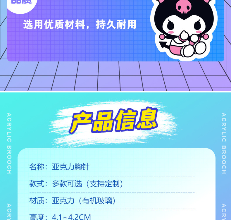 日系软萌可爱库洛米亚克力徽章ins卡通胸针批发包包diy配饰勋章女