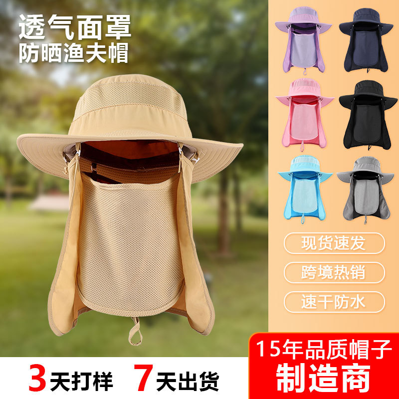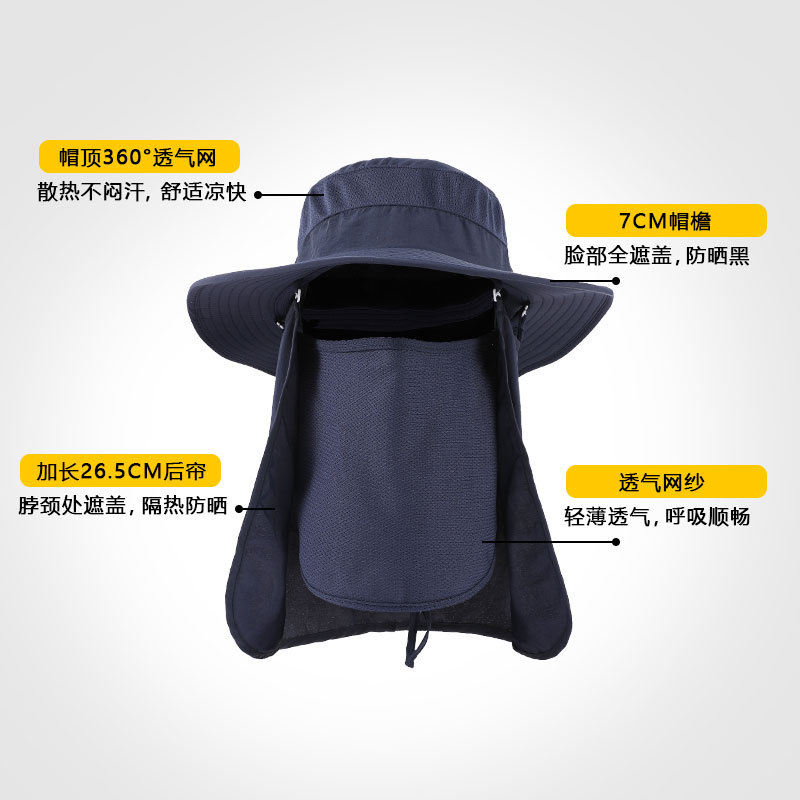 大帽檐渔夫帽子男女夏季户外防晒帽钓鱼遮阳帽防紫外线登山太阳帽