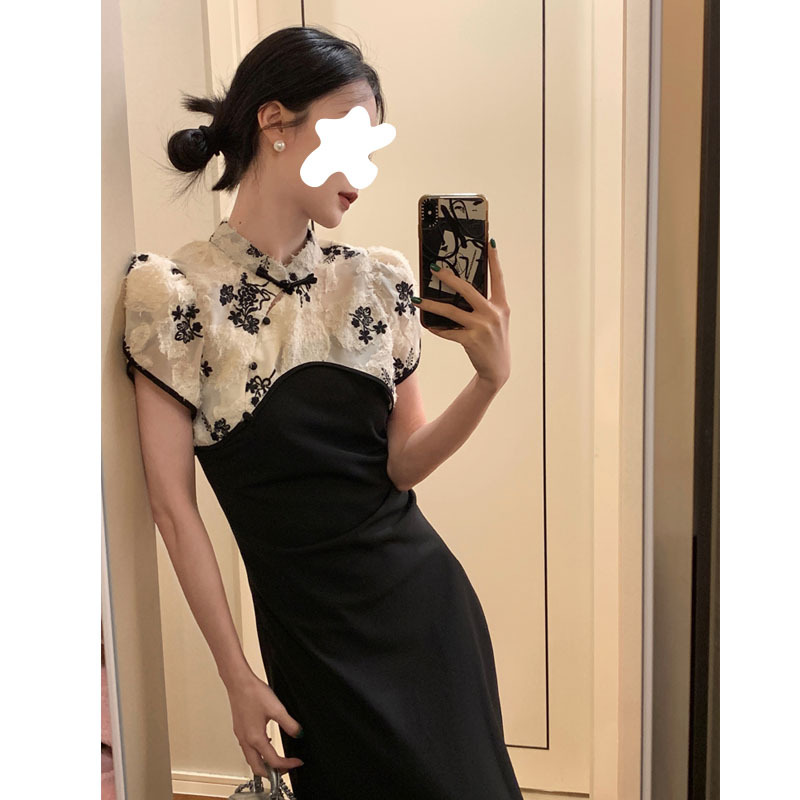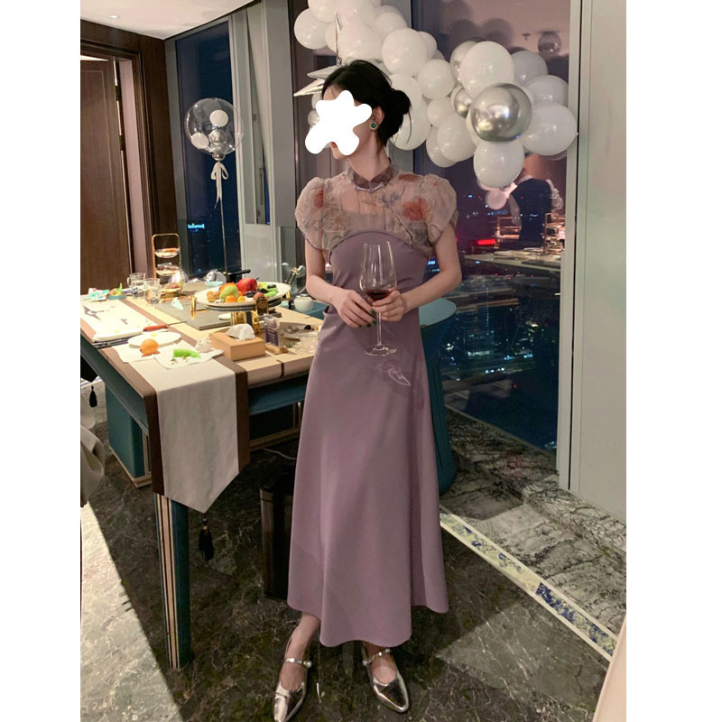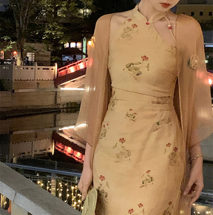 烟雨谣复古旗袍连衣裙女夏两件套新中式国风改良高腰吊带裙旗袍裙