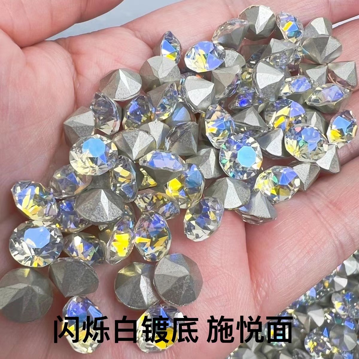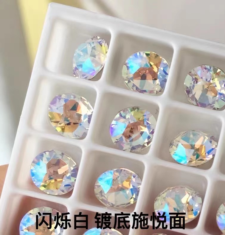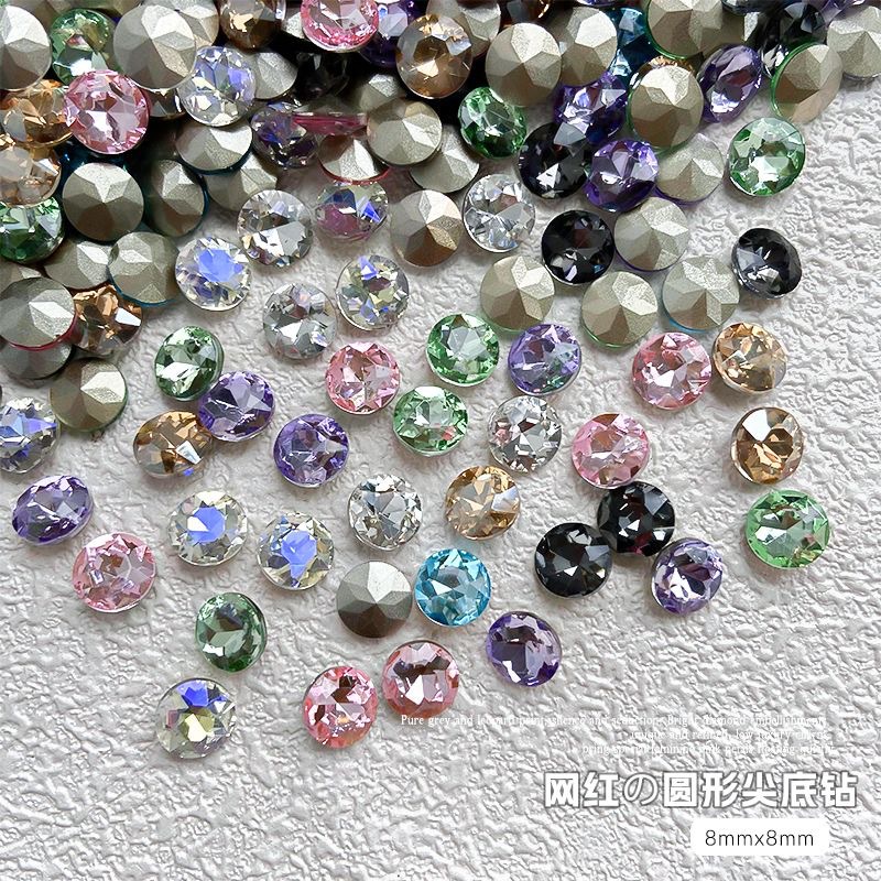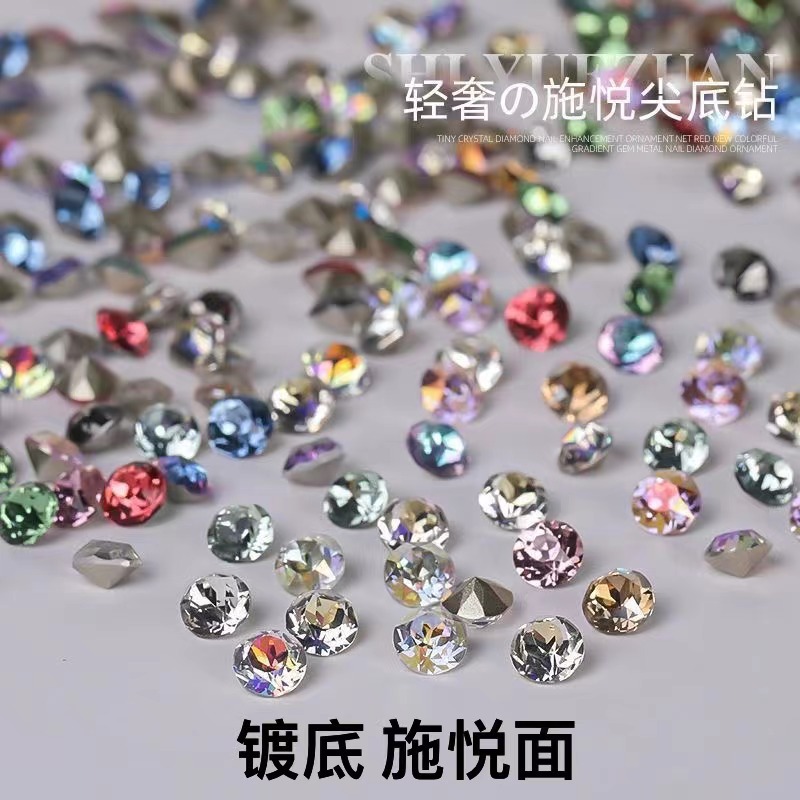 美甲钻华子切施悦面33切面尖底圆形钻彩色玻璃钻穿戴甲diy堆堆钻