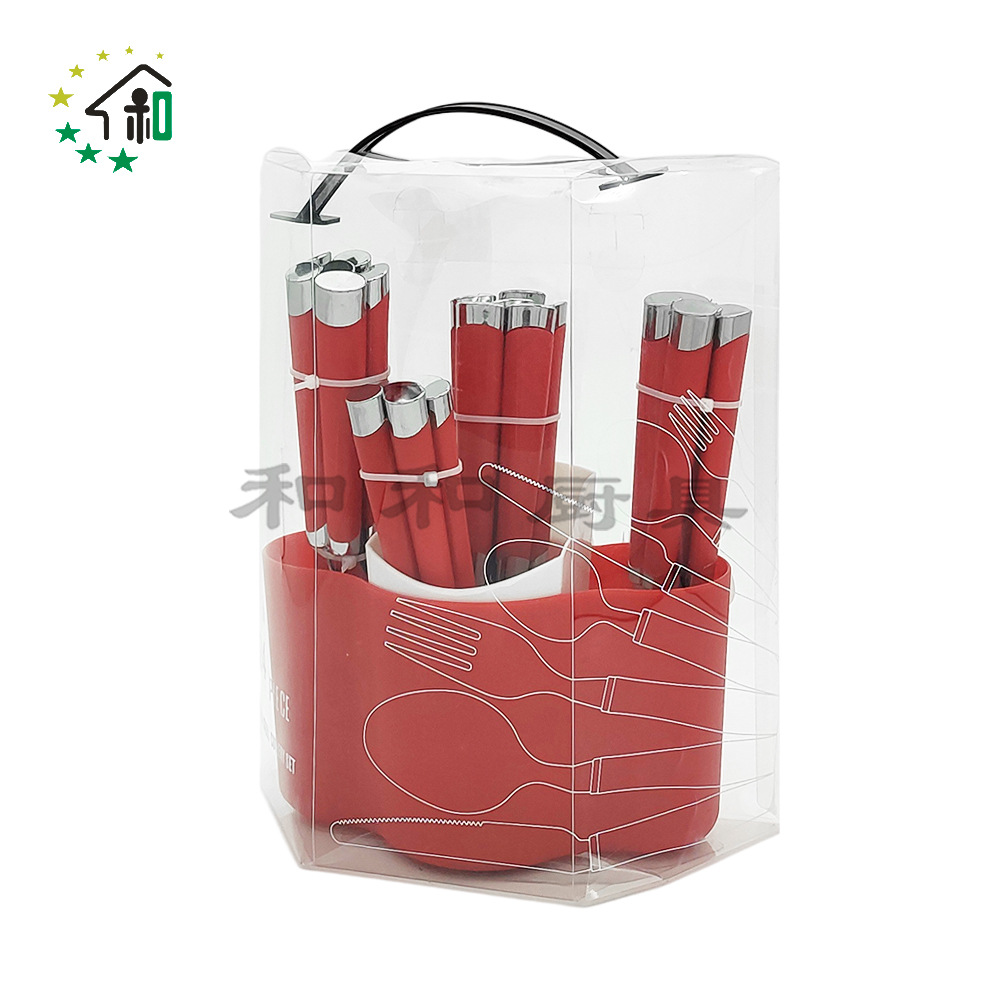 收纳桶塑料手柄西餐牛排餐具不锈钢刀叉勺子24件套装 cutlery set