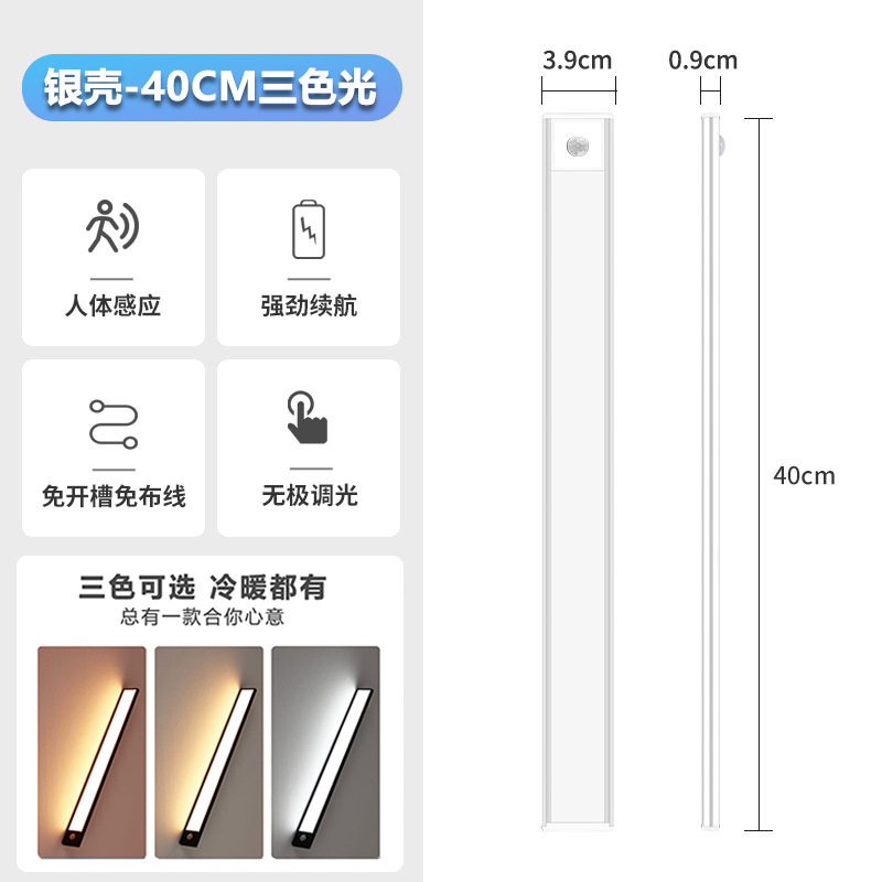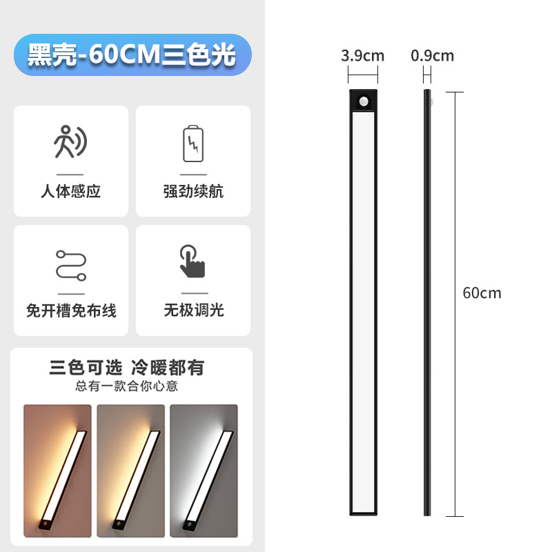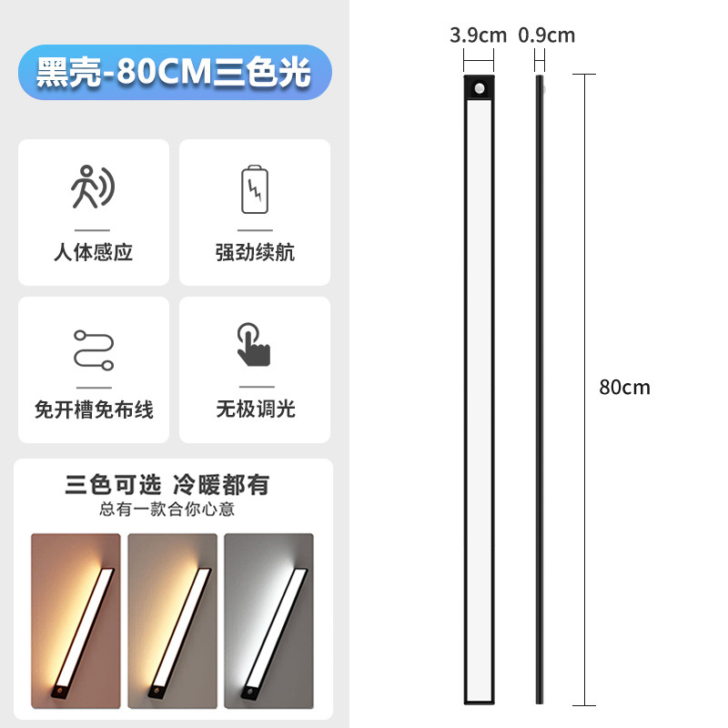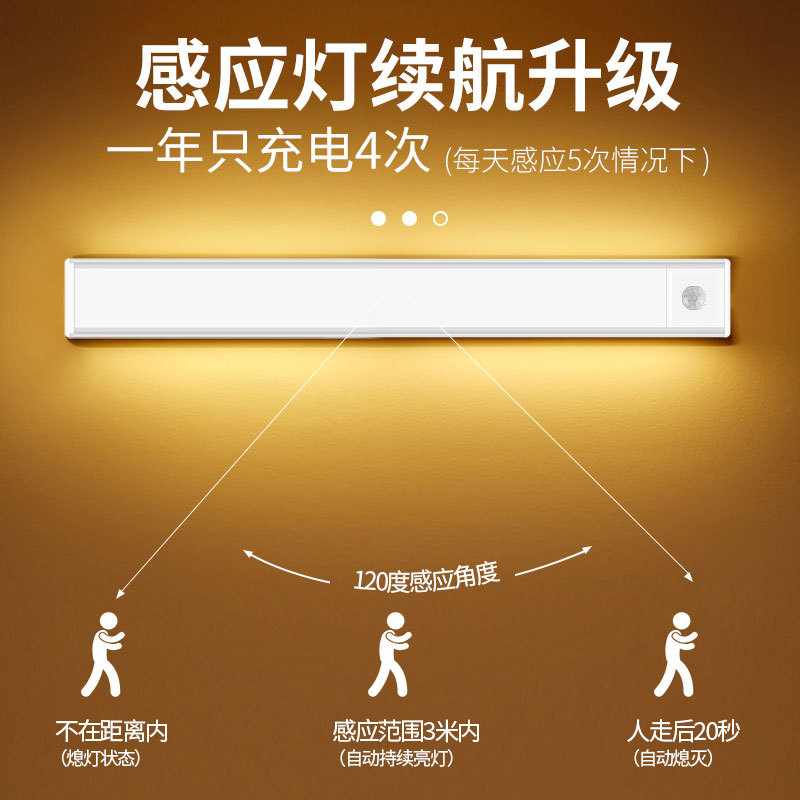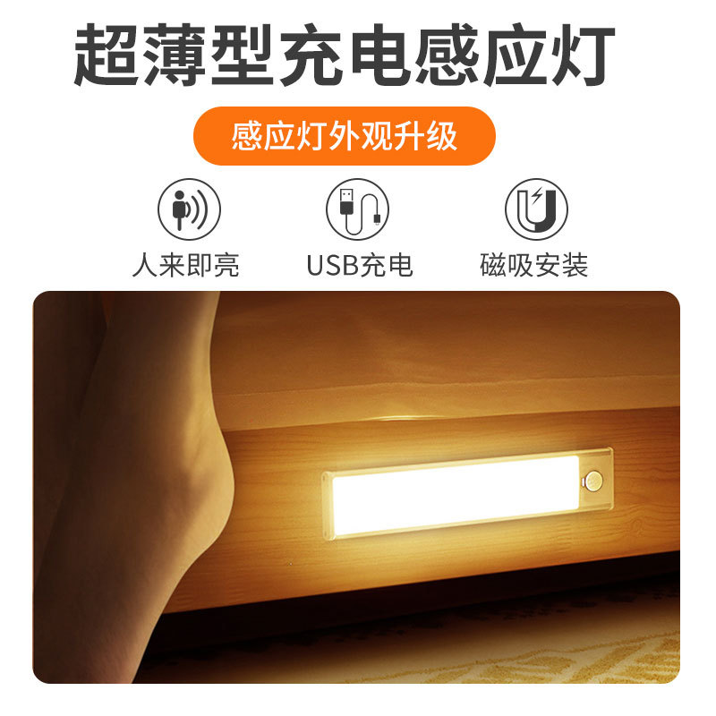 led长条人体感应小夜灯usb充电智能超薄款光控衣柜卧室睡眠床头灯