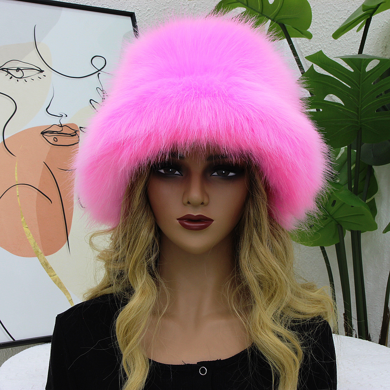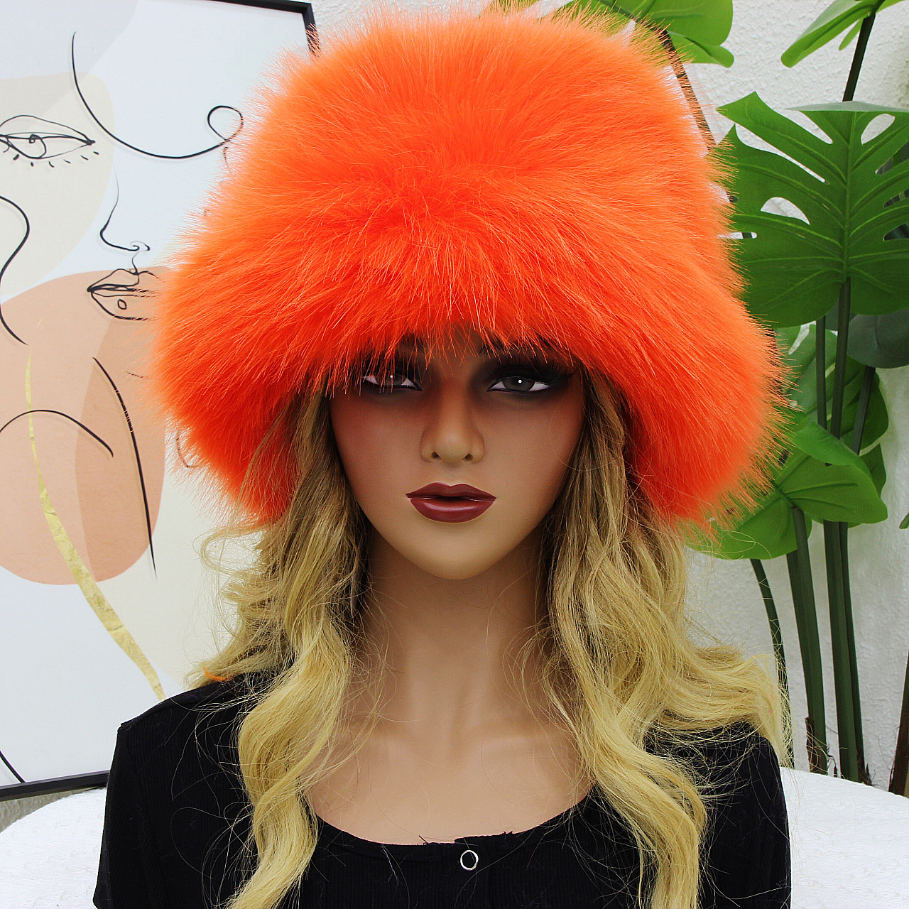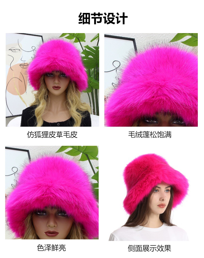 跨境欧美保暖渔夫帽女秋冬宽檐加厚仿皮草狐狸毛盆帽纯色毛绒帽子