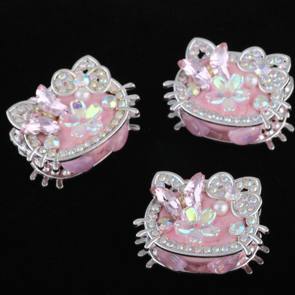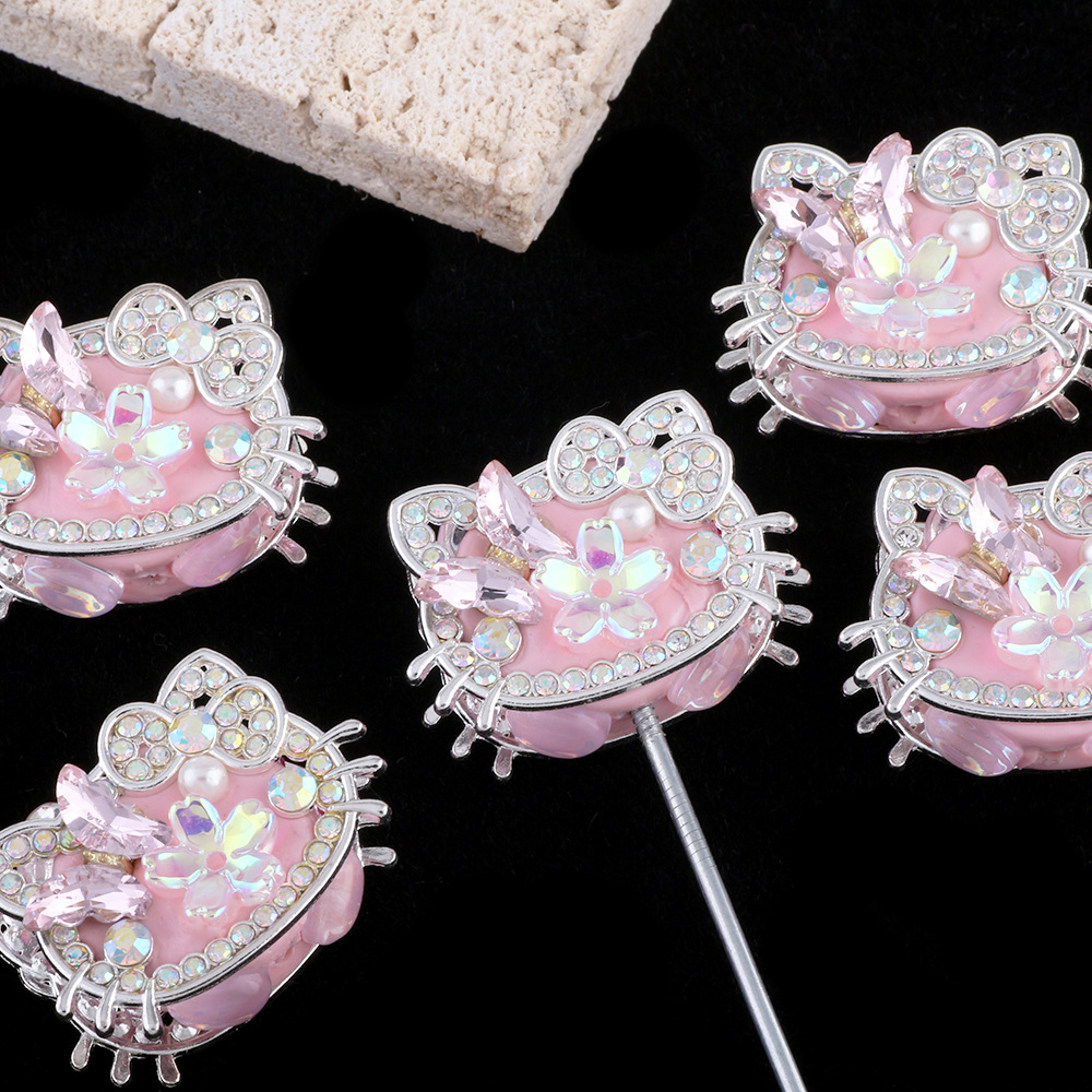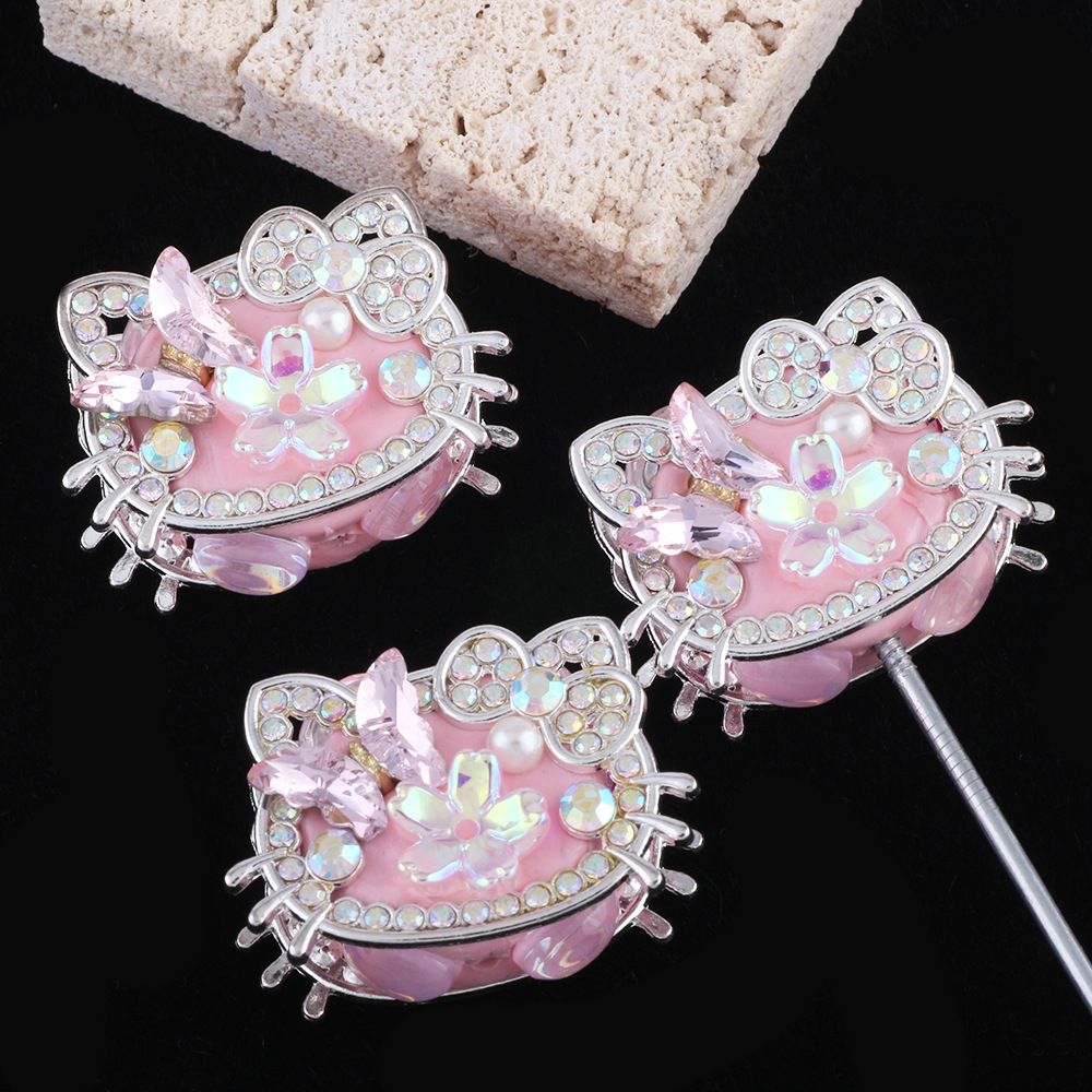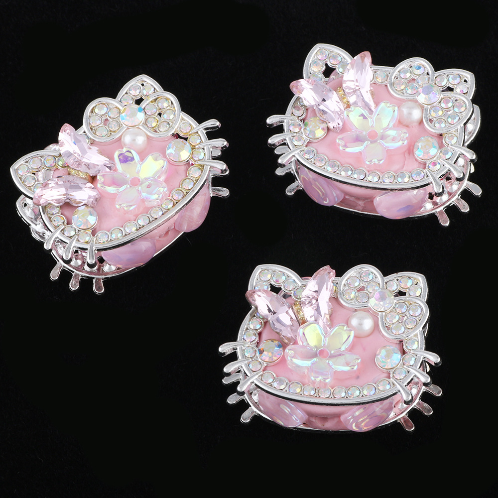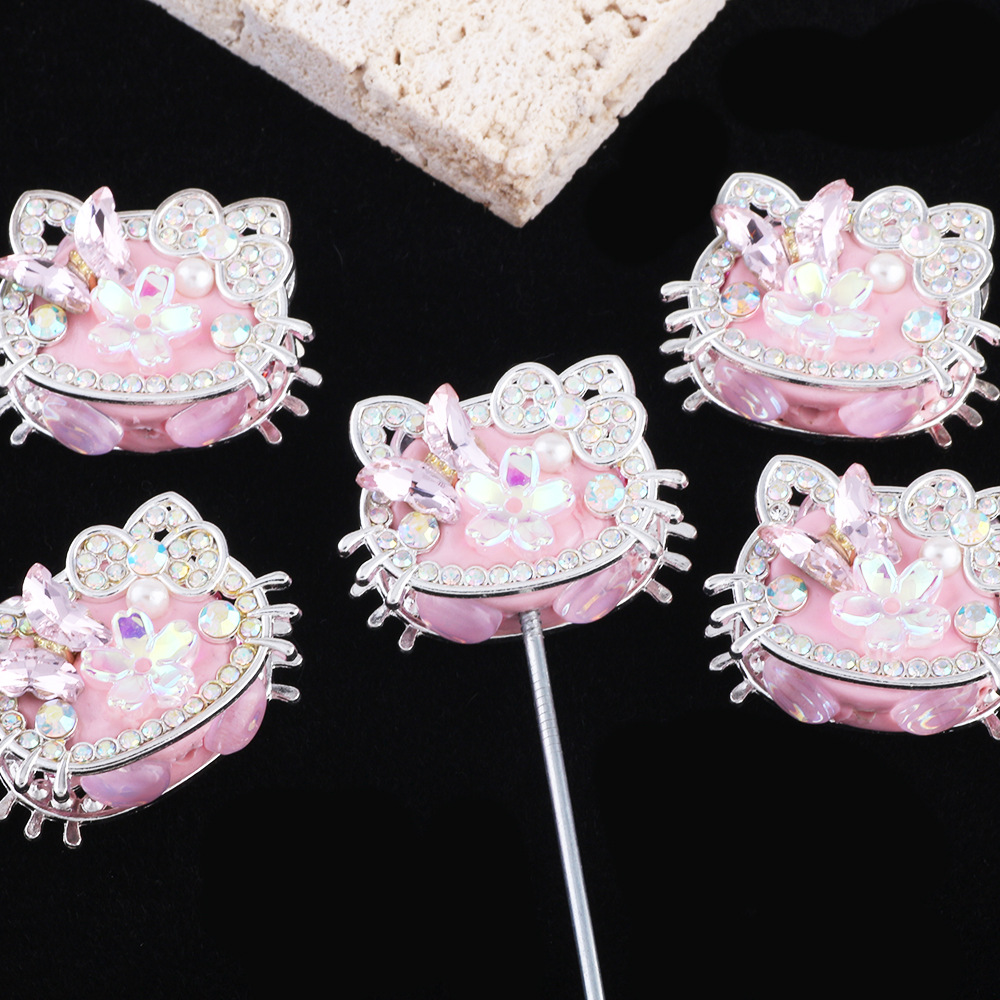 跨境热卖重工粉色花朵蝴蝶Kitty钻球直孔珠DIY手机钥匙扣项链配件