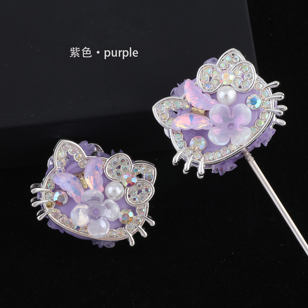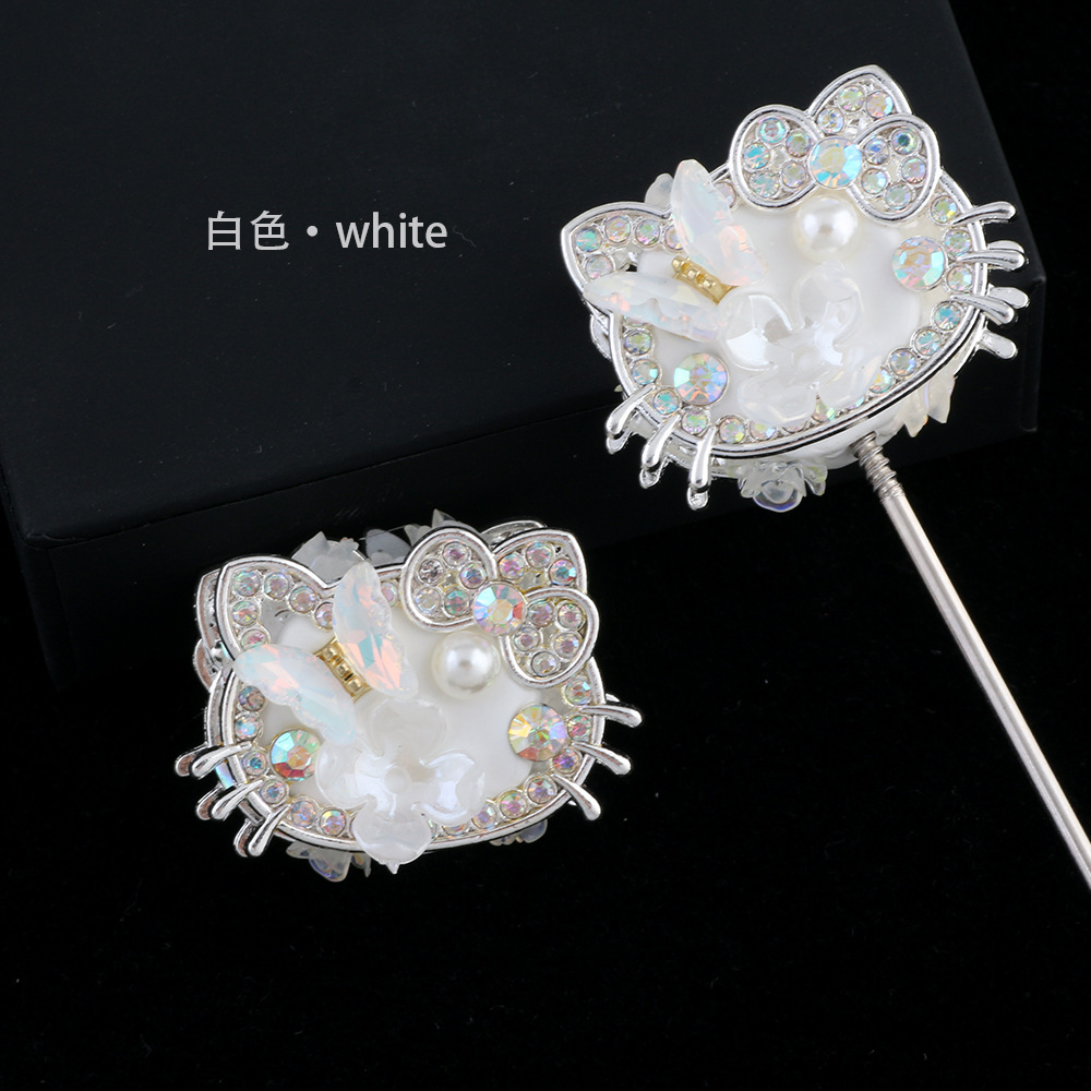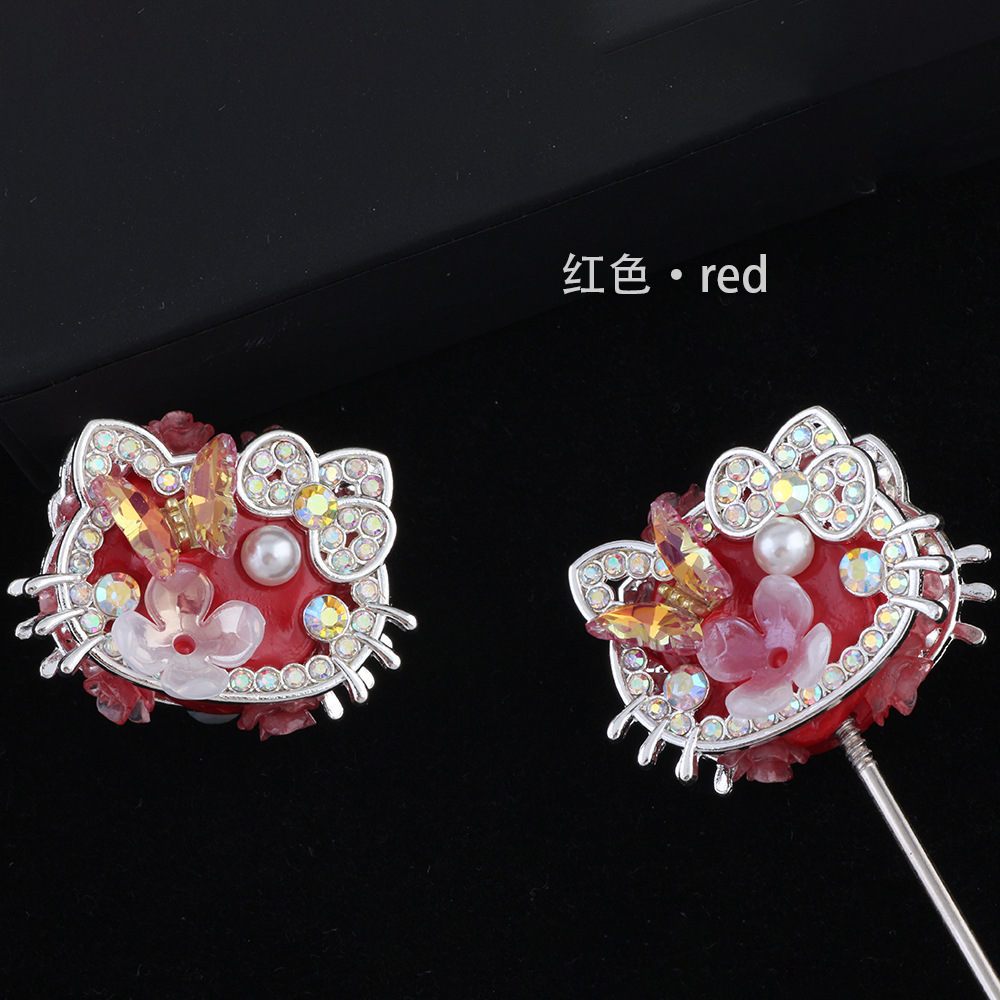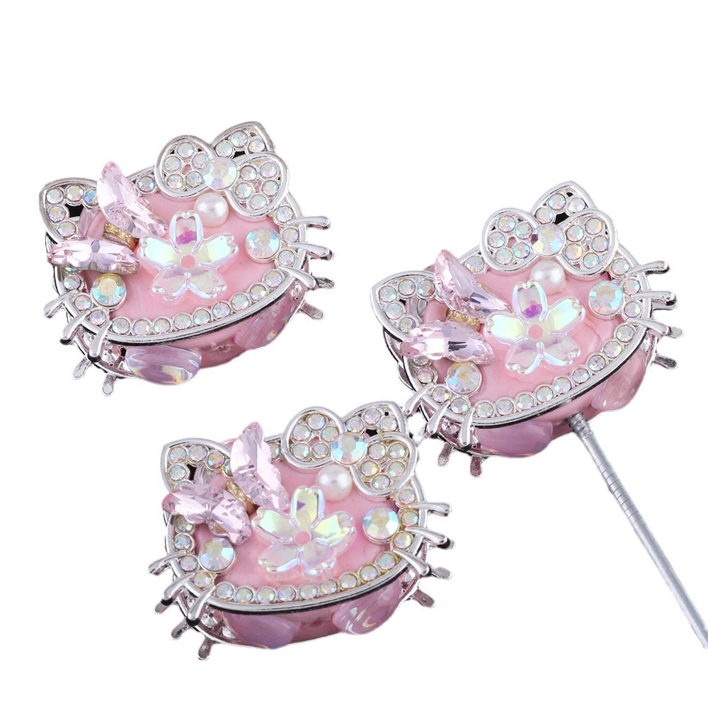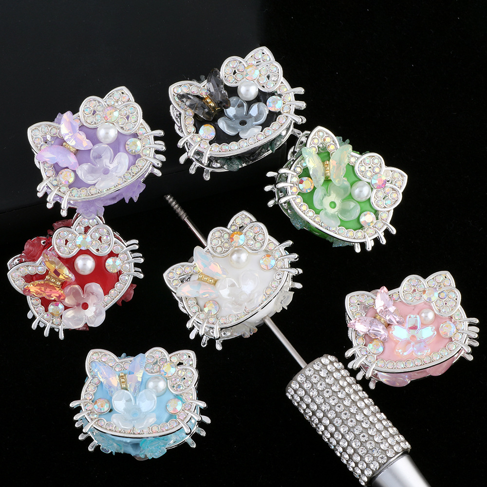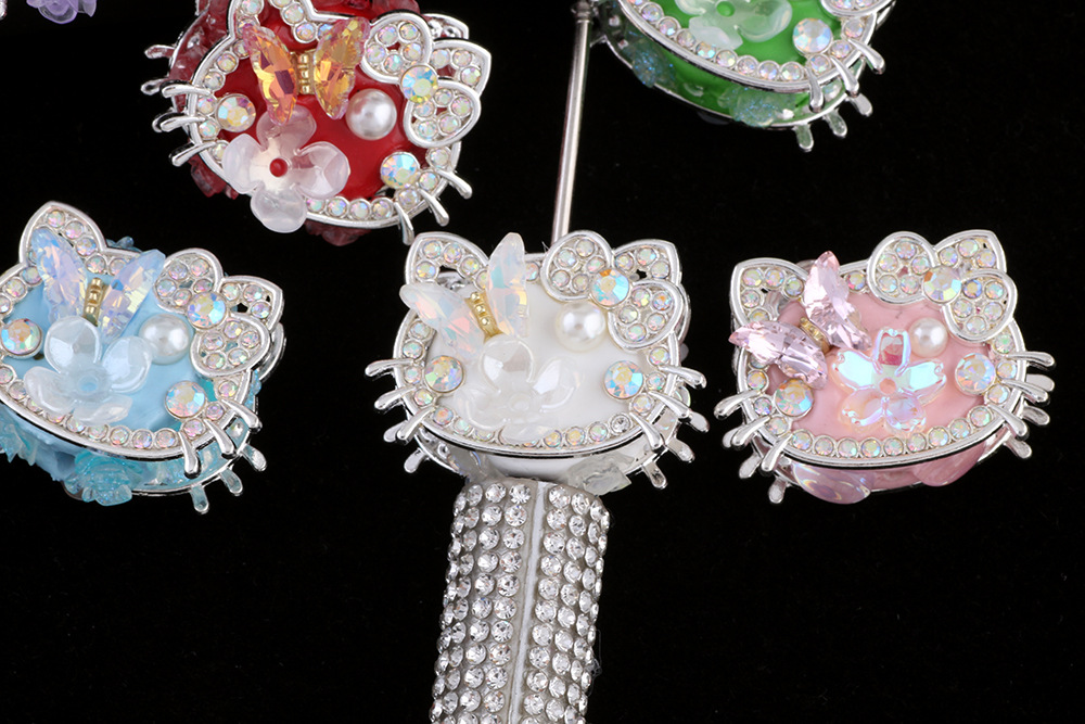 跨境热卖重工粉色花朵蝴蝶Kitty钻球直孔珠DIY手机钥匙扣项链配件