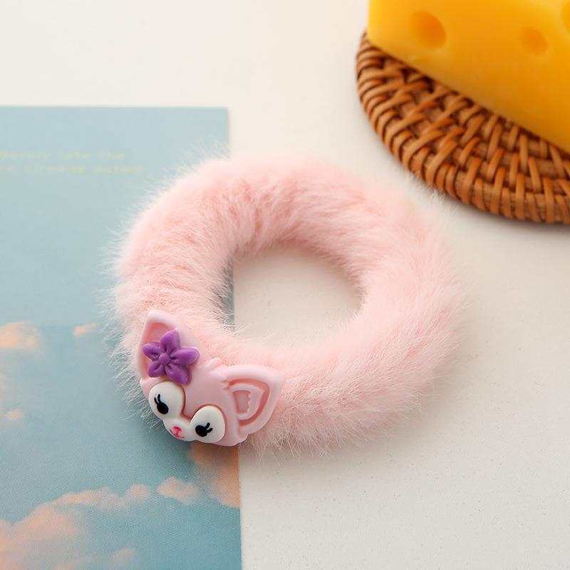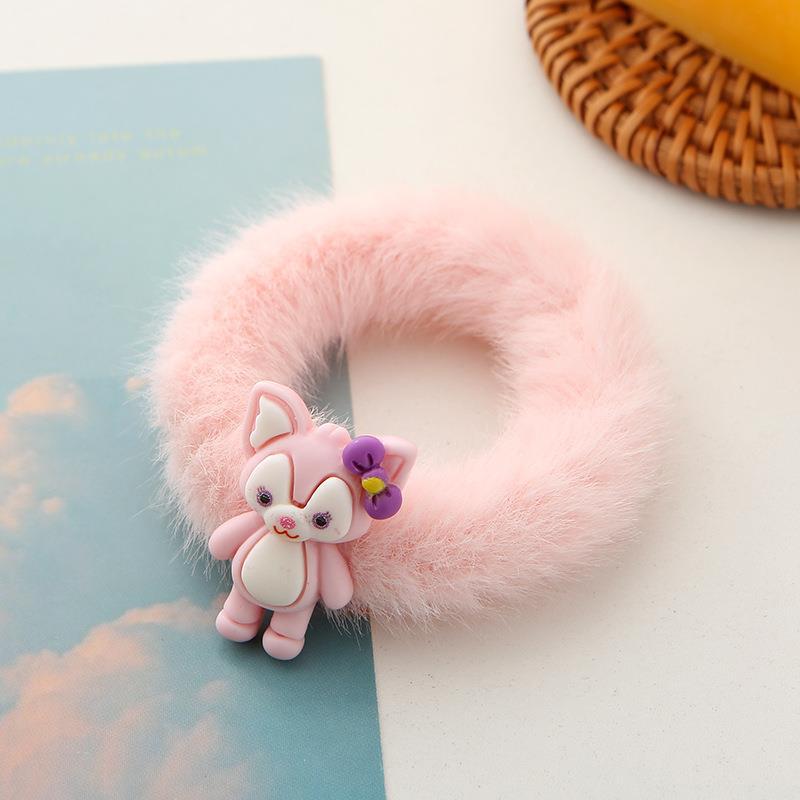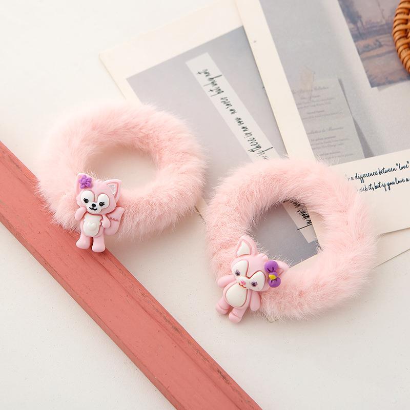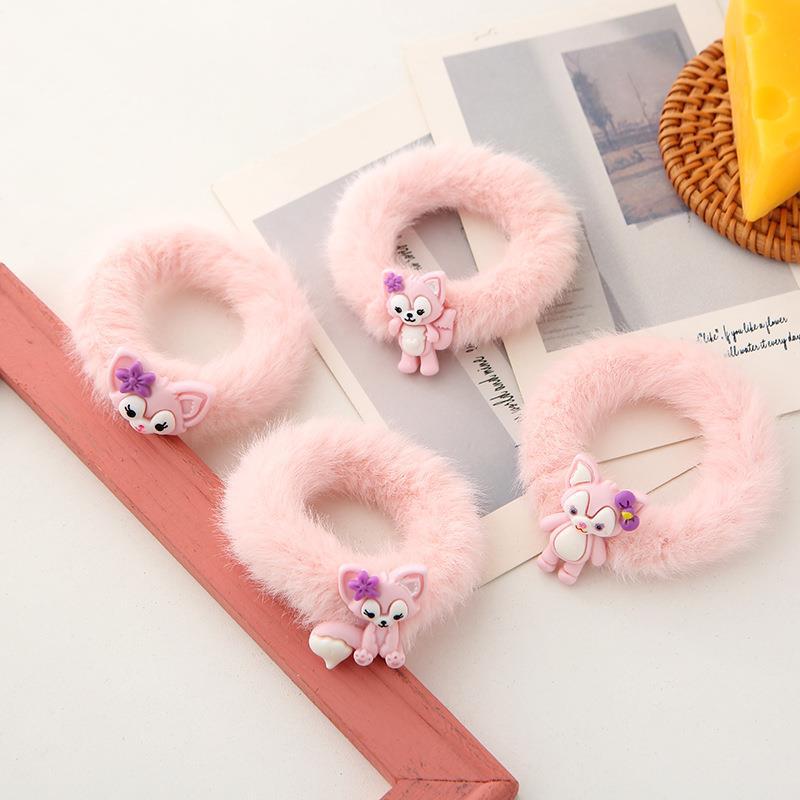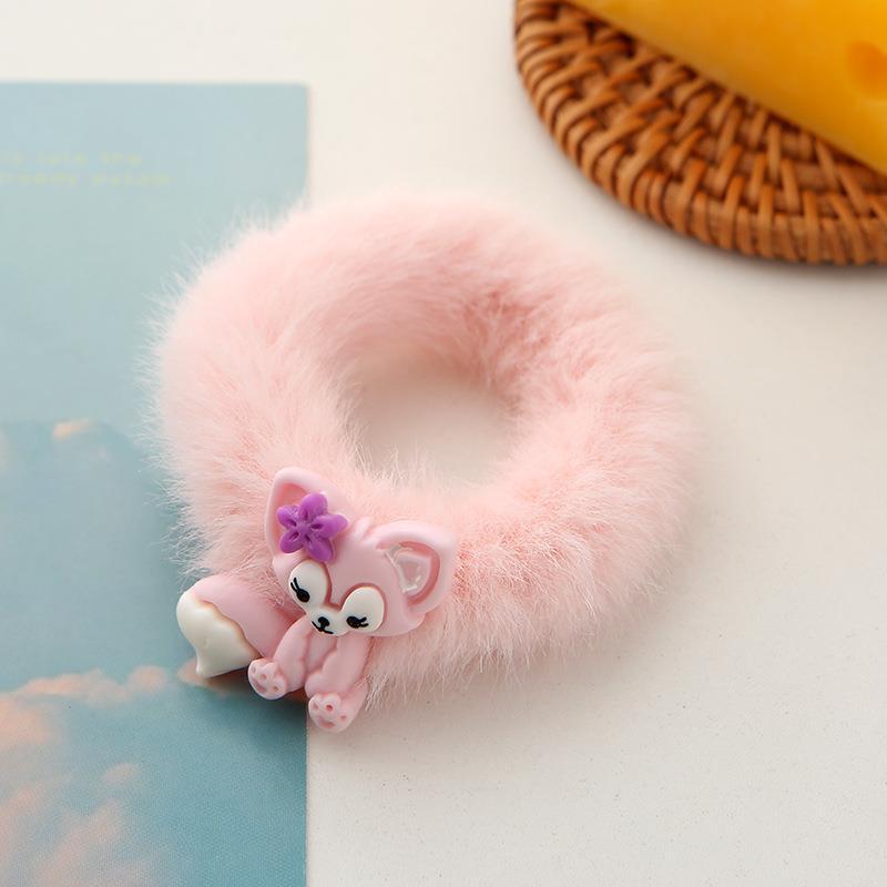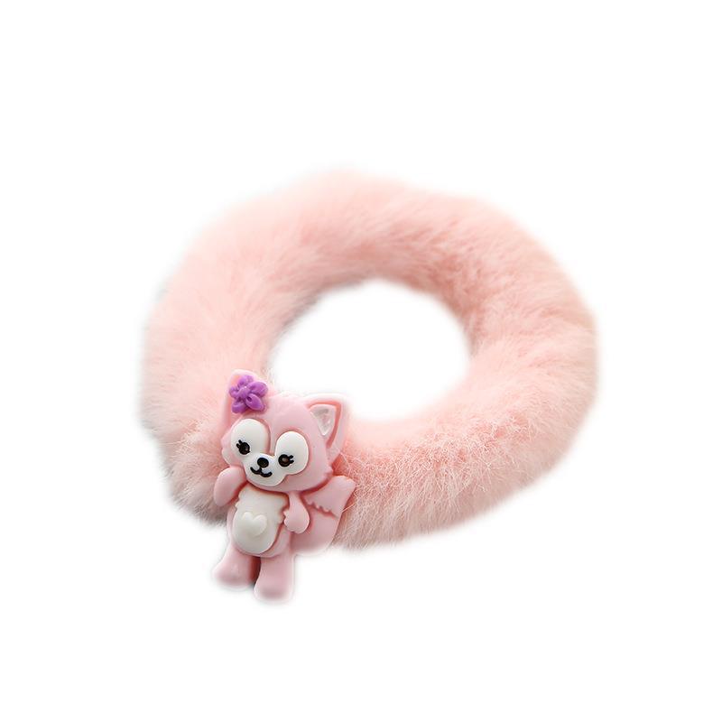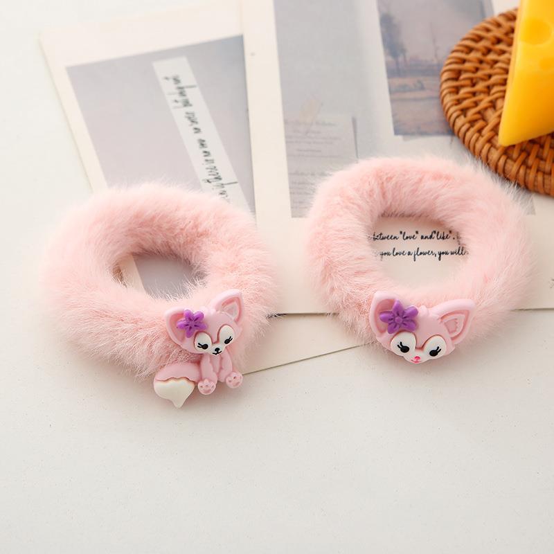 可爱卡通毛绒发圈韩版发绳扎头皮筋女粉色狐狸丸子头发饰毛毛头绳