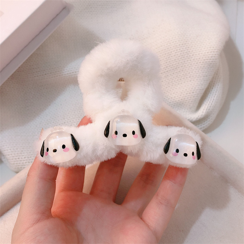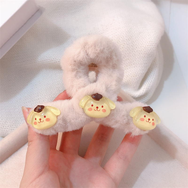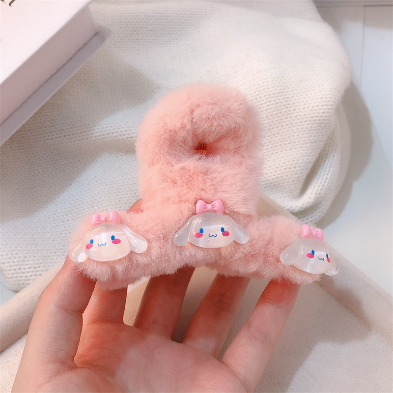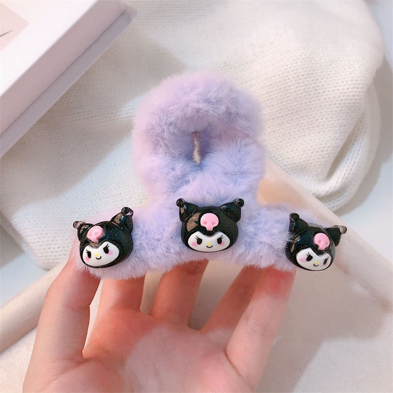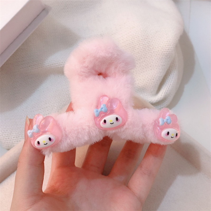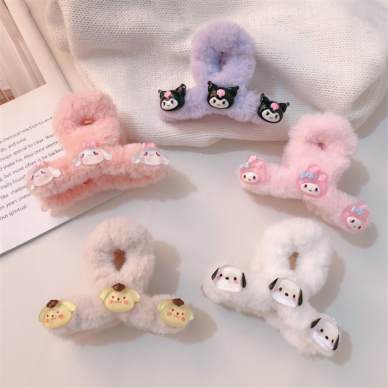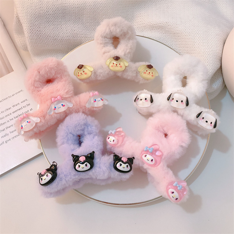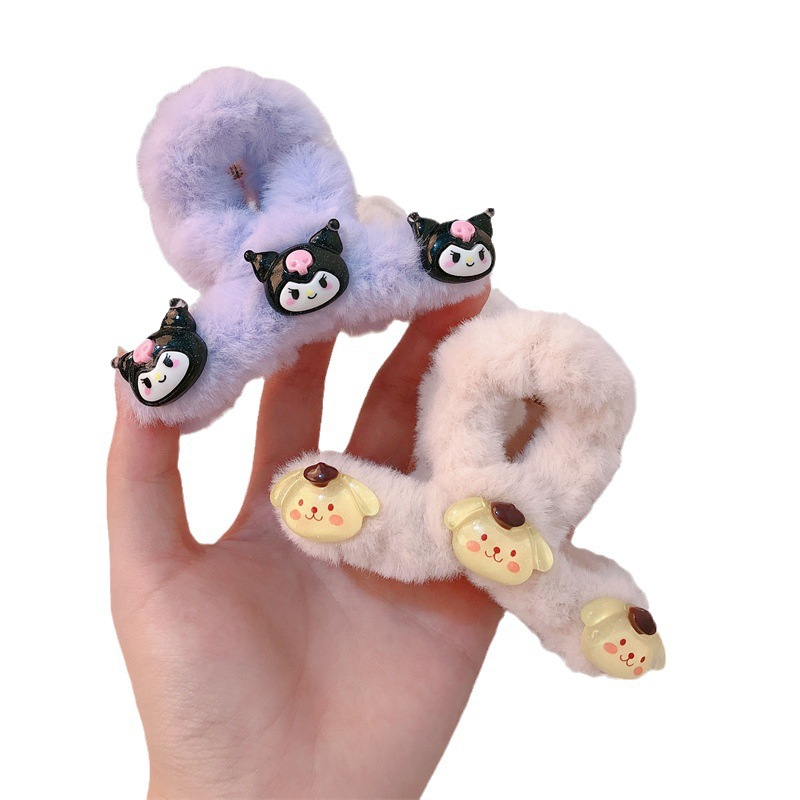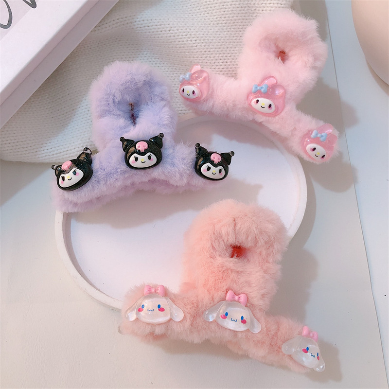 秋冬可爱三丽鸥毛绒抓夹少女后脑勺发抓外出盘发鲨鱼夹毛毛发饰女