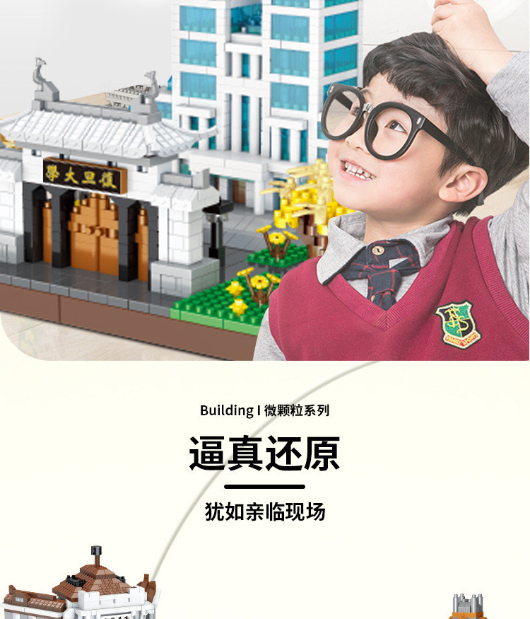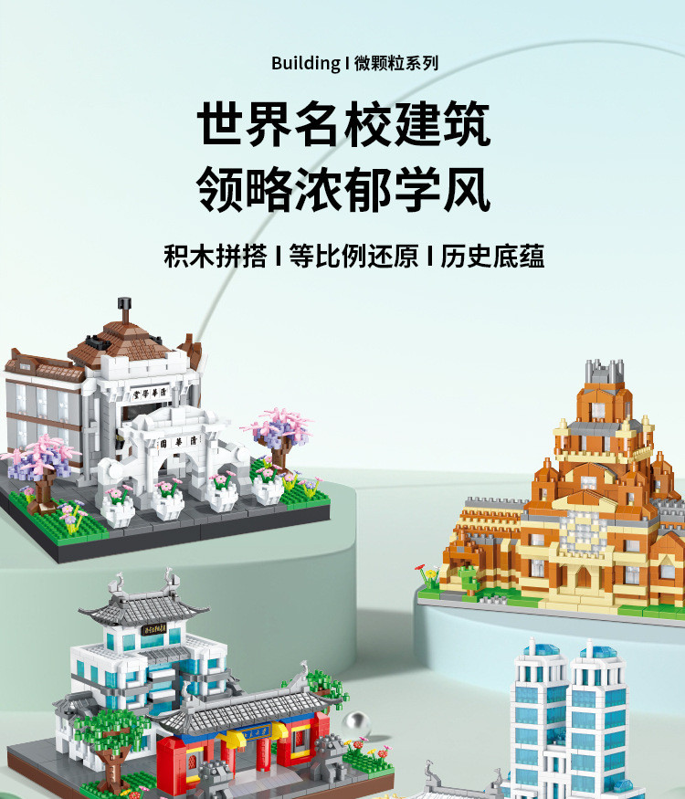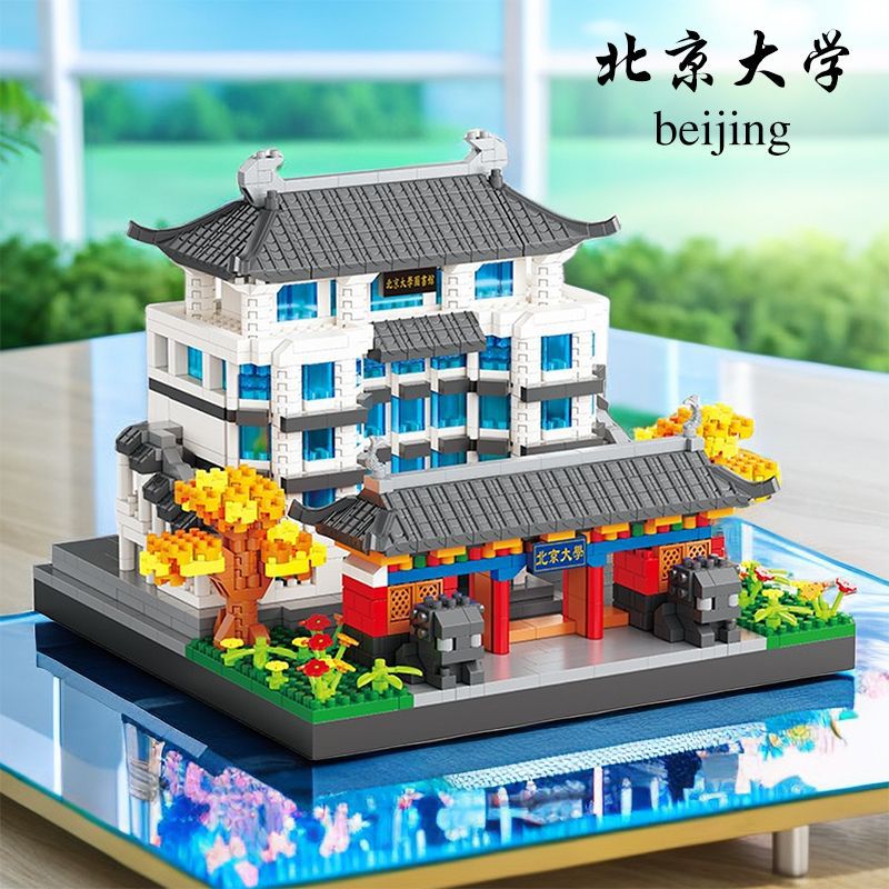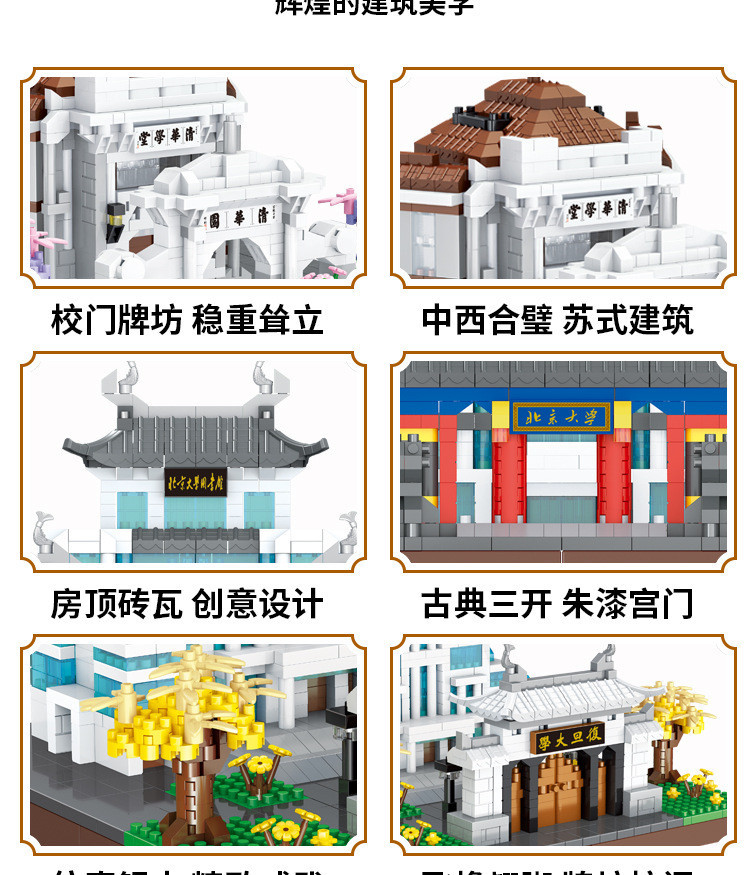 中国名校积木北京清华大学生纪念品建筑模型摆件手工拼装益智玩具