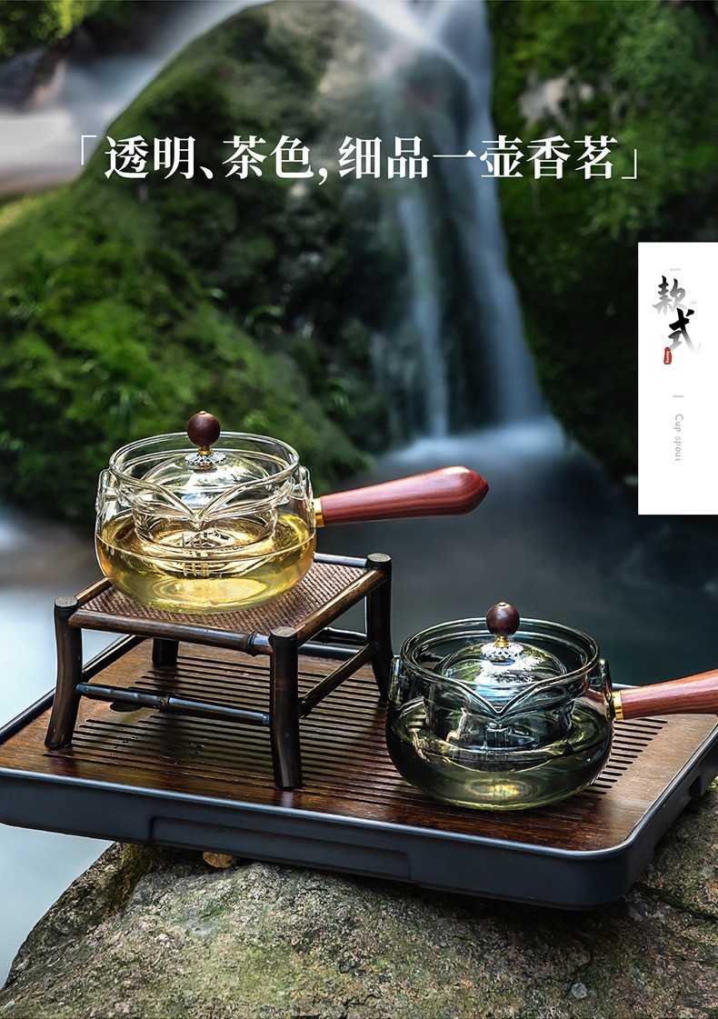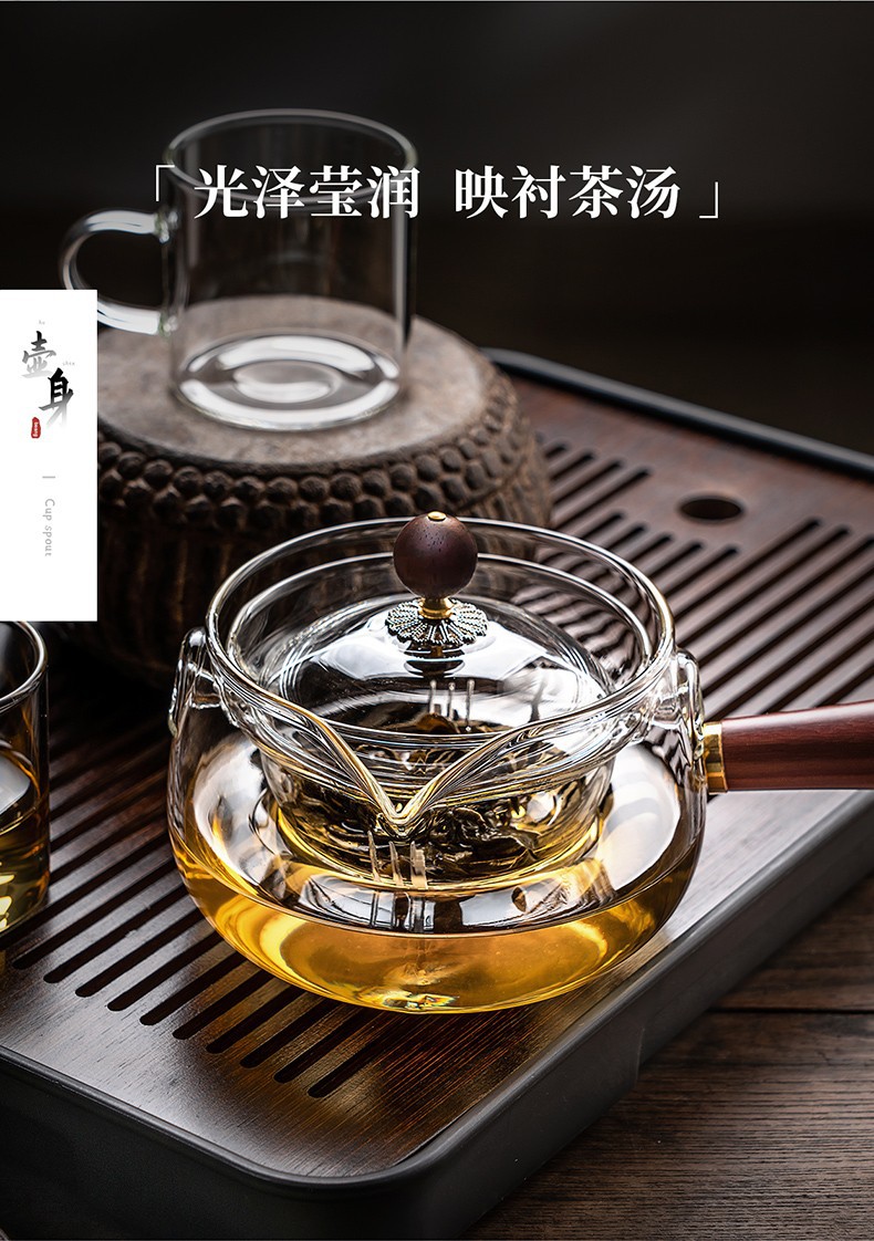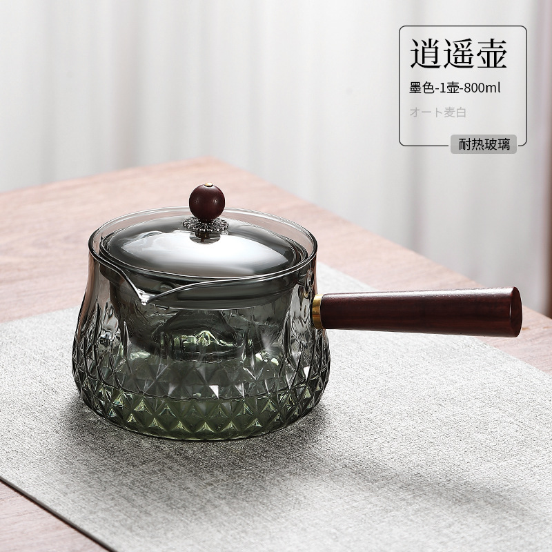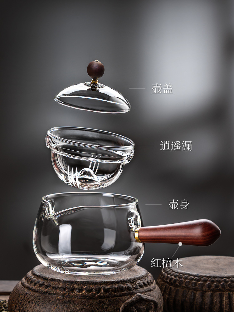 side handle xiaoyao pot household high temperature resistant glass teapot single teapot rotating citrus tea tea making teaware suit tea brewing pot