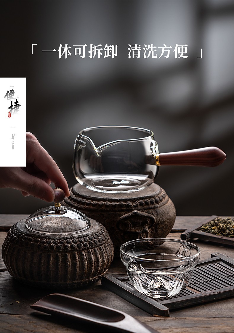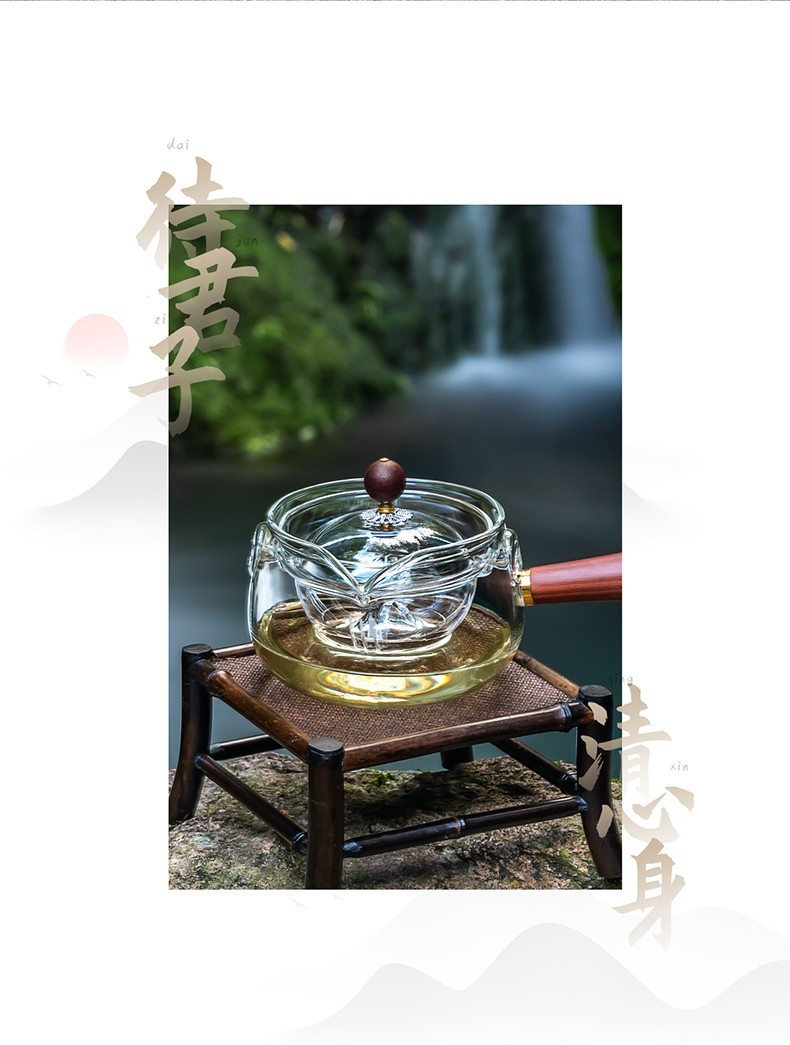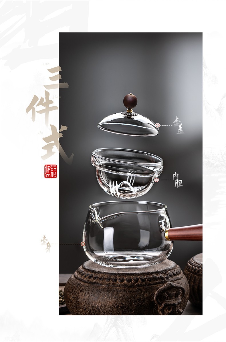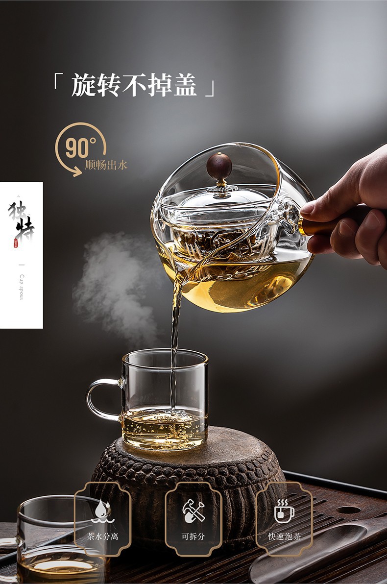 side handle xiaoyao pot household high temperature resistant glass teapot single teapot rotating citrus tea tea making teaware suit tea brewing pot