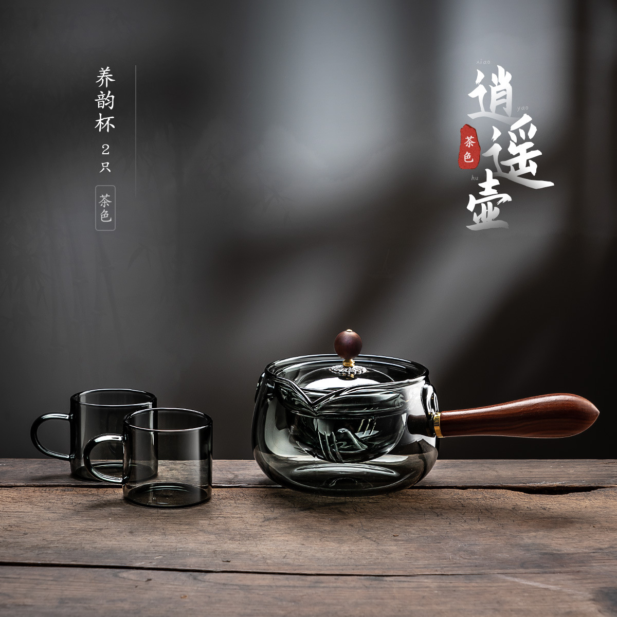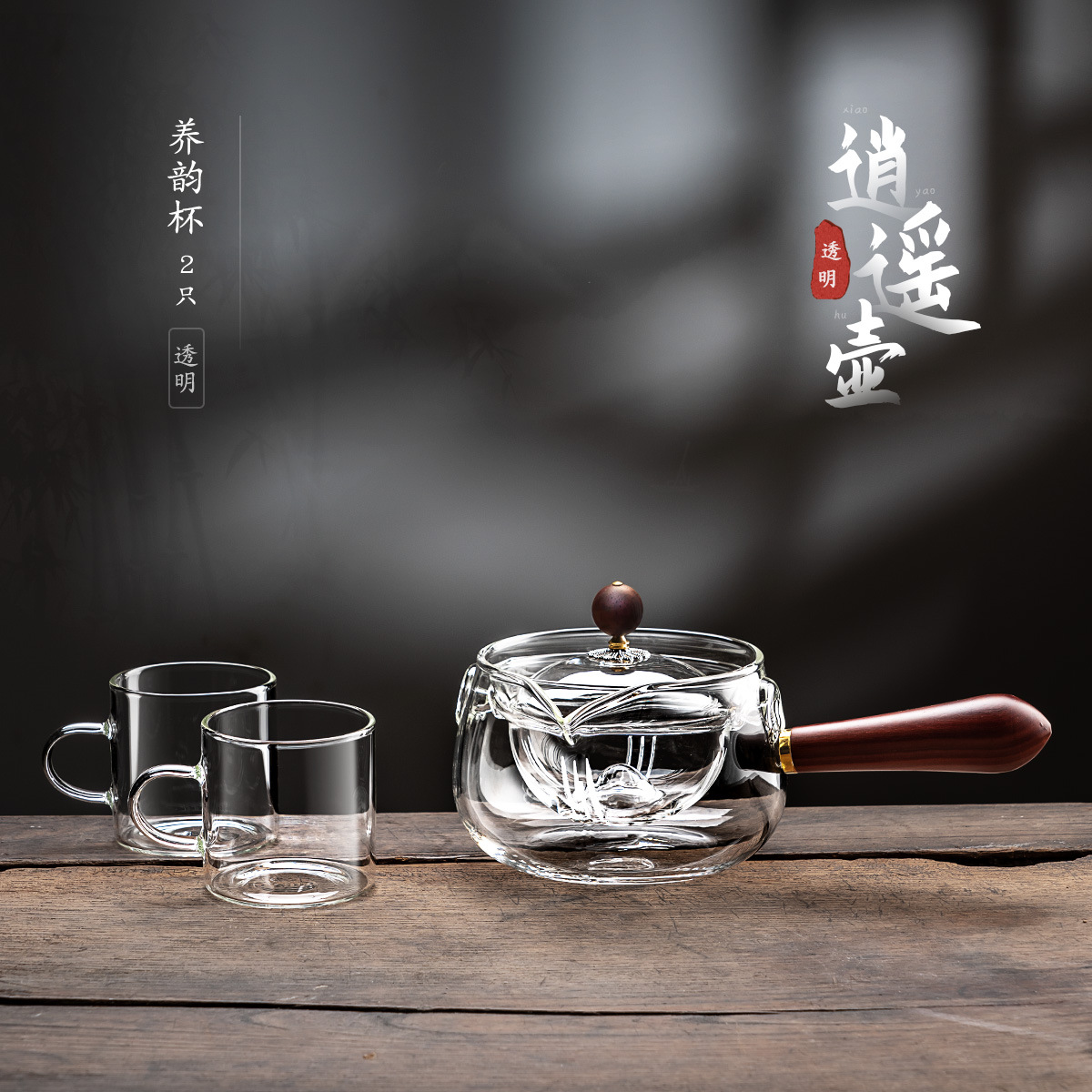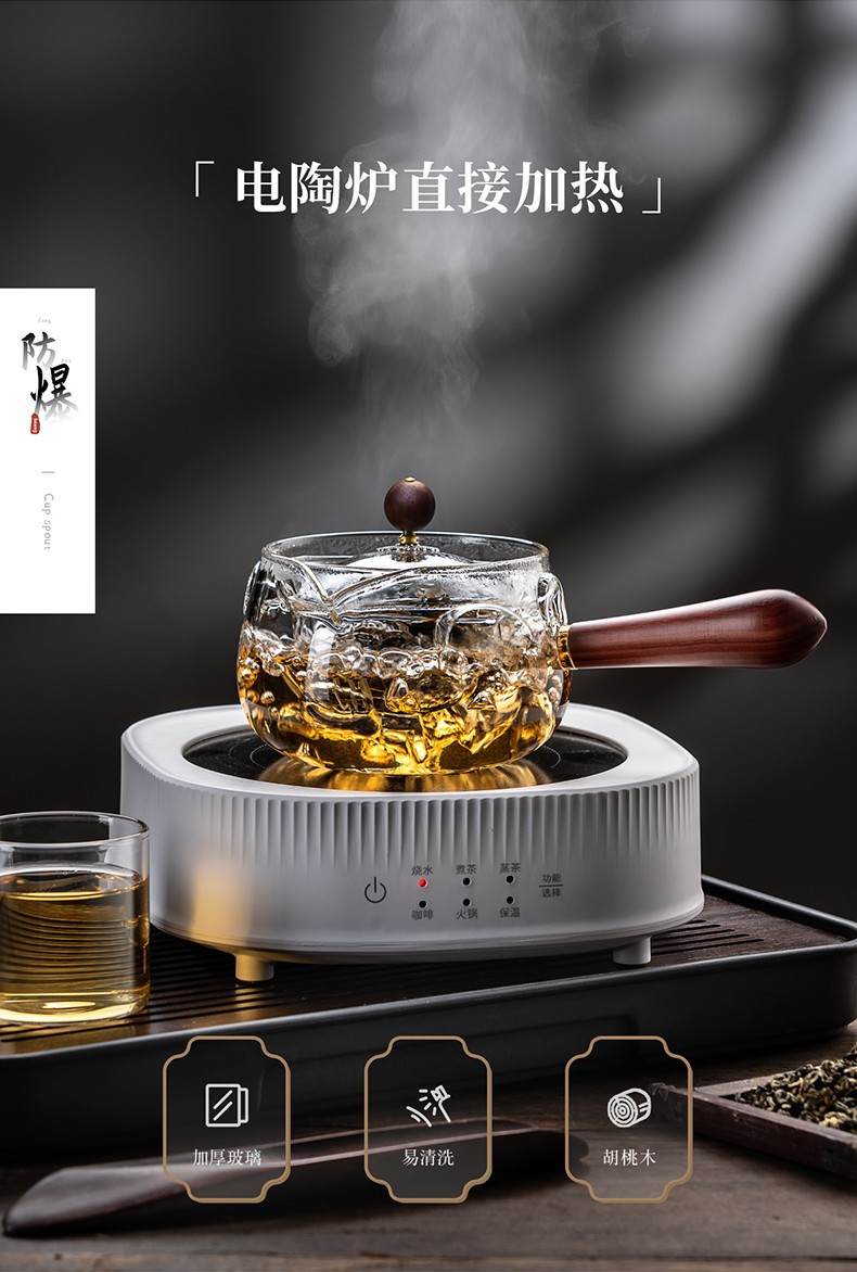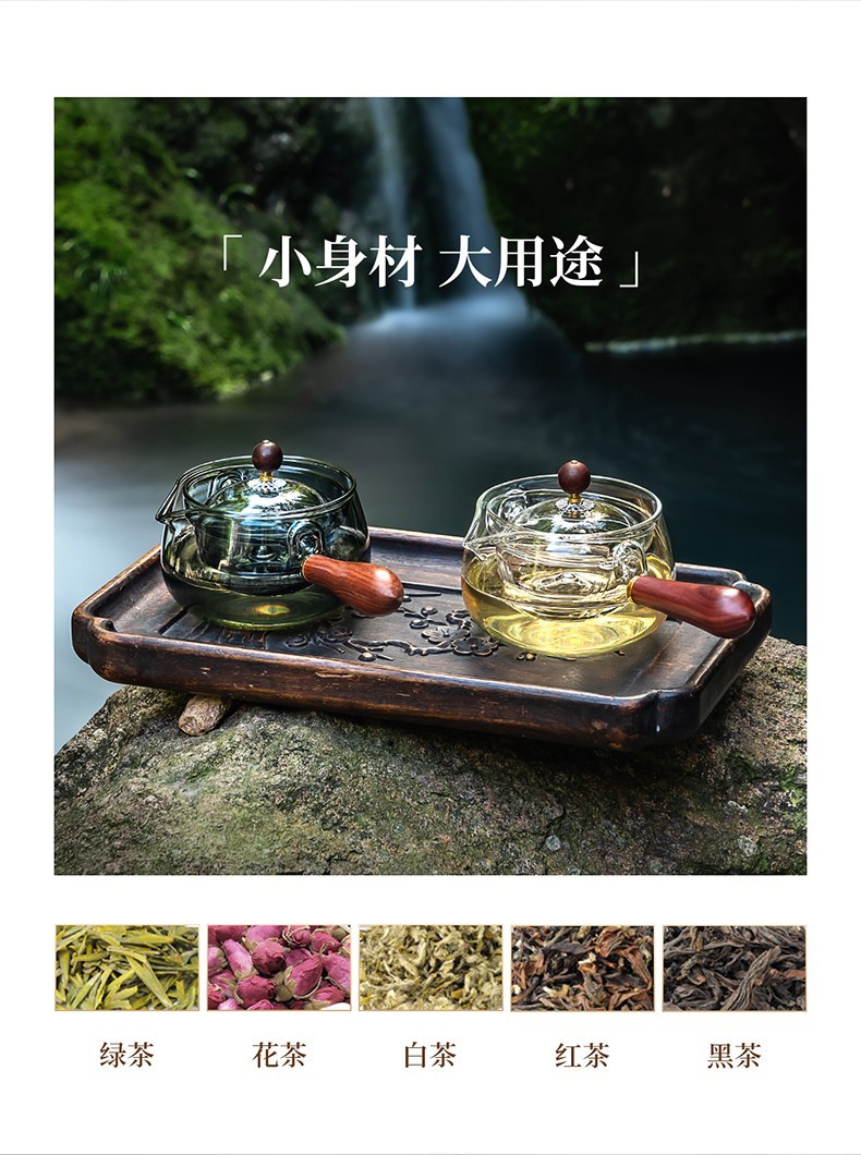 侧把逍遥壶家用耐高温玻璃茶壶单壶旋转小青柑泡茶茶具套装煮茶壶