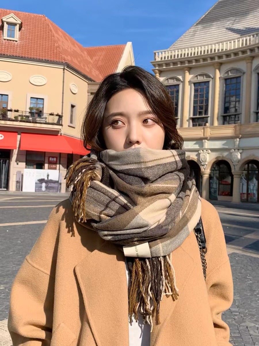格子围巾男冬季2024新款保暖针织毛线百搭情侣高级感围脖护颈男款