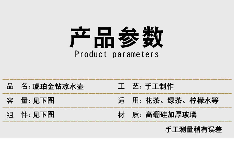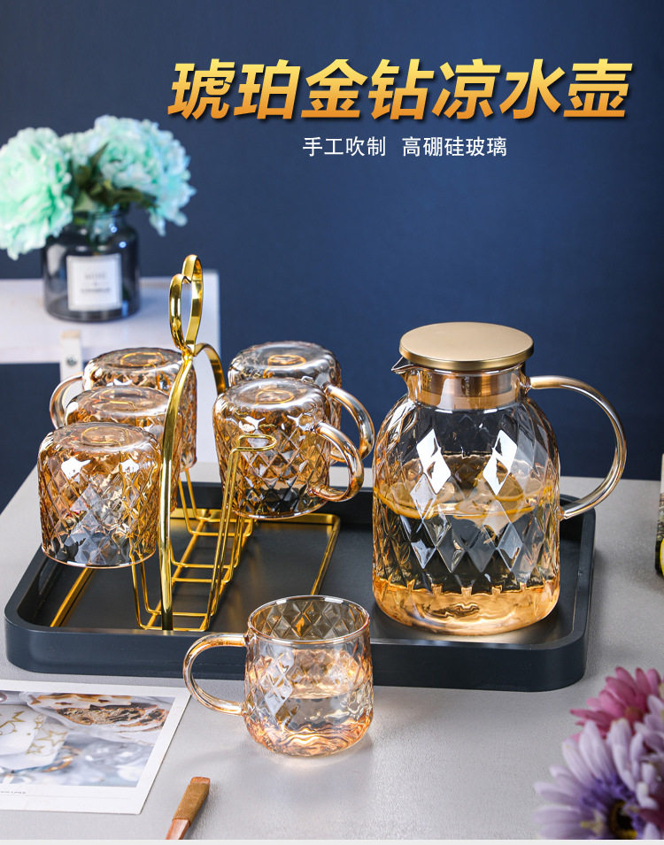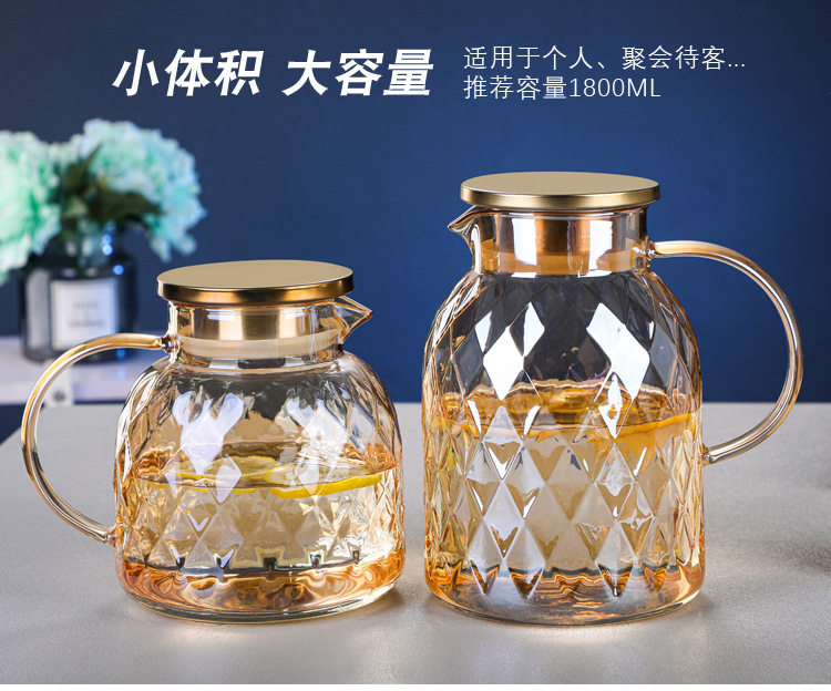琥珀金钻兰陵壶耐热玻璃凉水壶水杯果茶壶冷水壶大容量家用防爆