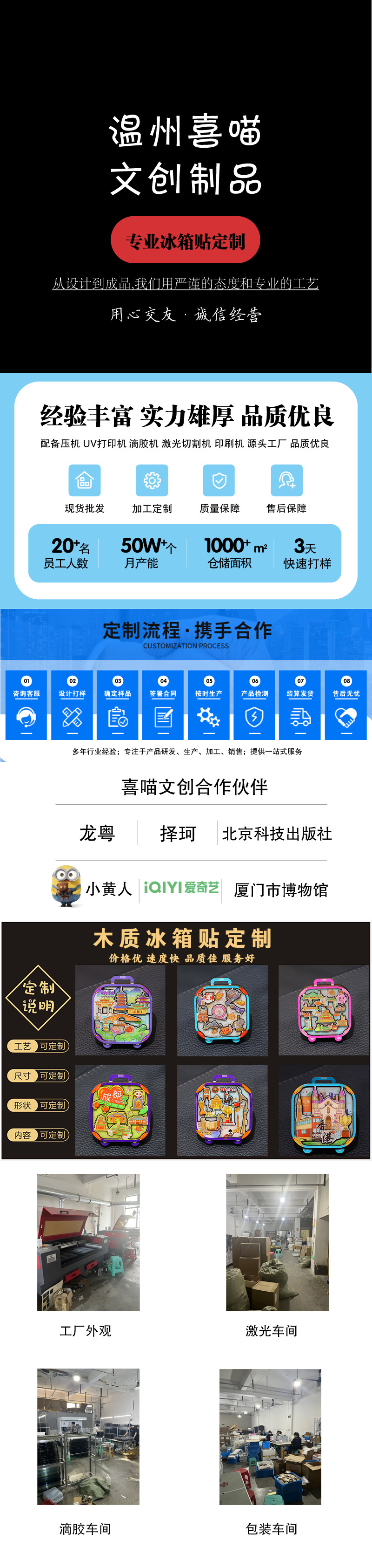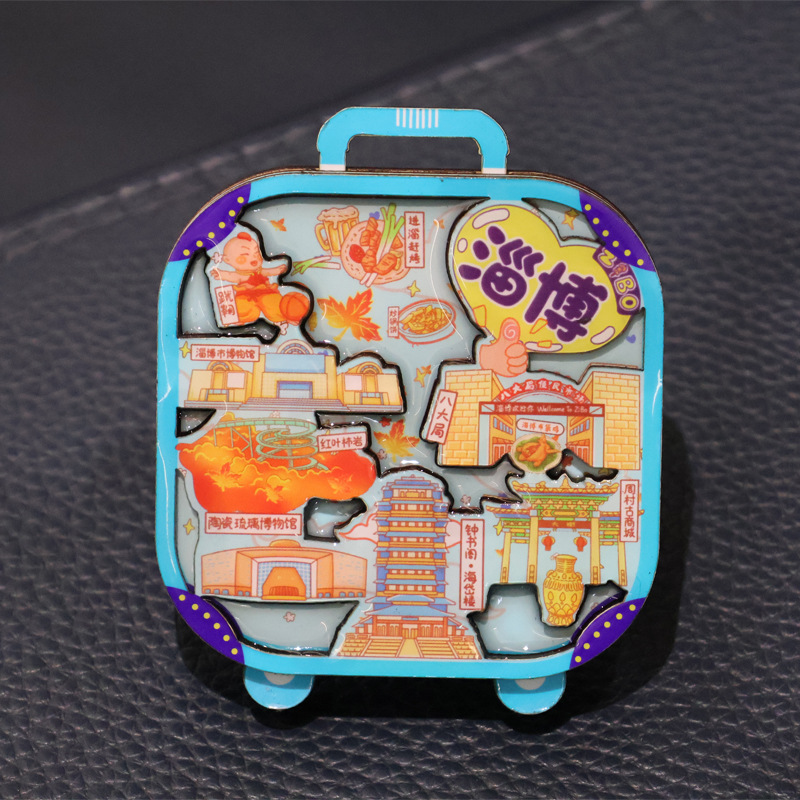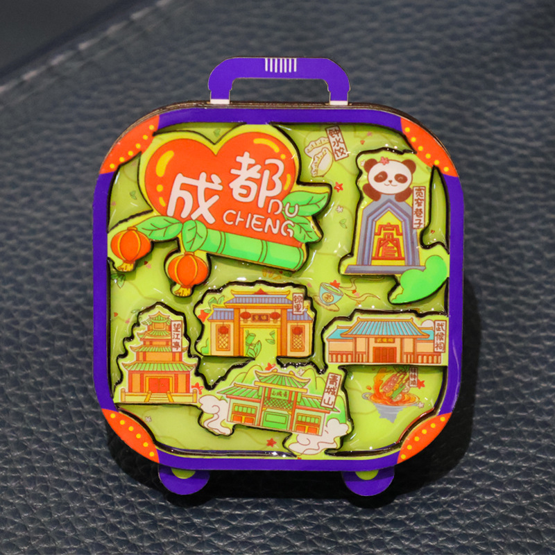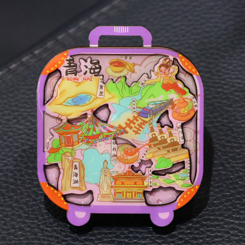 原创设计定制可拉动立体创意滴胶木质行李箱冰箱贴文创城市冰箱贴