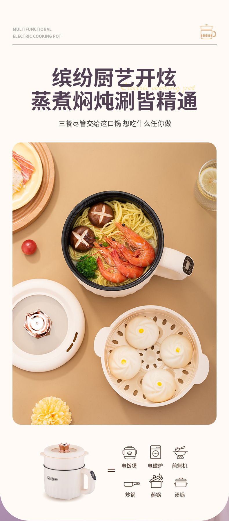 多功能电煮锅家用小锅宿舍小型煮泡面锅火锅学生小电锅智能一体锅