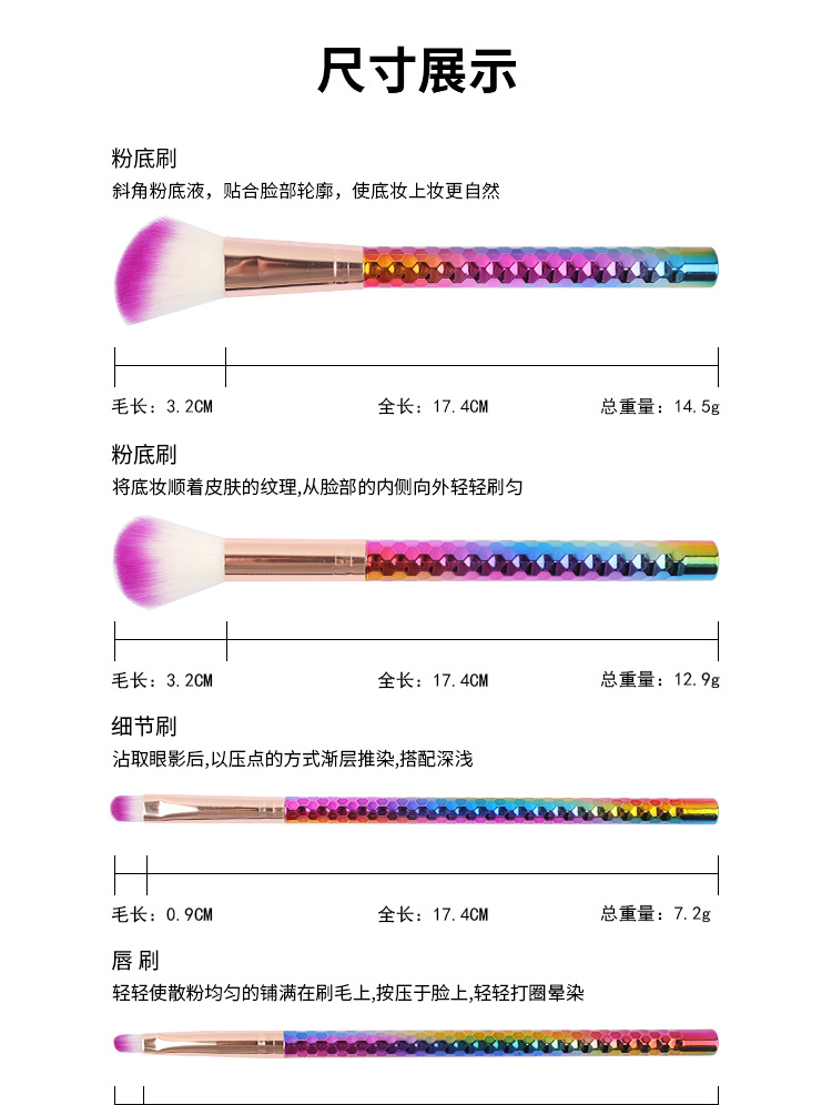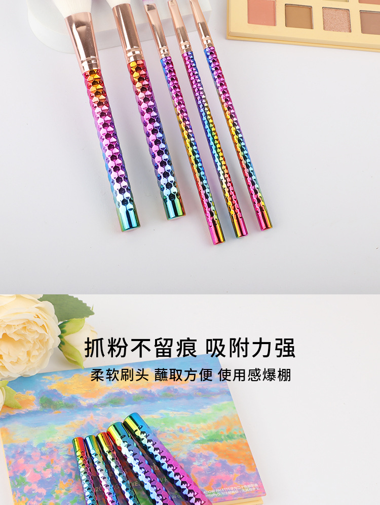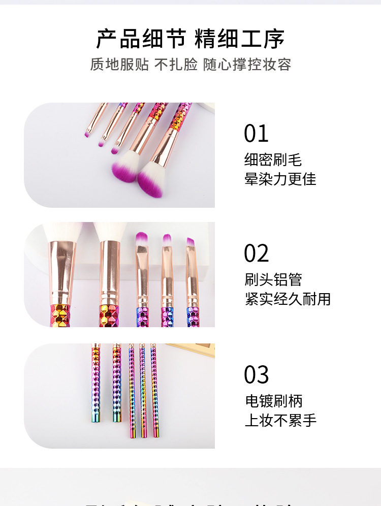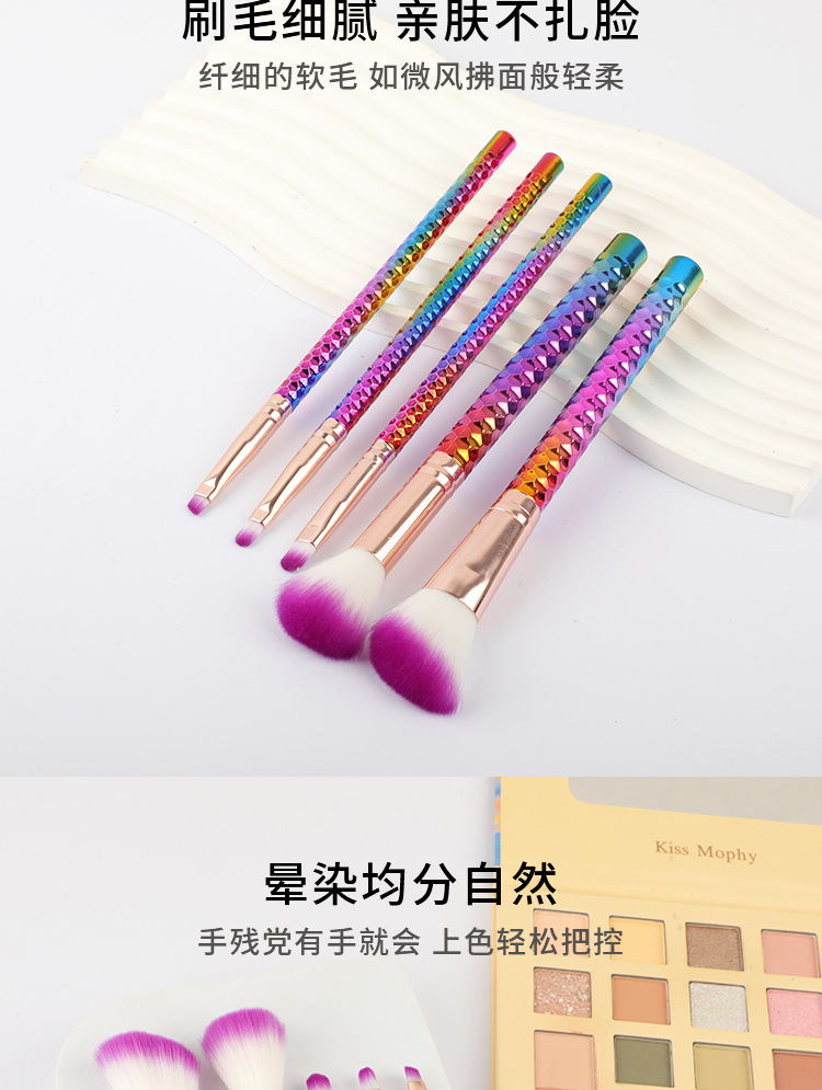 跨境5支外贸刷子套装彩色散粉晕染遮瑕腮红眼影刷美妆工具化妆刷