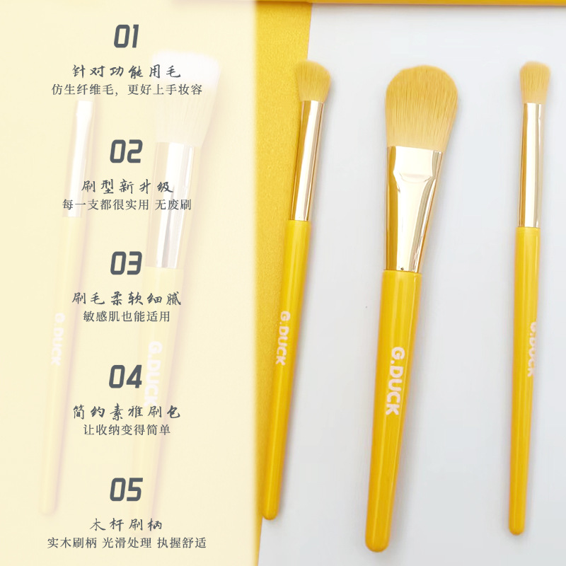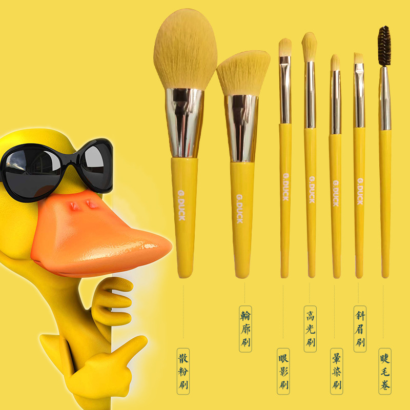 小黄鸭化妆刷套装7支装木柄沧州粉底散粉面膜刷眼影全套刷工具