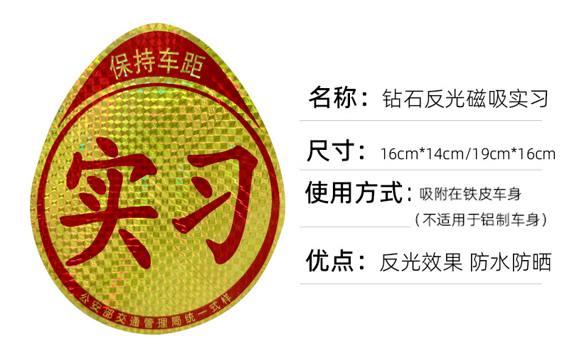 汽车新手上路实习标志家用汽车反光车身贴 个性磁性吸附实习车贴