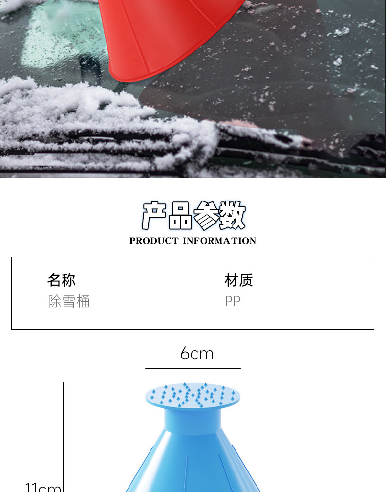 批发汽车用刮雪筒大喇叭口锥型雪桶车用挡风玻璃两用破冰除雪器