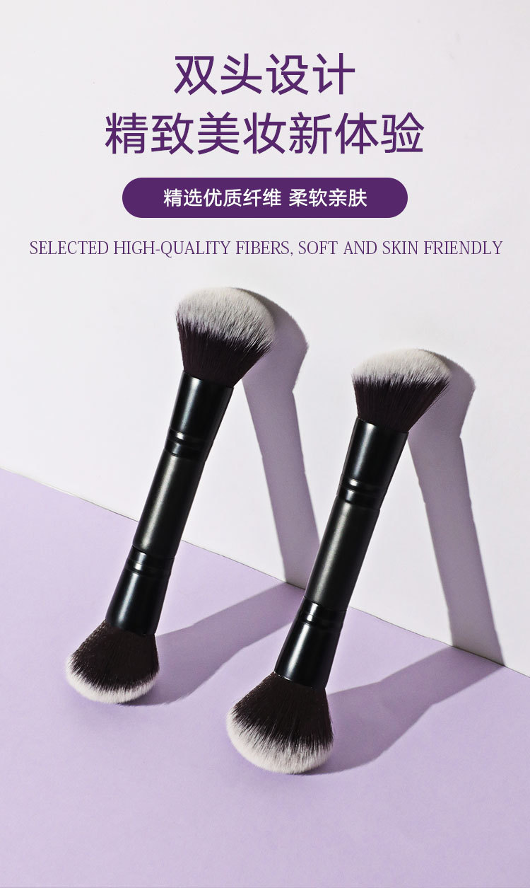 跨境爆款双头粉底刷遮瑕刷单支装斜角轮廓粉底修容粉刷便携化妆刷