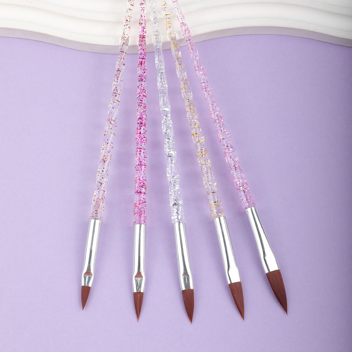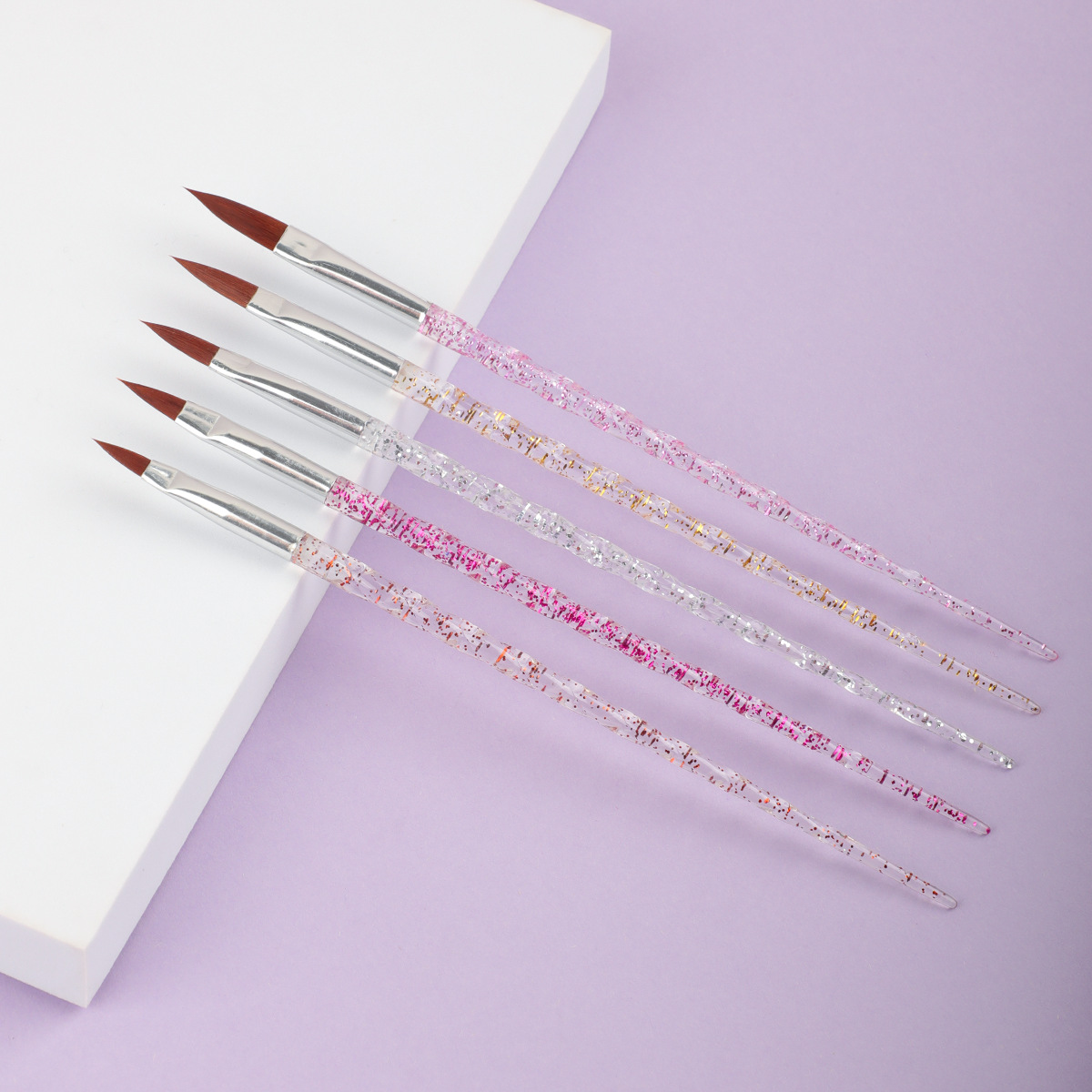 美甲水晶雕花笔5支装跨境专供透明亚克力水晶笔工厂直销美甲工具