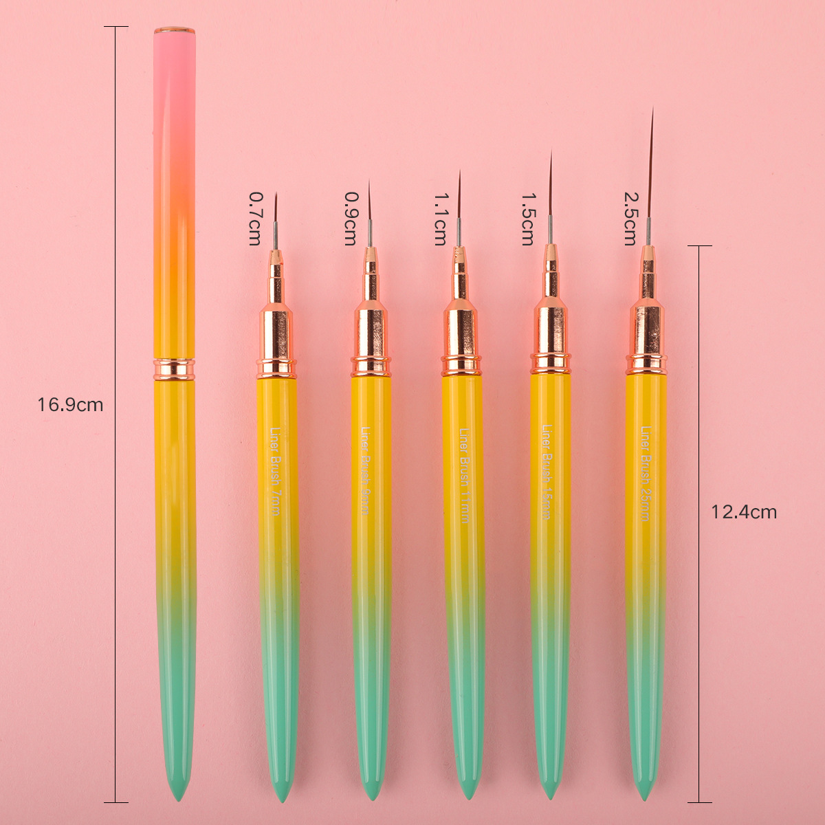 新品跨境5支拉线笔套装渐变色绘画彩绘雕花DIY描甲笔工具美甲笔