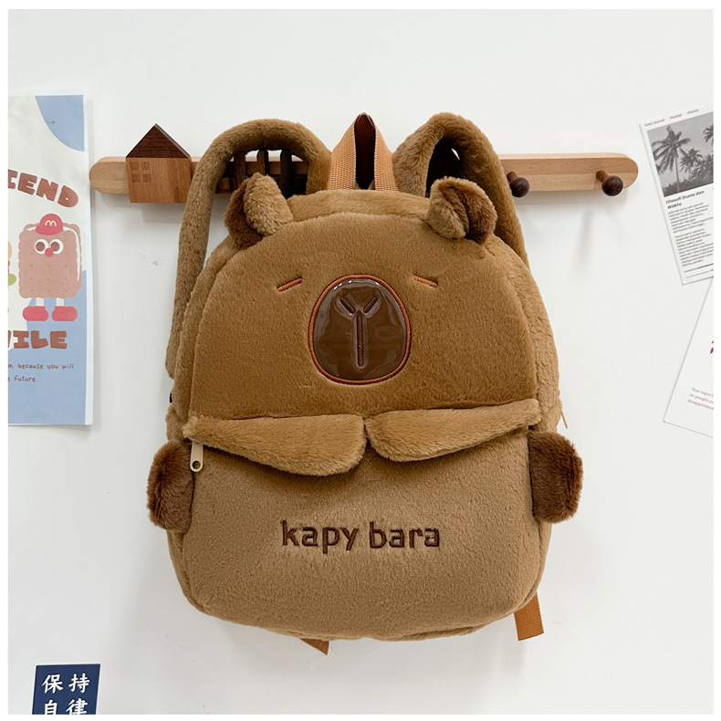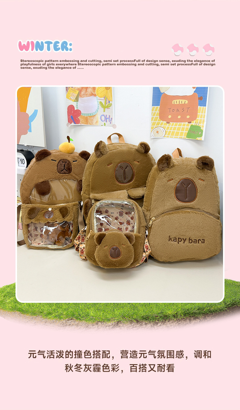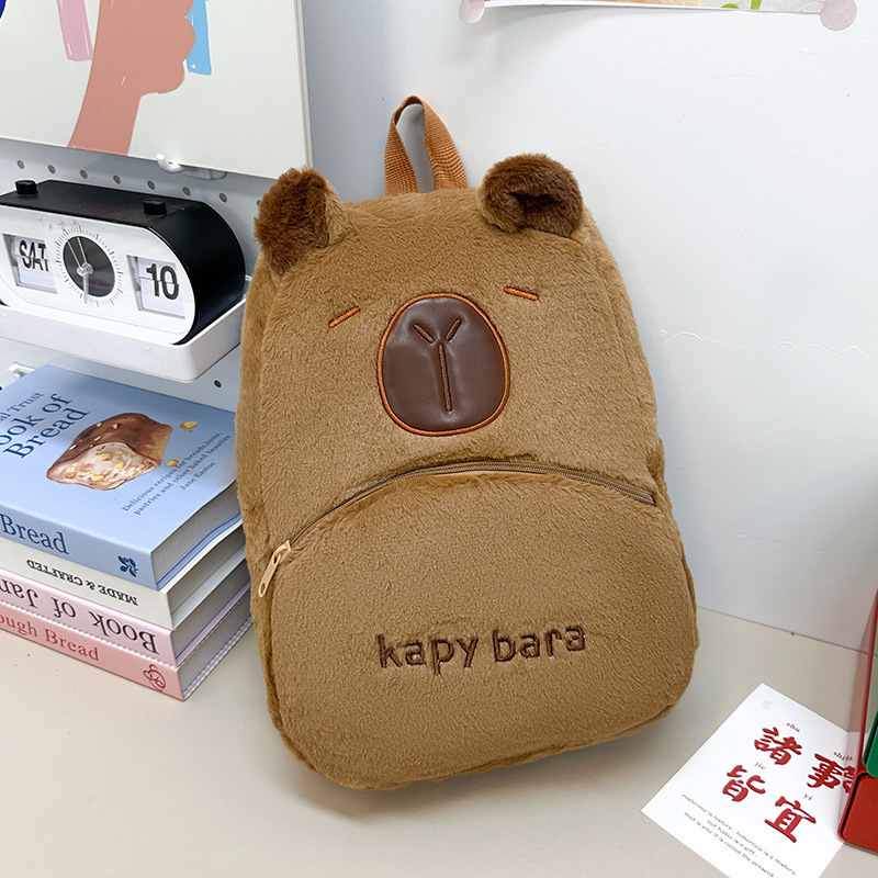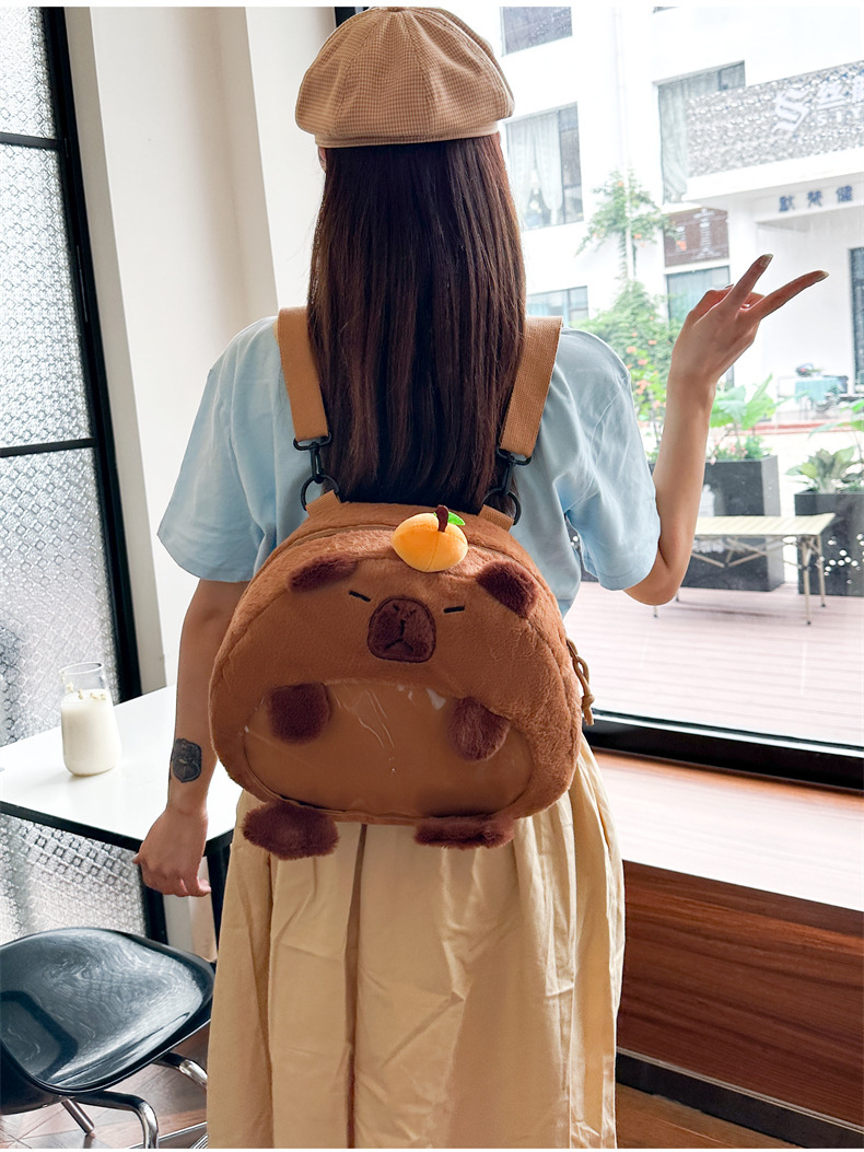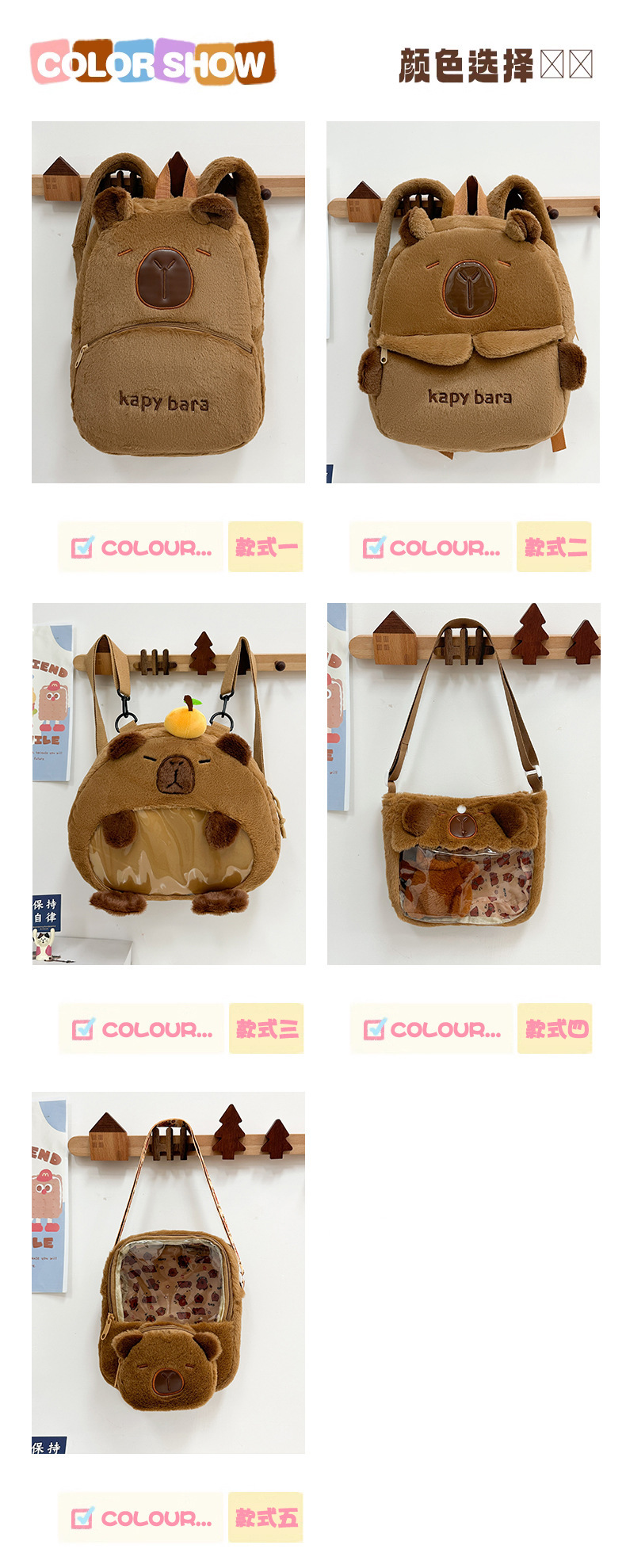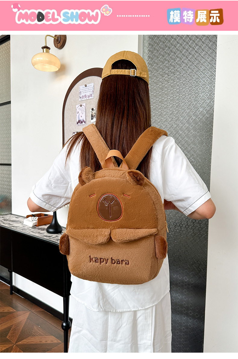 新款可爱卡通毛绒玩具卡皮巴拉双肩包超萌手提包公仔休闲女斜挎包