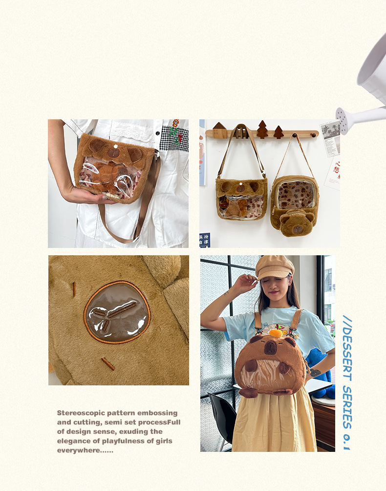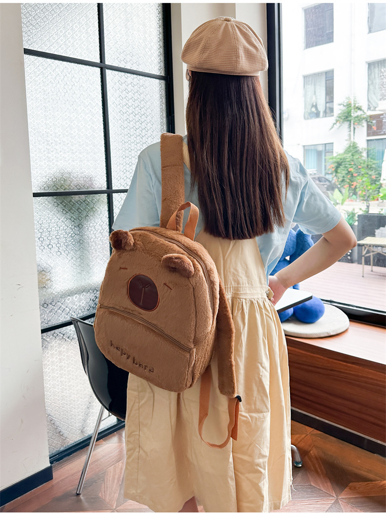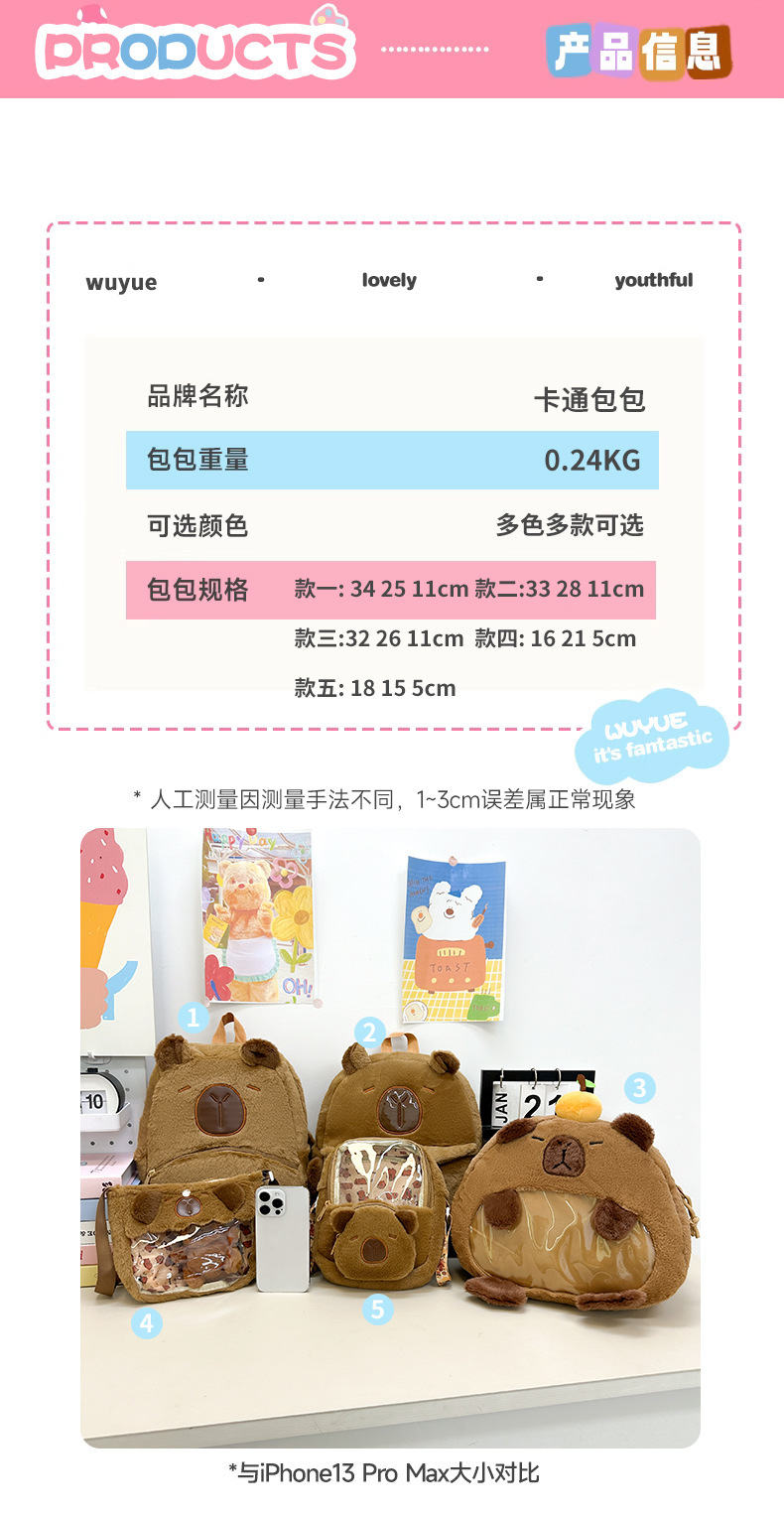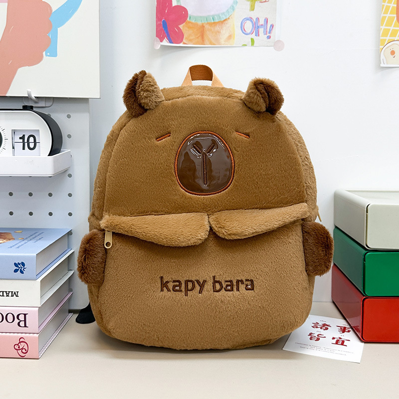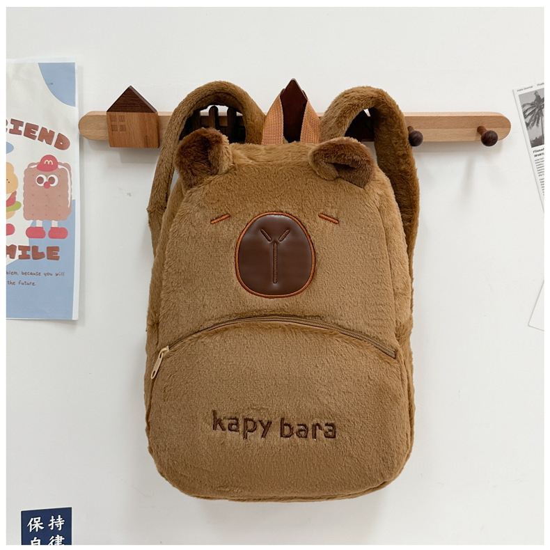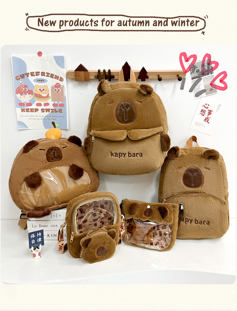 新款可爱卡通毛绒玩具卡皮巴拉双肩包超萌手提包公仔休闲女斜挎包